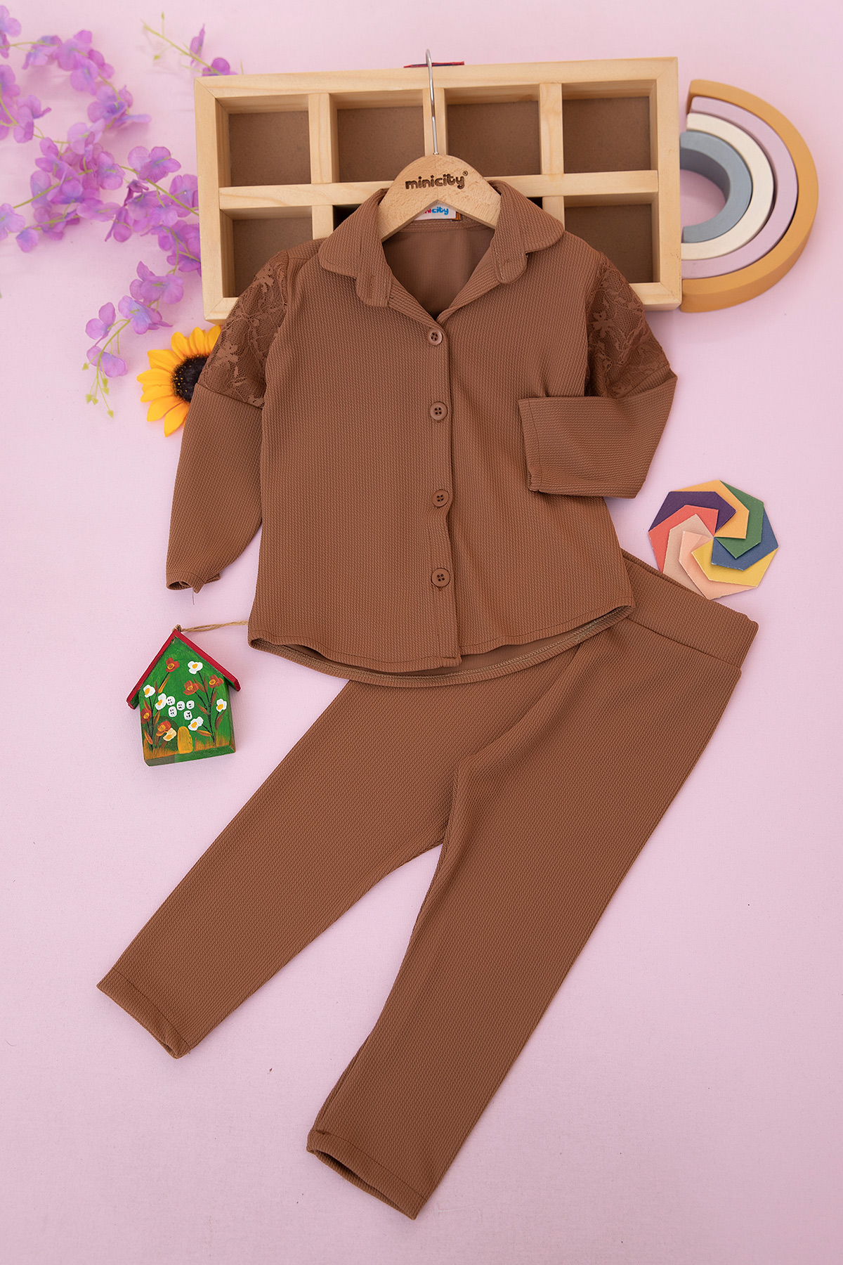 Kız Çocuk Kolu Dantelli Gömlekli Takım - 262 (3-6 Yaş)