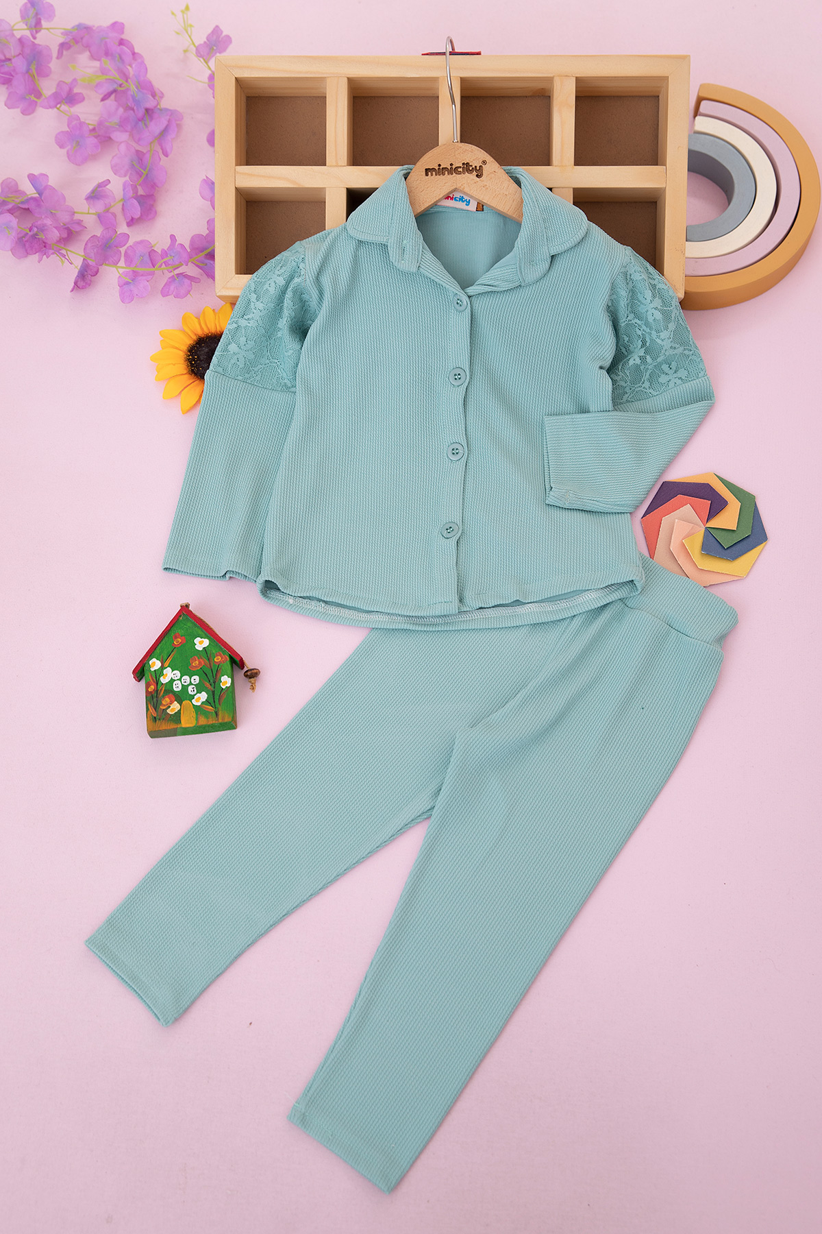 Kız Çocuk Kolu Dantelli Gömlekli Takım - 262 (3-6 Yaş)