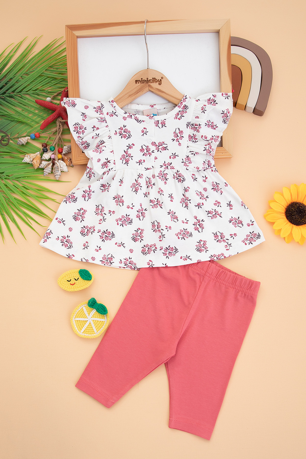 Kız Çocuk Kolu Fırfırlı Şortlu Takım - 24348 (9-24 Ay)