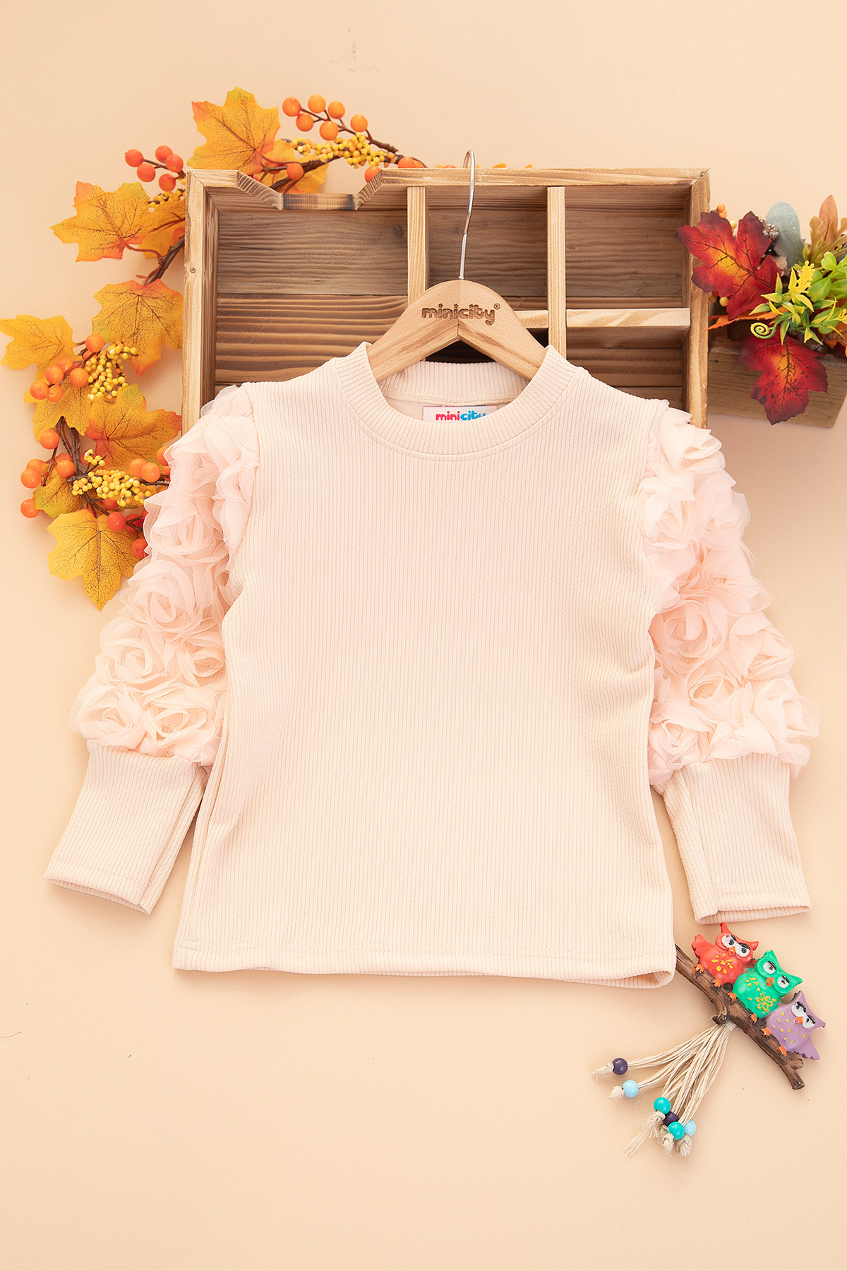 Kız Çocuk Kolu Güllü Fitilli Body - 122 (4-12 Yaş)
