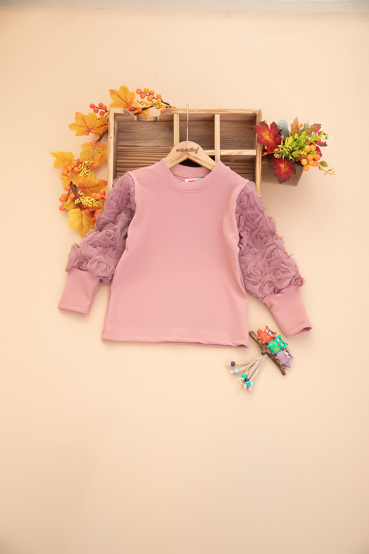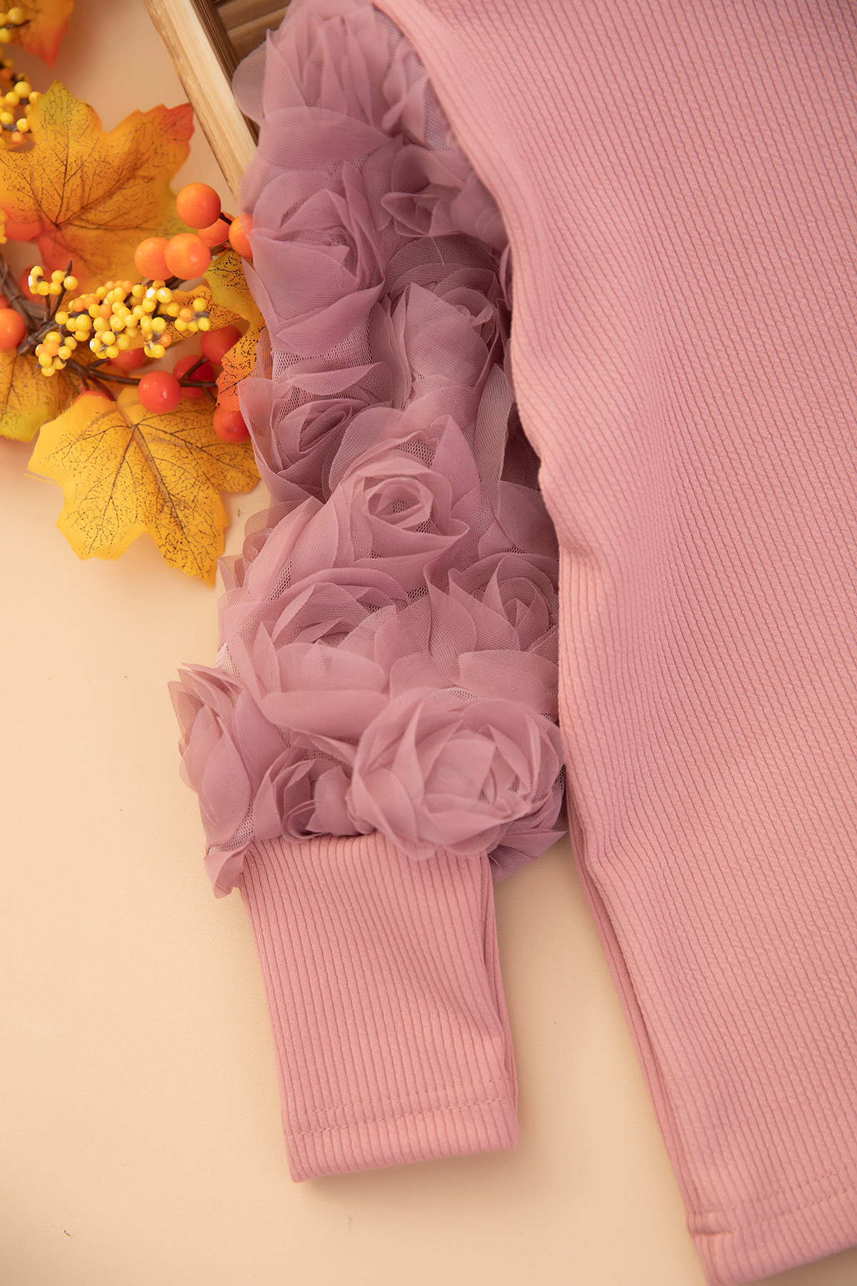 Kız Çocuk Kolu Güllü Fitilli Body - 122 (4-12 Yaş)