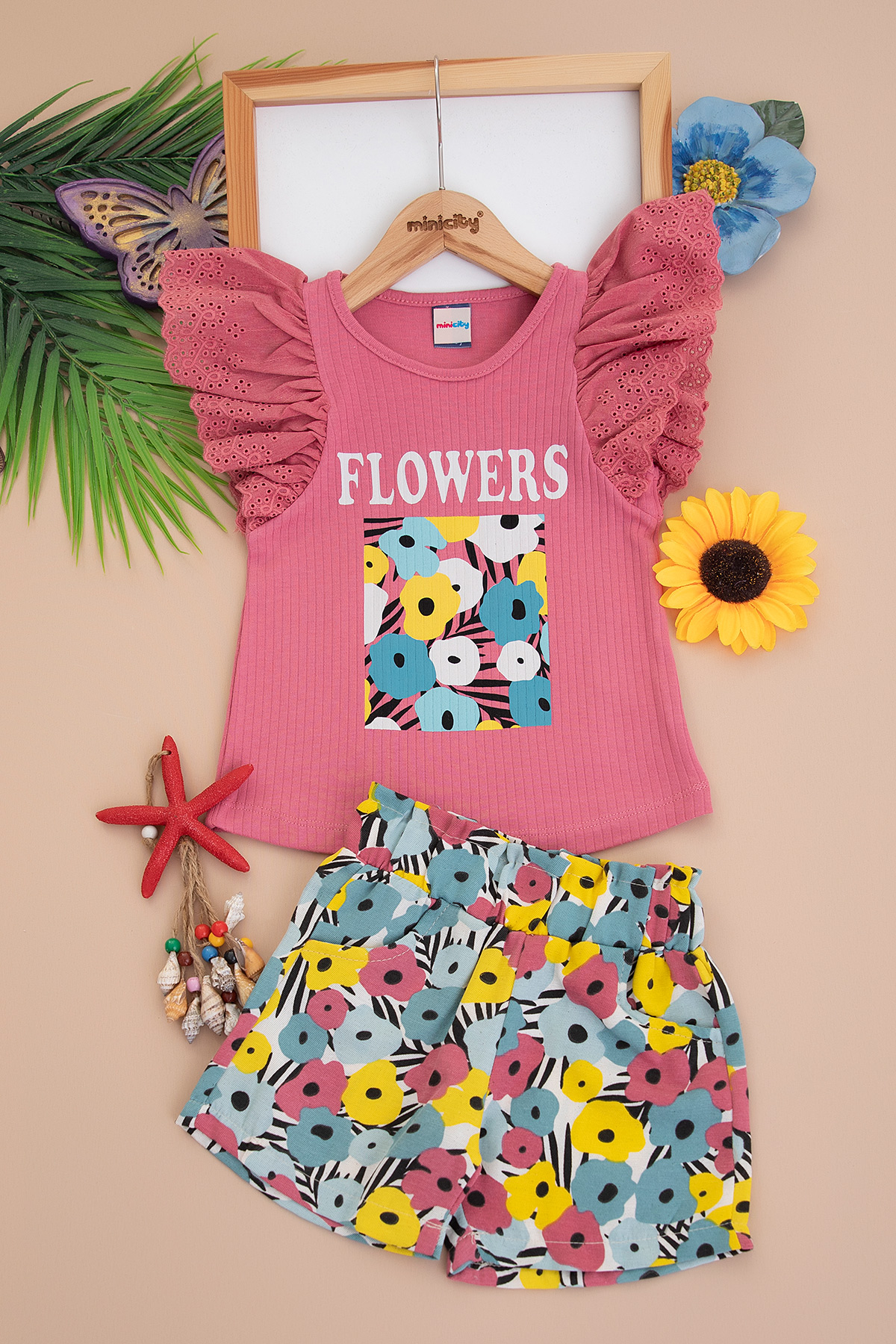 Kız Çocuk Kolu Güpürlü Şortlu Takım - 24382 (11-14 Yaş)
