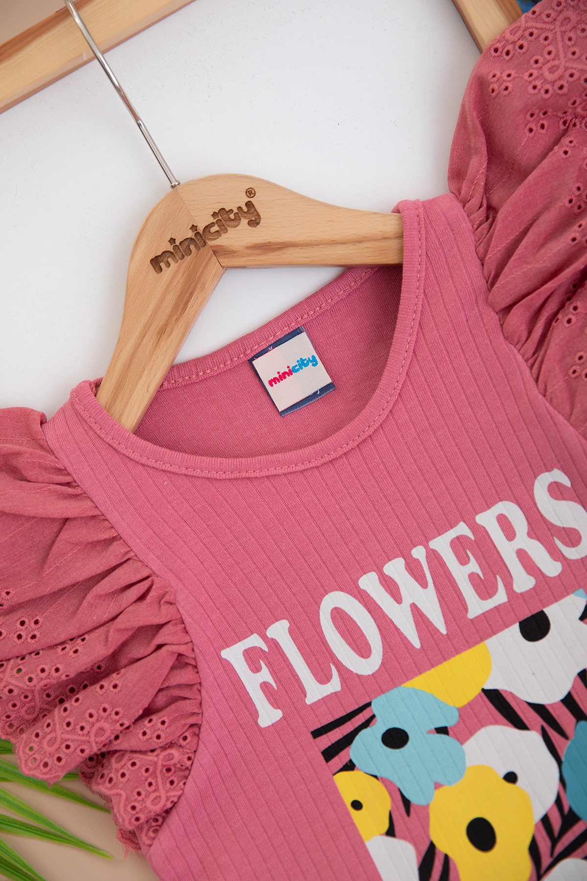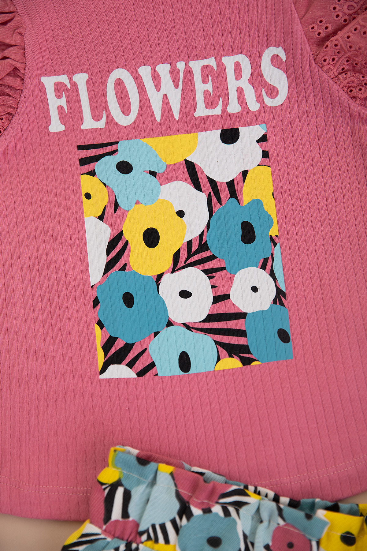Kız Çocuk Kolu Güpürlü Şortlu Takım - 24383 (7-10 Yaş)