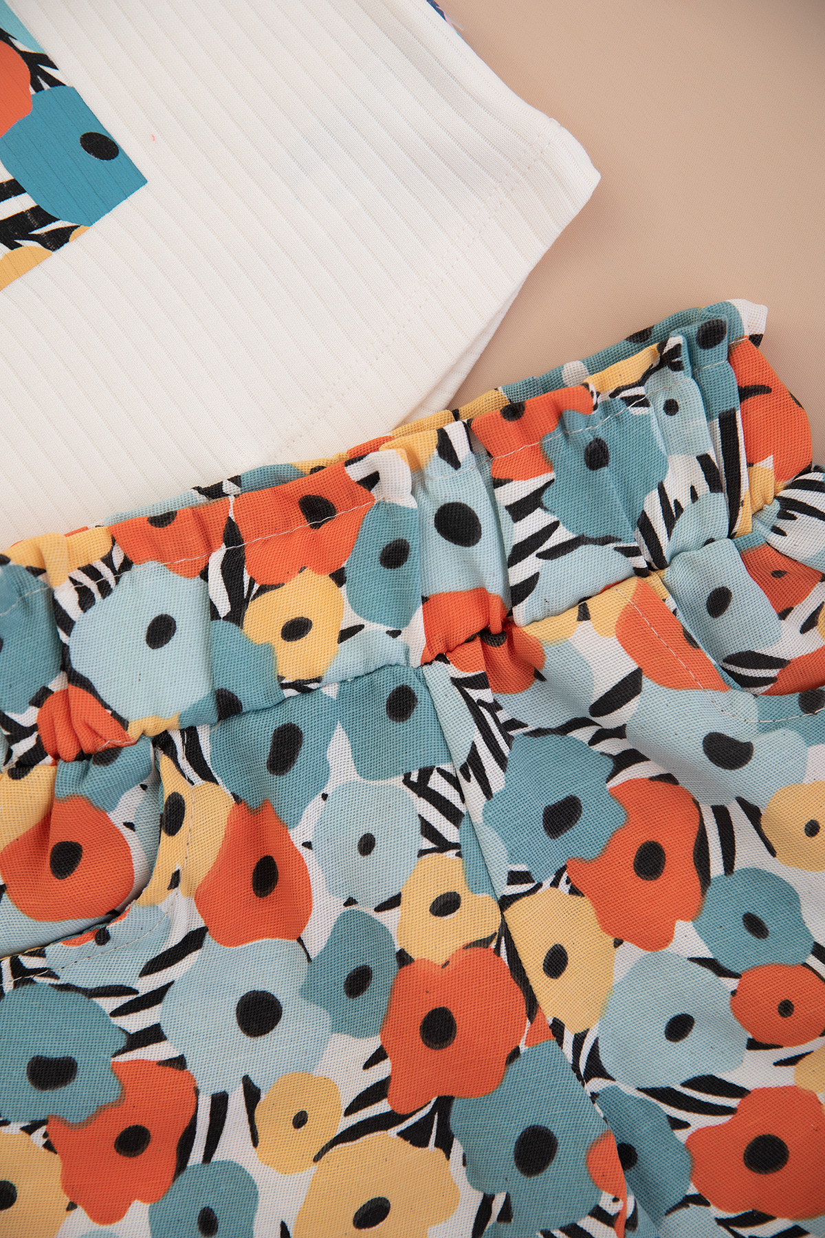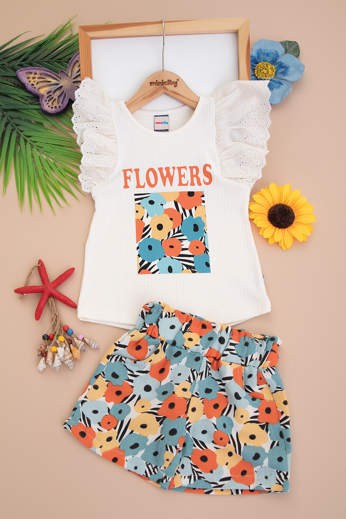 Kız Çocuk Kolu Güpürlü Şortlu Takım - 24384 (3-6 Yaş)