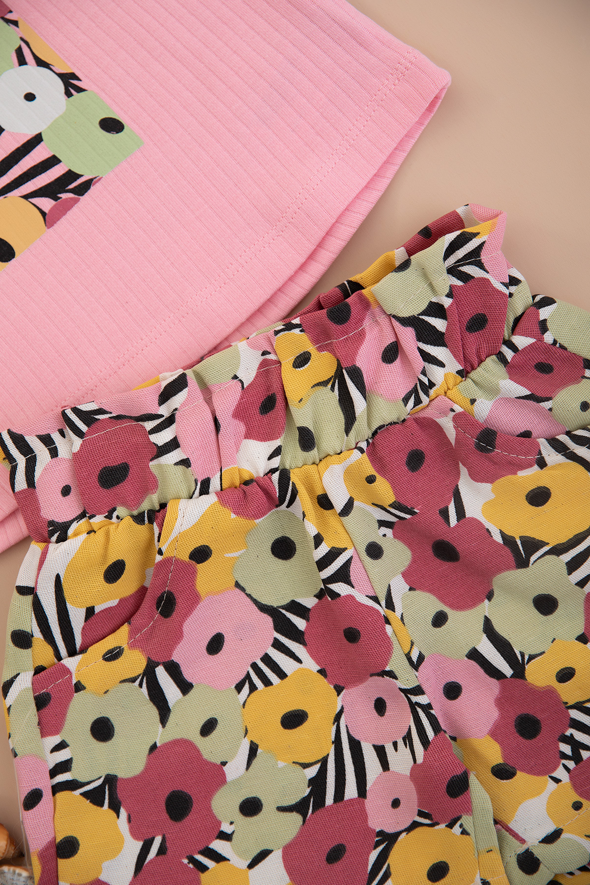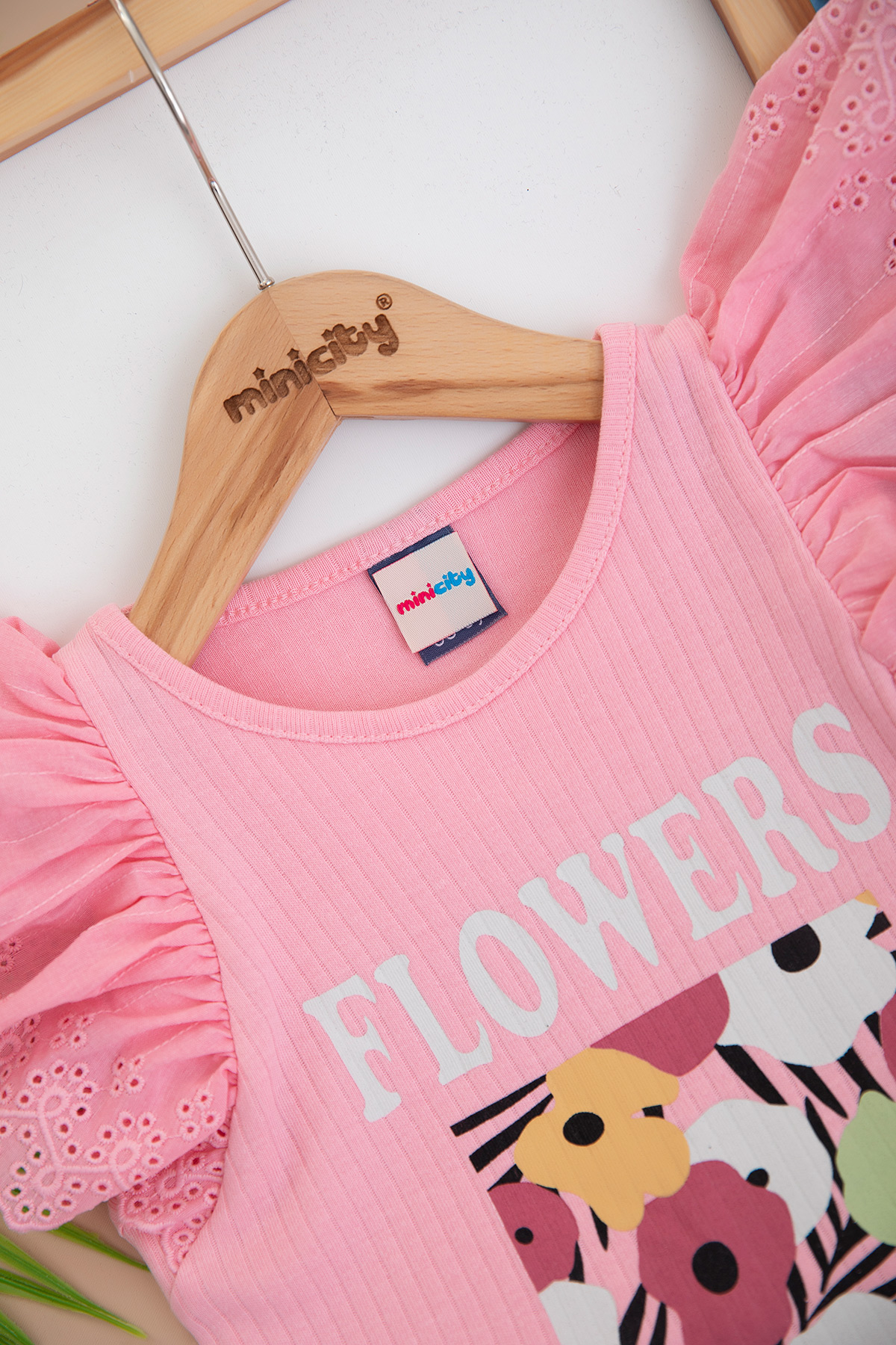 Kız Çocuk Kolu Güpürlü Şortlu Takım - 24384 (3-6 Yaş)