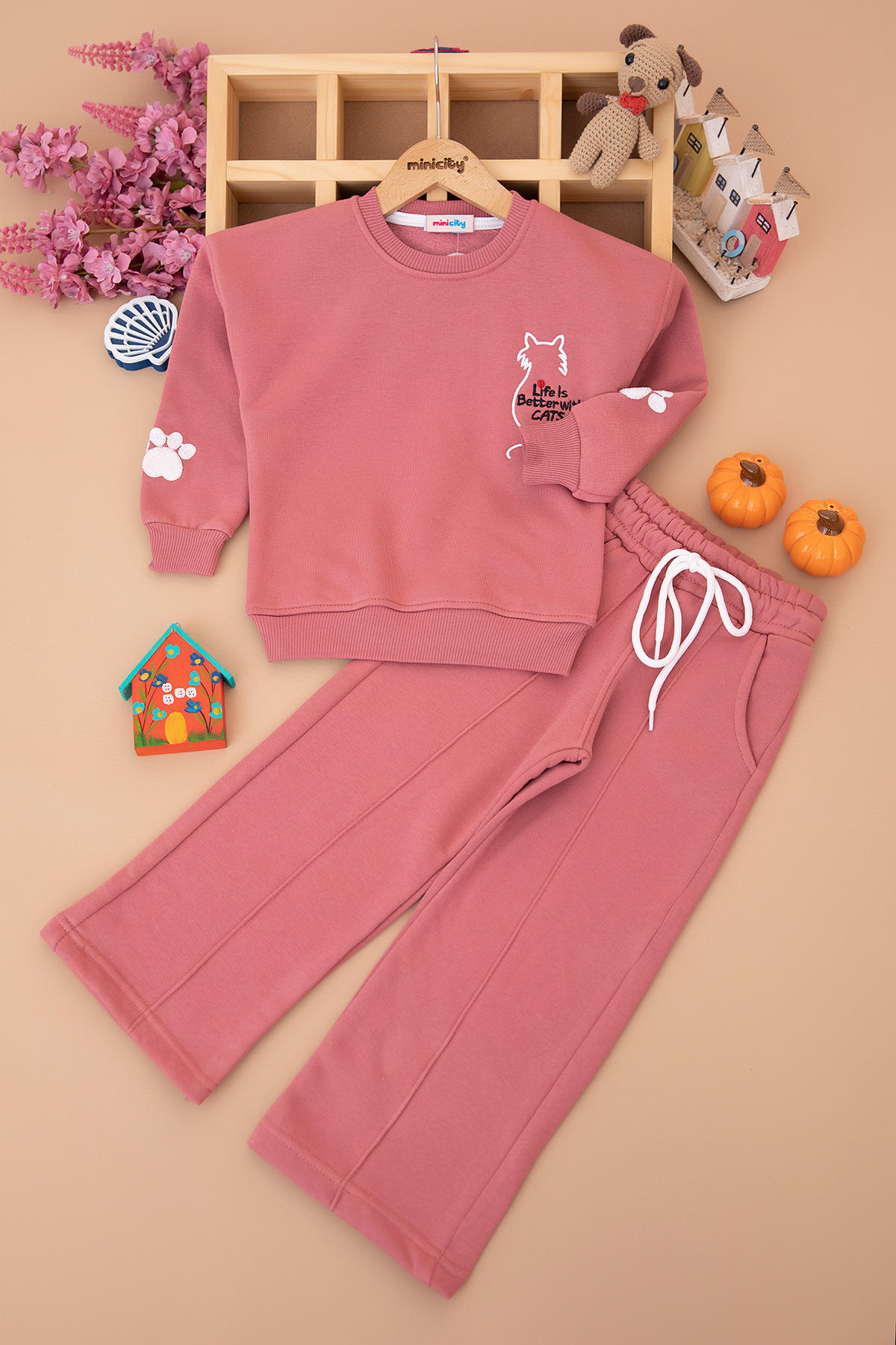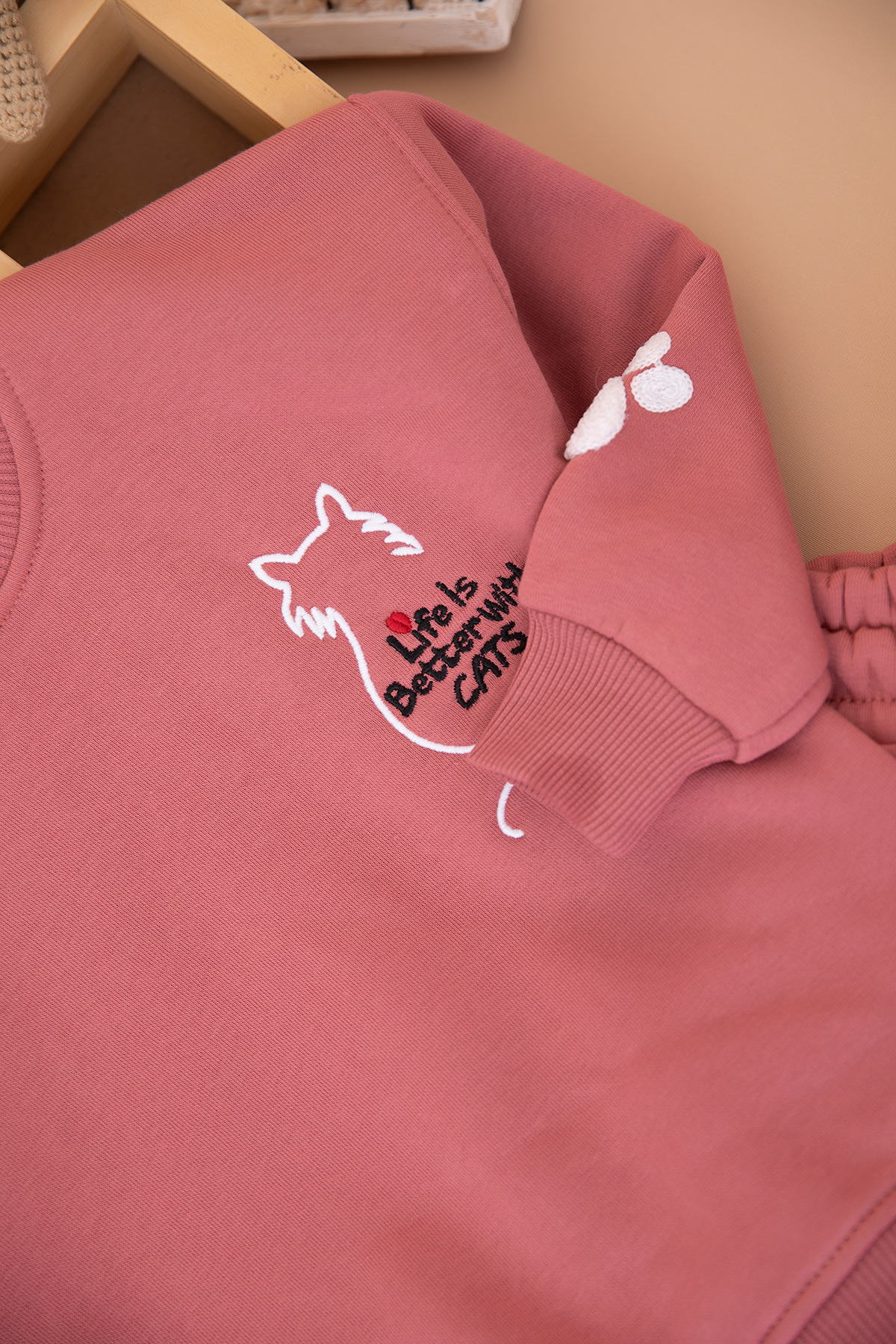 Kız Çocuk Kolu Pati Nakışlı Üçip Takım - 5042 (3-10 Yaş)