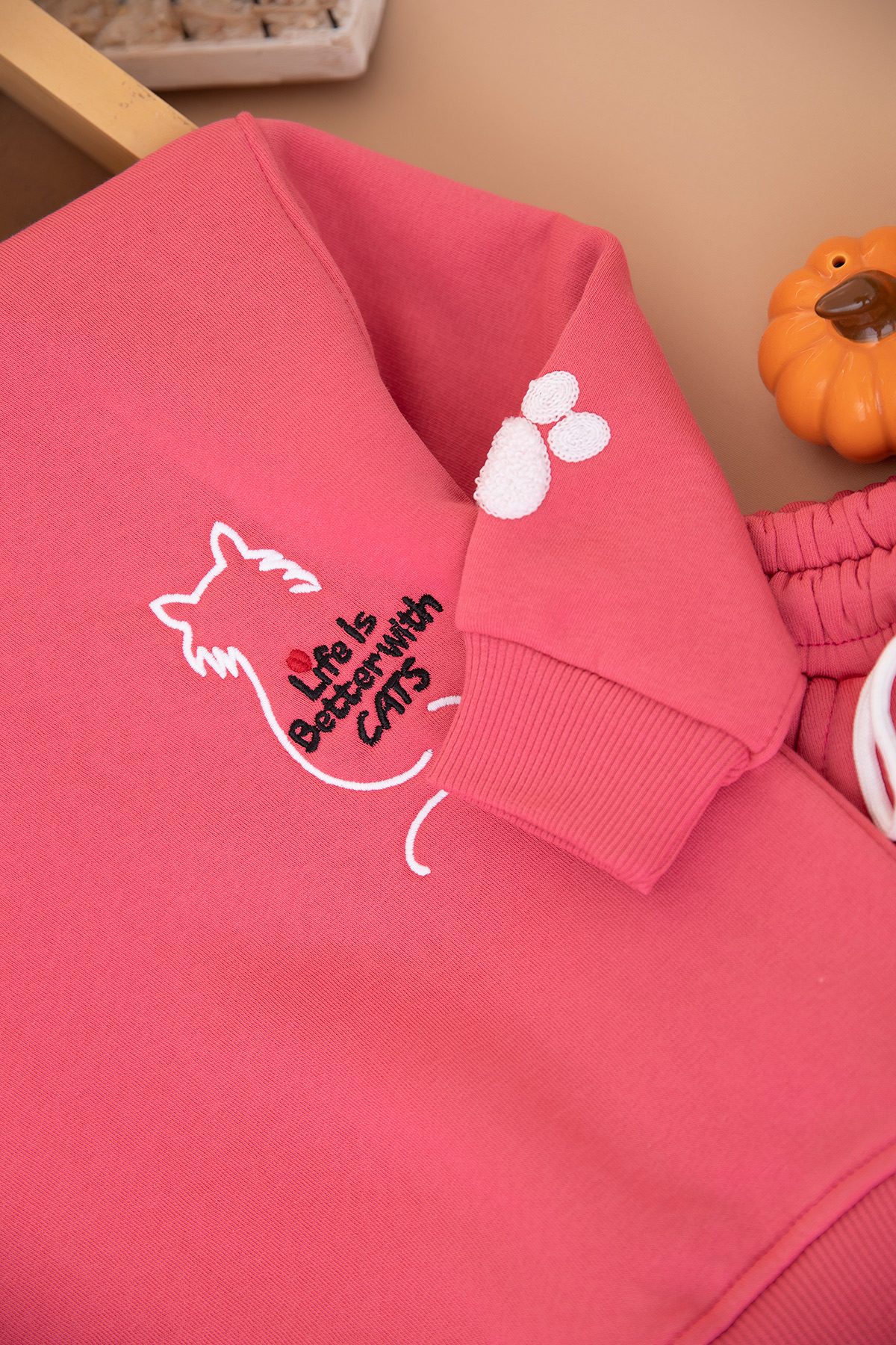 Kız Çocuk Kolu Pati Nakışlı Üçip Takım - 5042 (3-10 Yaş)