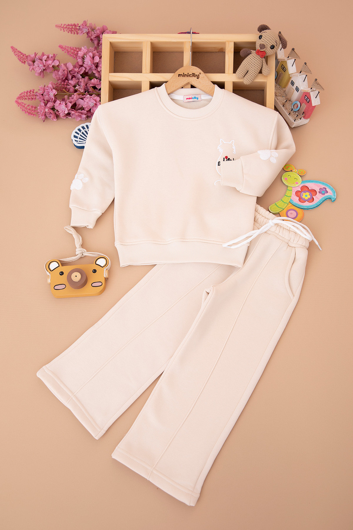 Kız Çocuk Kolu Pati Nakışlı Üçip Takım - 5042 (3-10 Yaş)