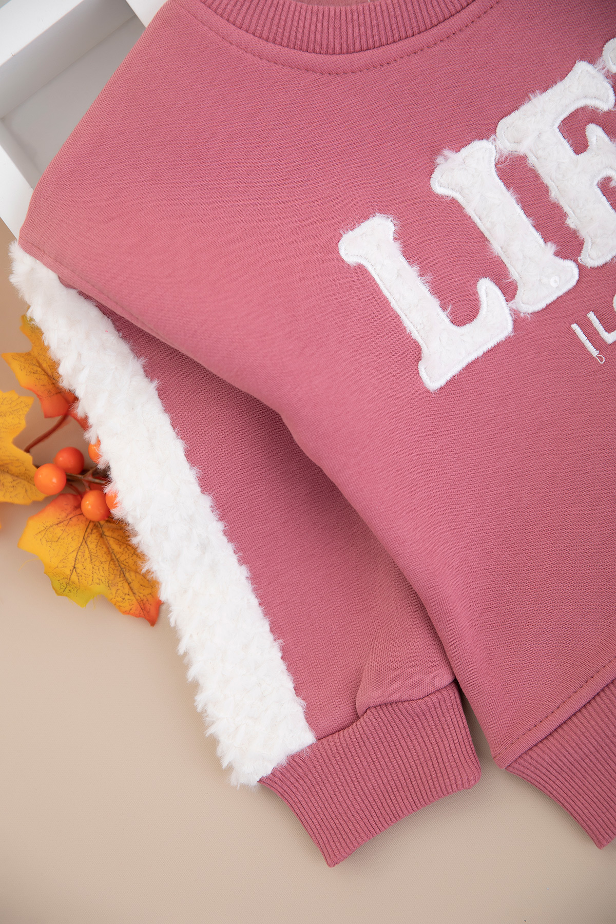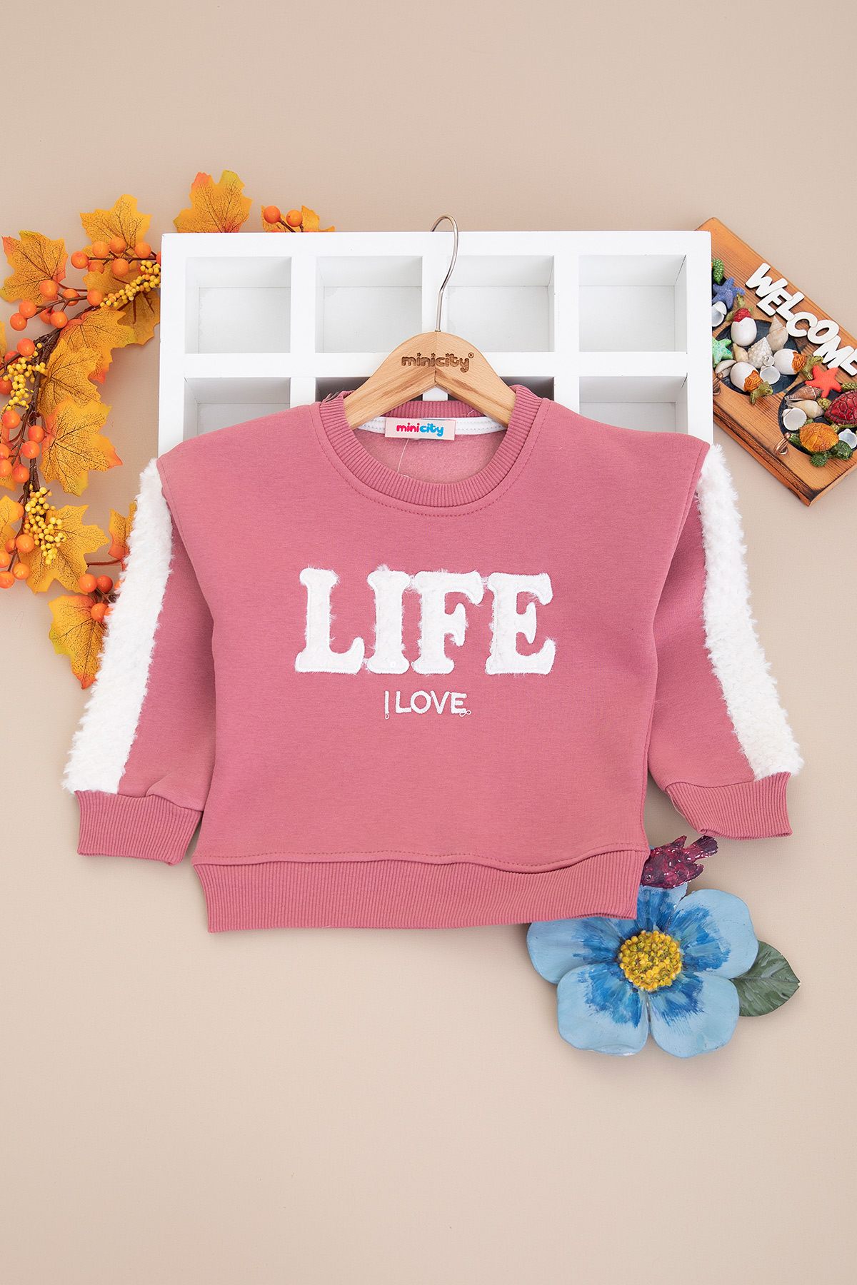 Kız Çocuk Kolu Peluş Detaylı Üçip Sweat - 4063 (3-7 Yaş)