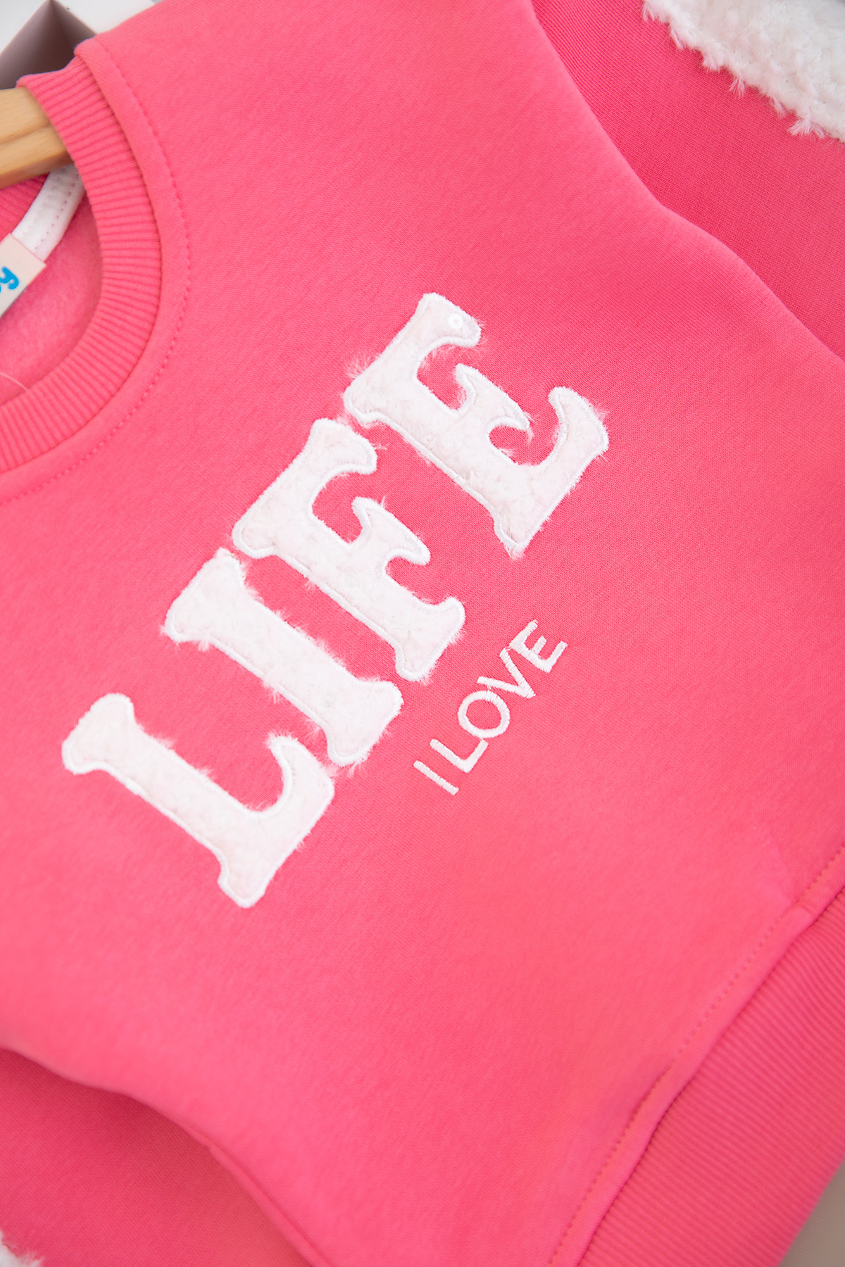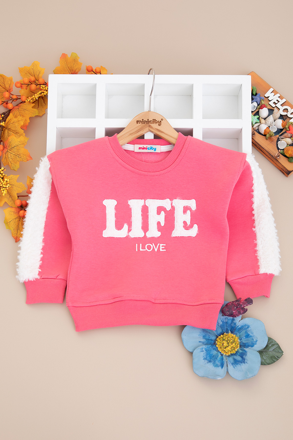 Kız Çocuk Kolu Peluş Detaylı Üçip Sweat - 4063 (3-7 Yaş)