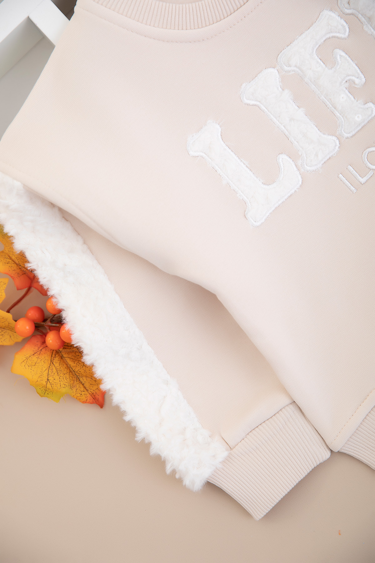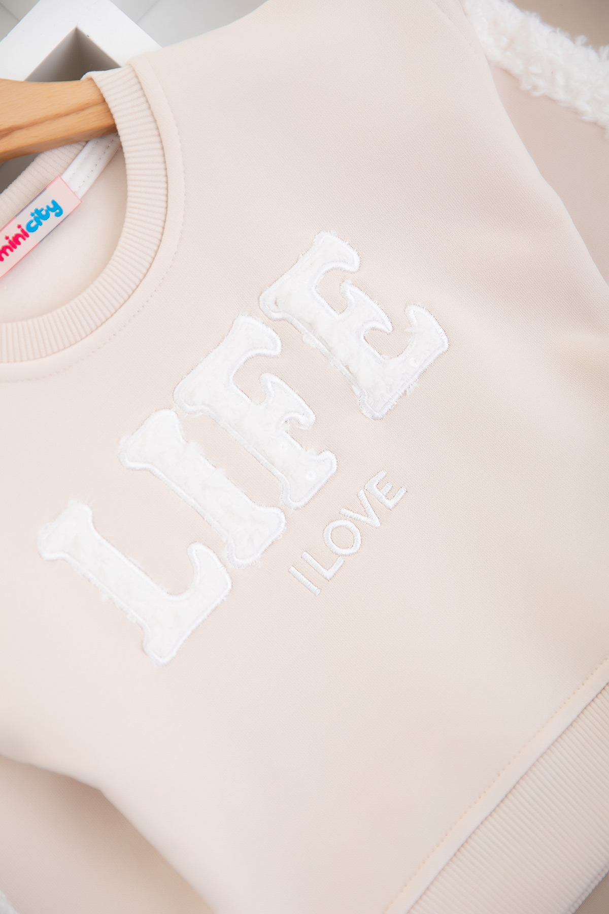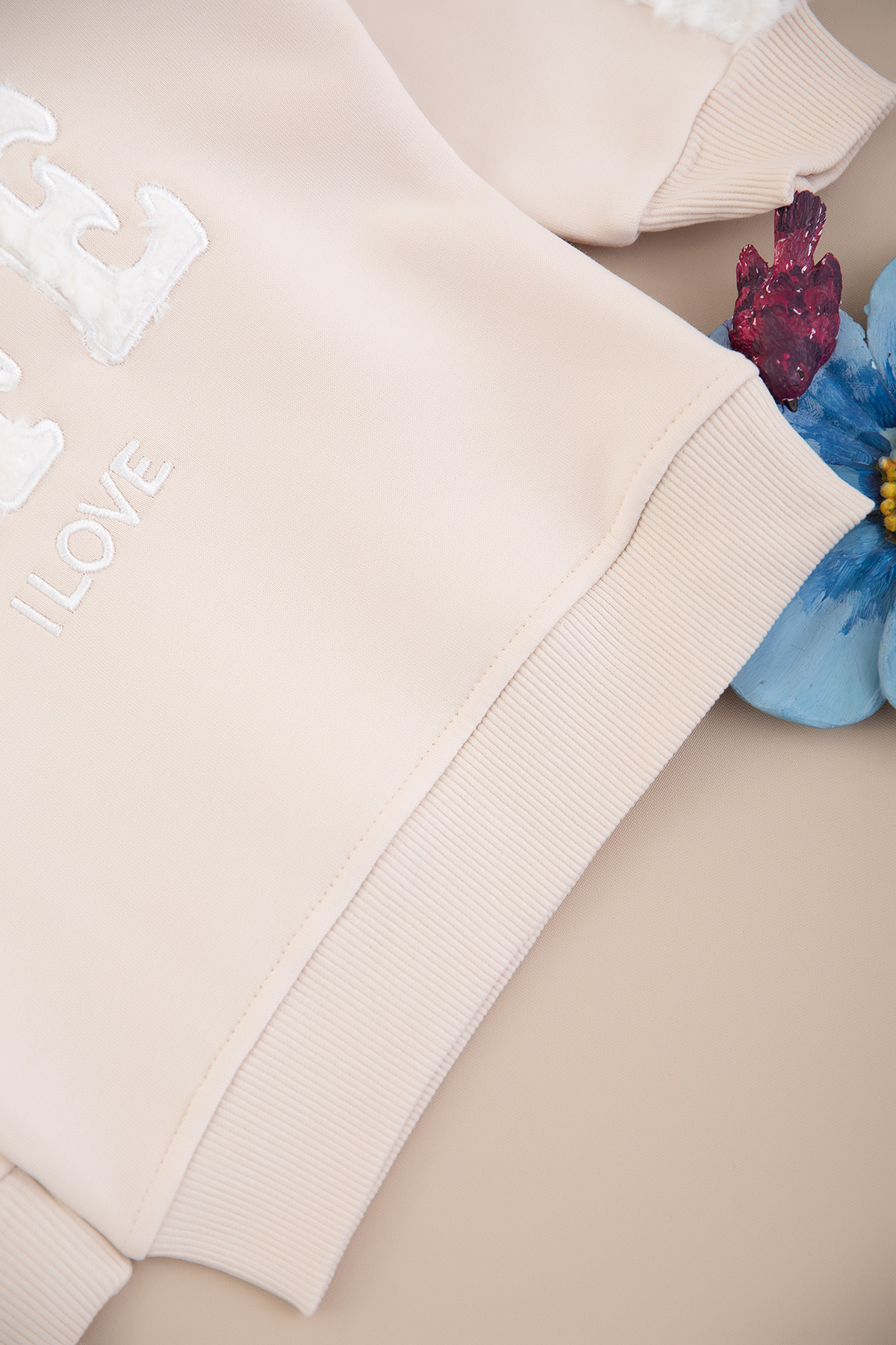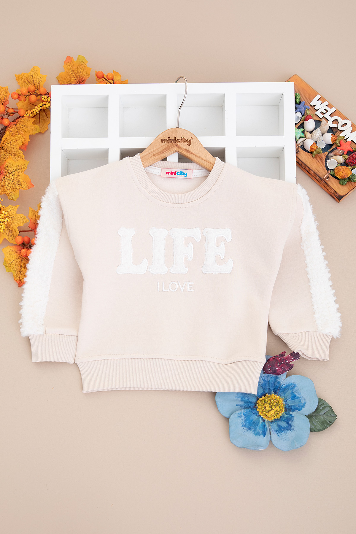 Kız Çocuk Kolu Peluş Detaylı Üçip Sweat - 4064 (8-12 Yaş)