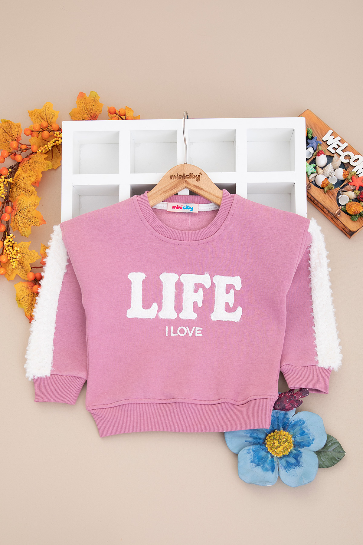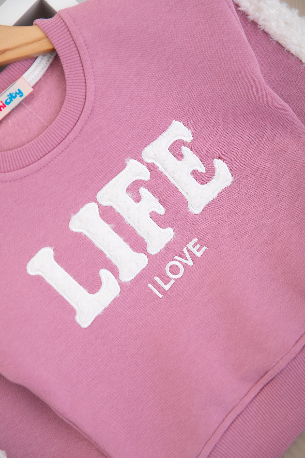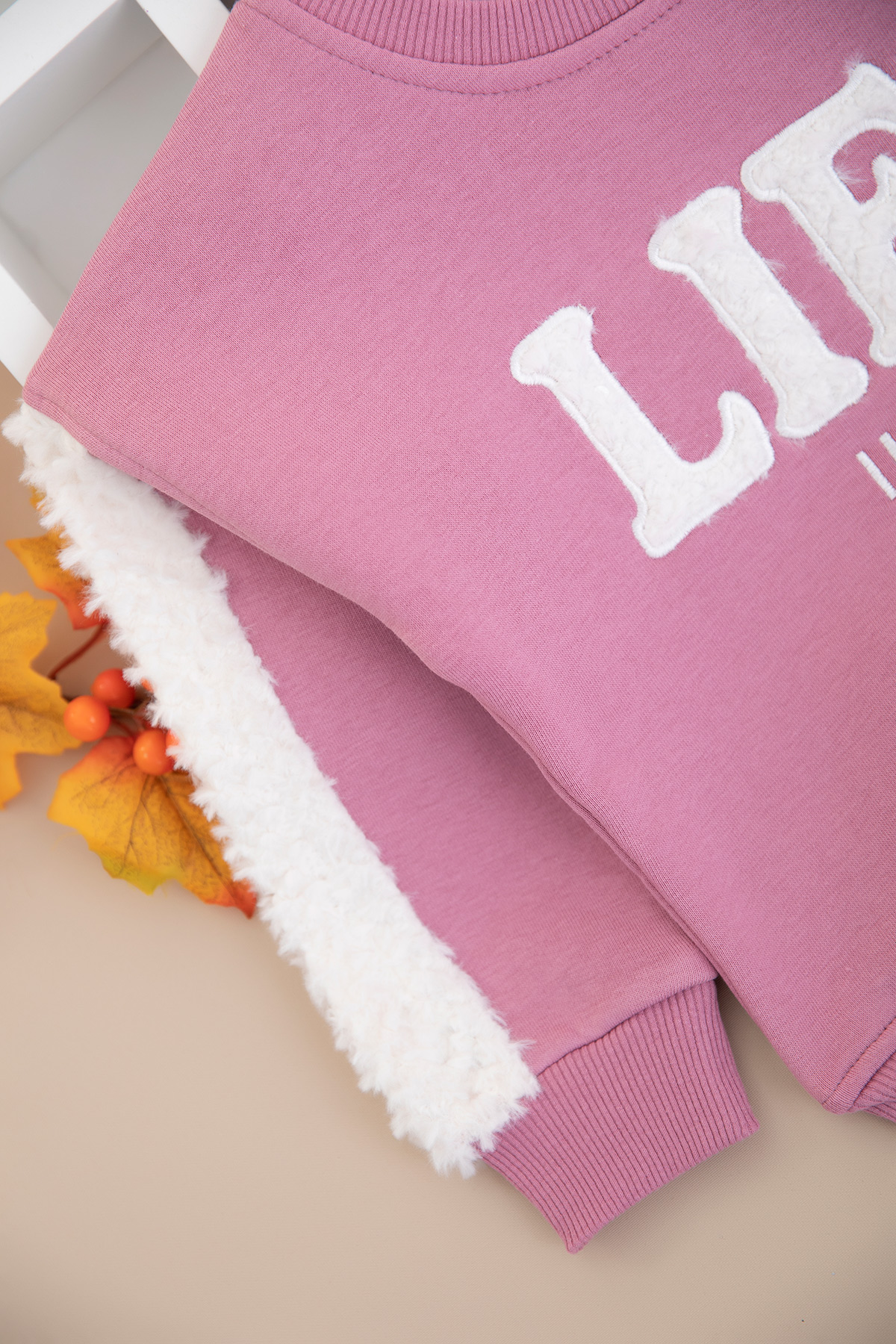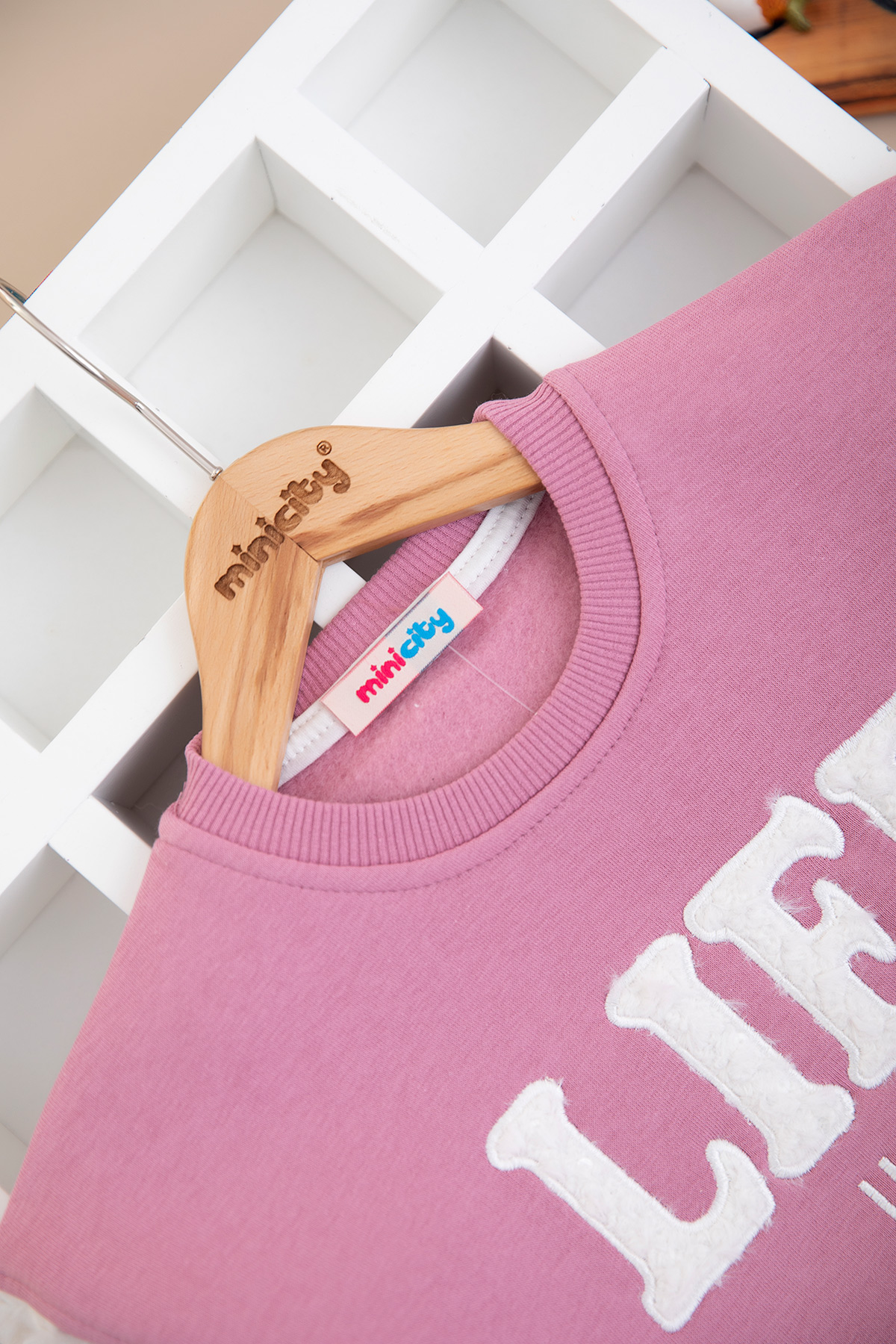 Kız Çocuk Kolu Peluş Detaylı Üçip Sweat - 4064 (8-12 Yaş)