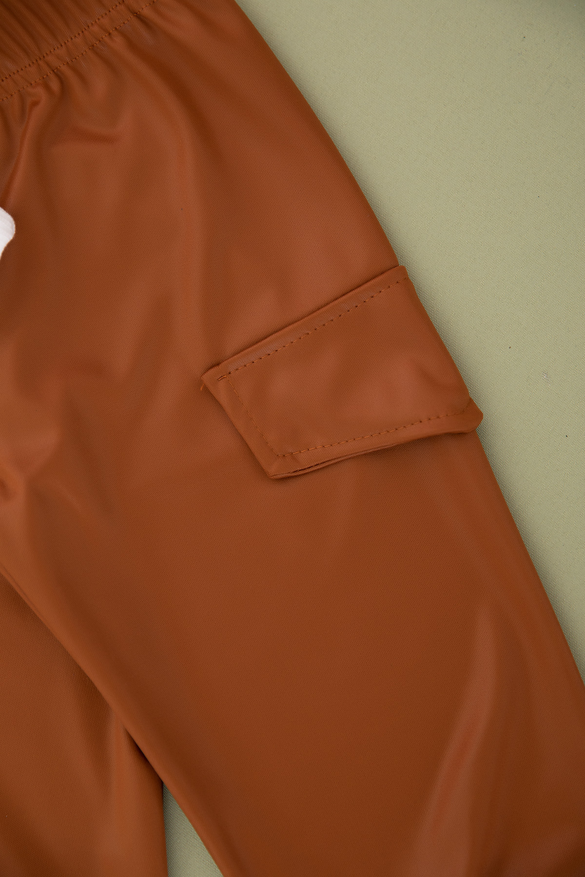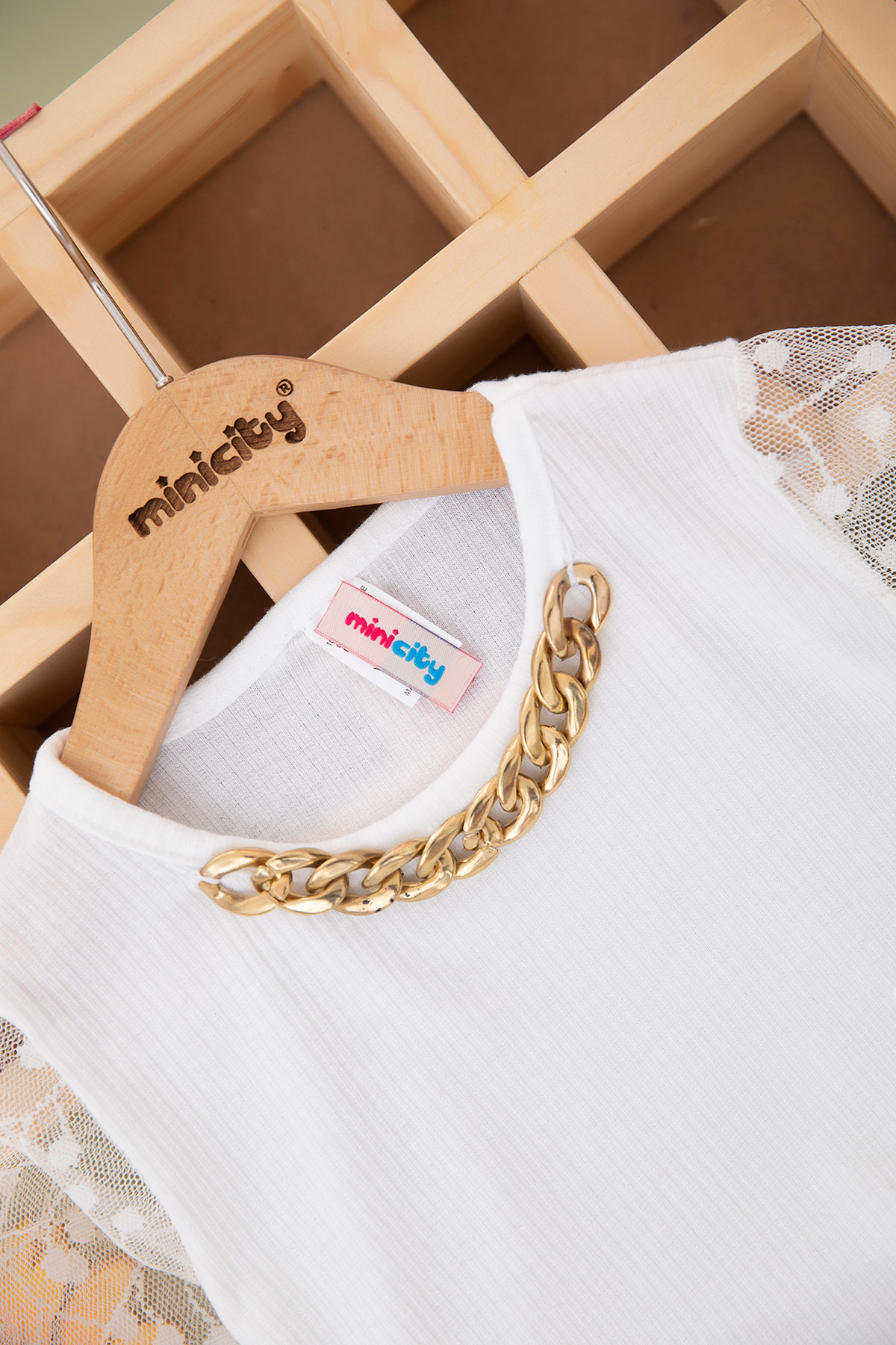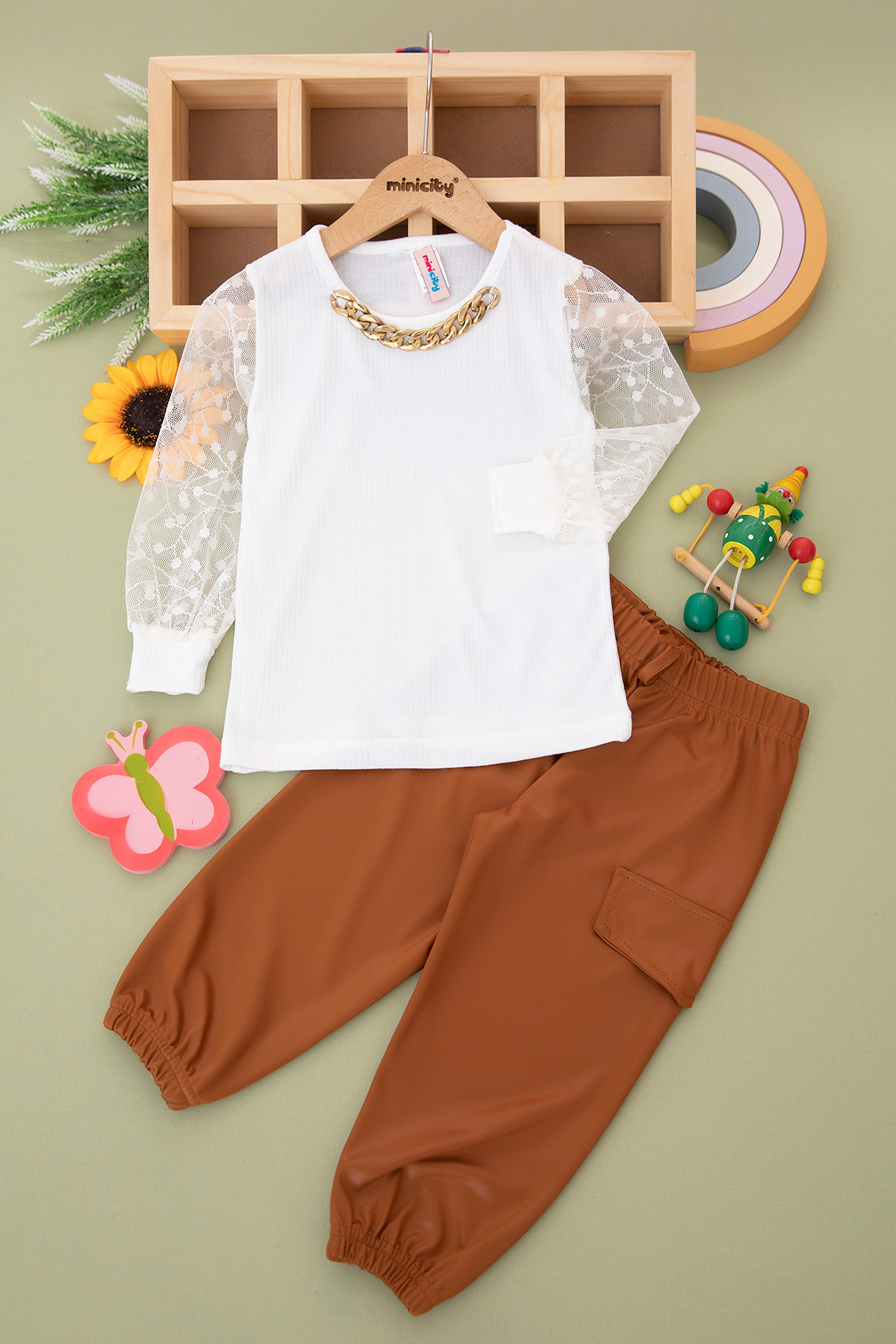 Kız Çocuk Kolu Tüllü Badi Deri Pantolon Takım (3-7 Yaş)