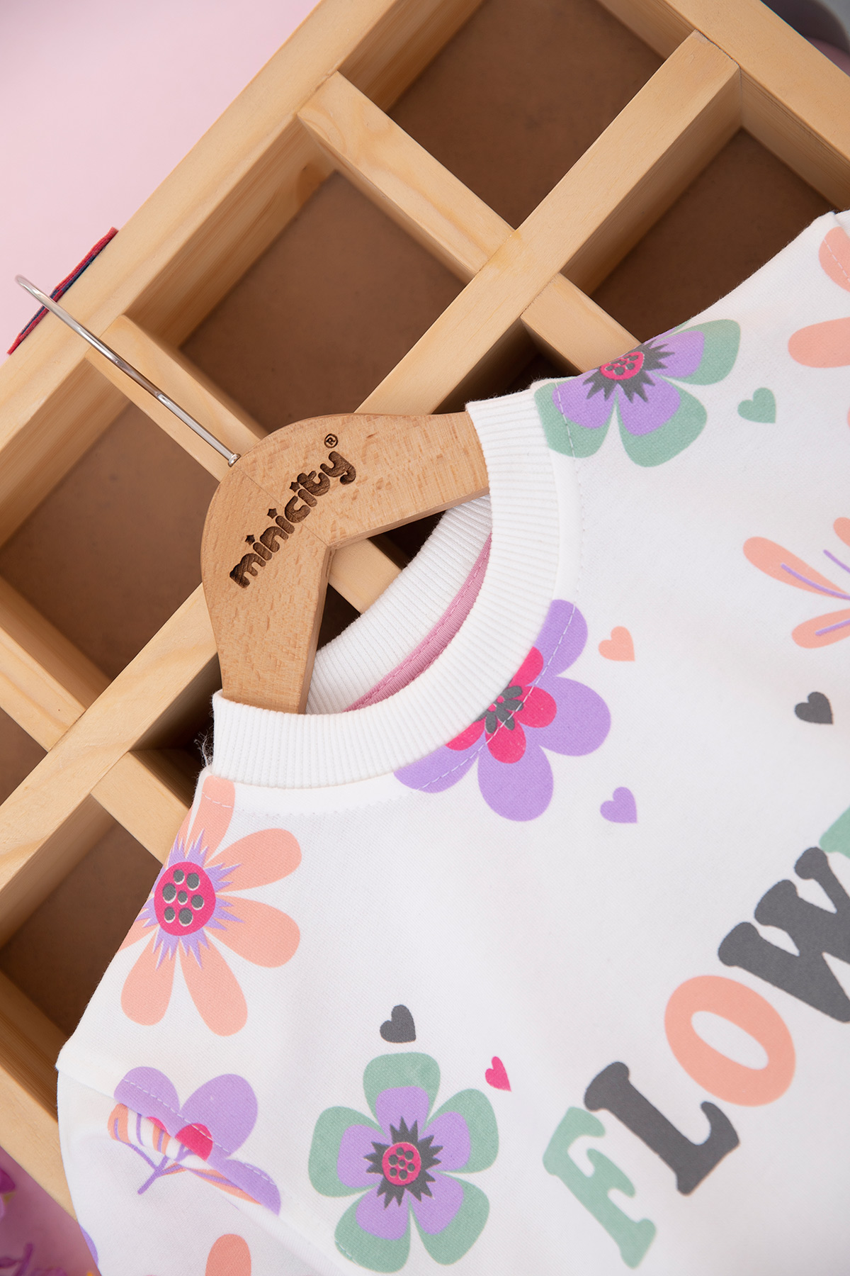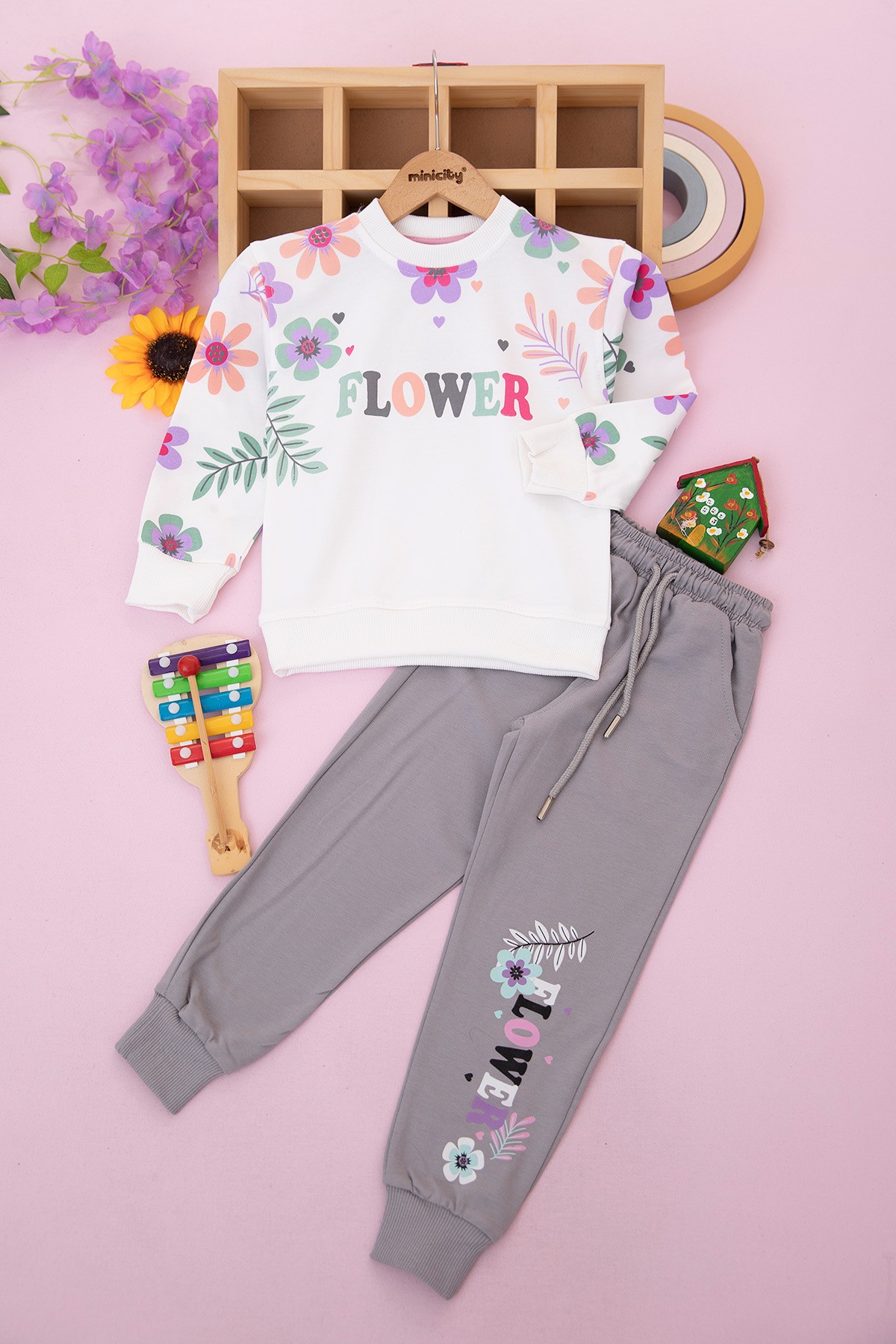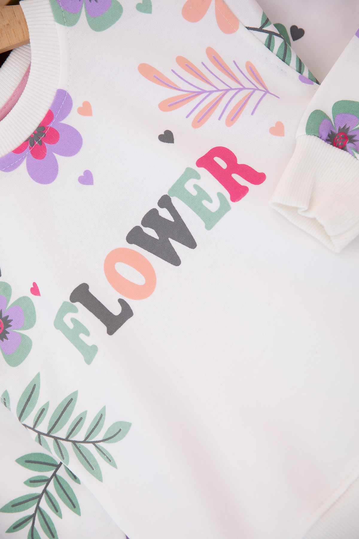 Kız Çocuk Kolu Ve Önü Flower Baskılı Takım - 407 (3-6 Yaş)