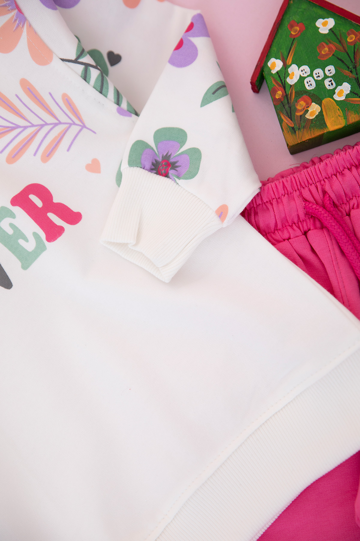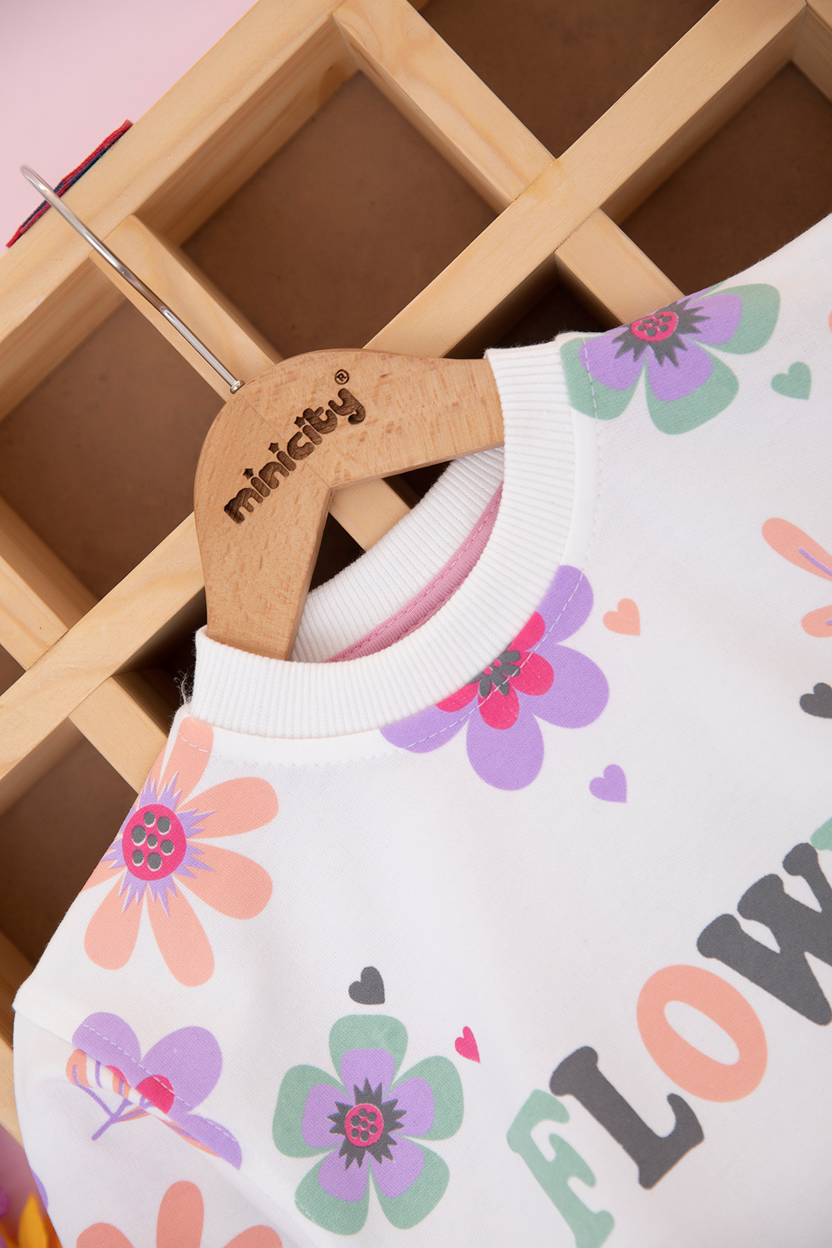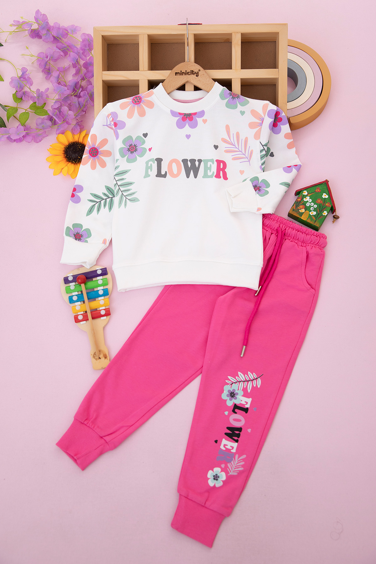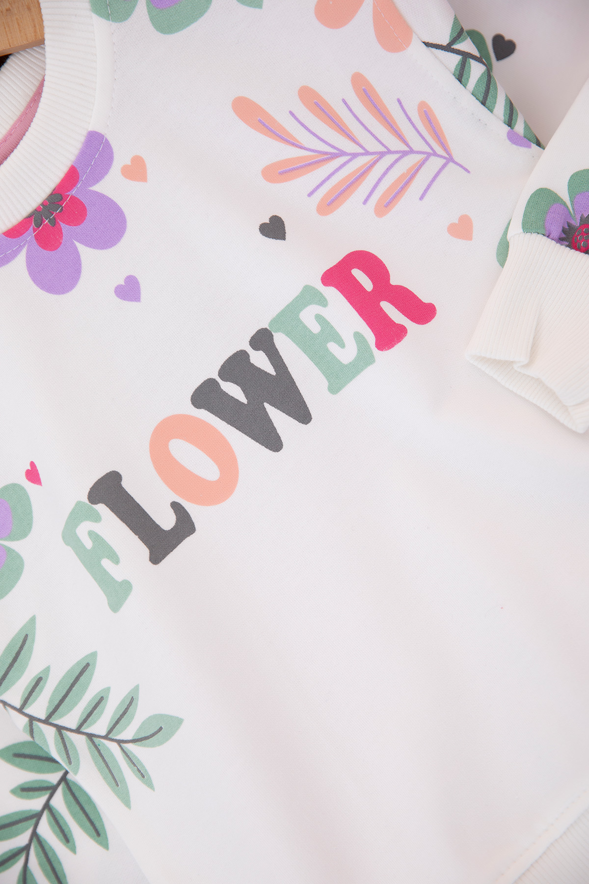 Kız Çocuk Kolu Ve Önü Flower Baskılı Takım - 407 (3-6 Yaş)