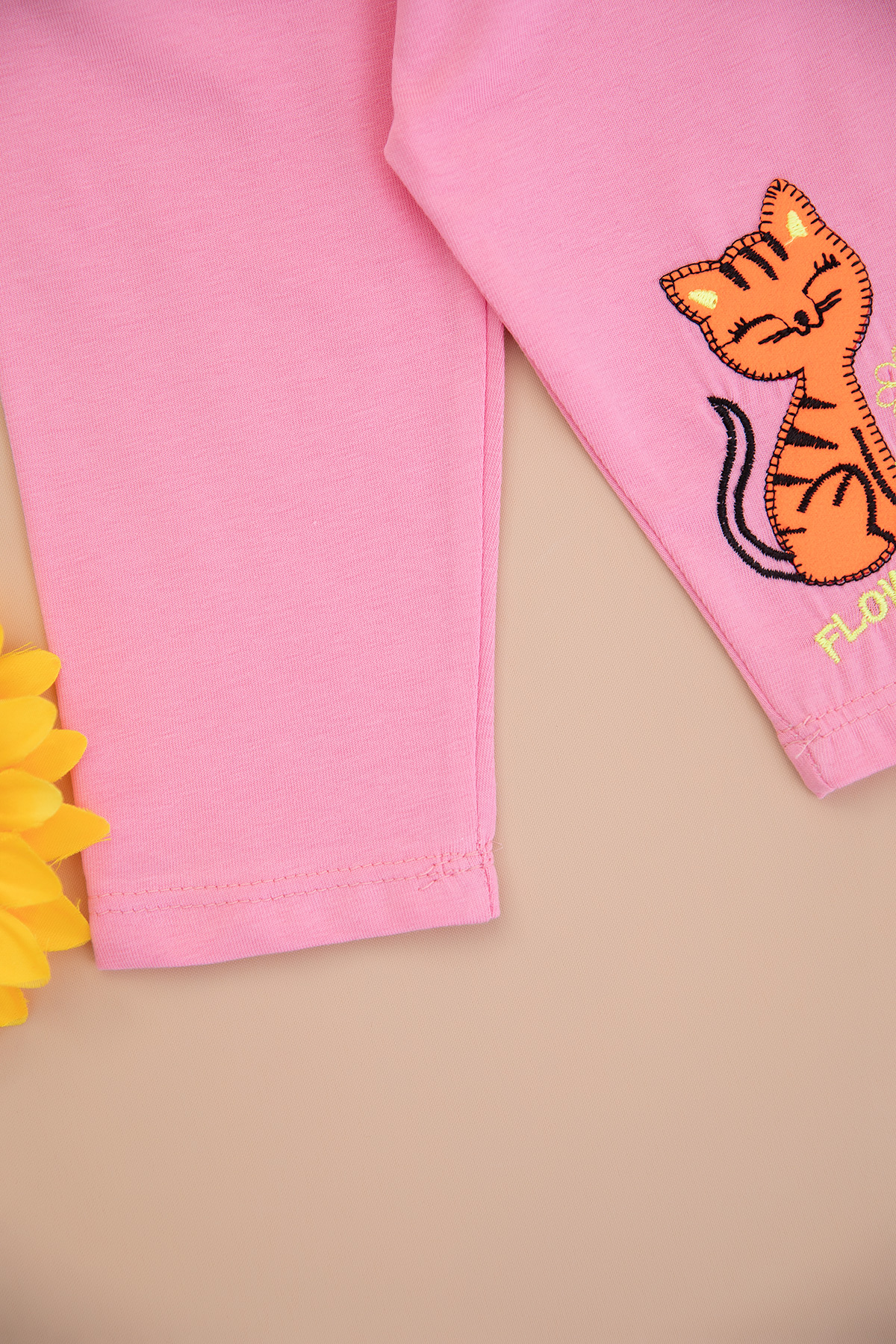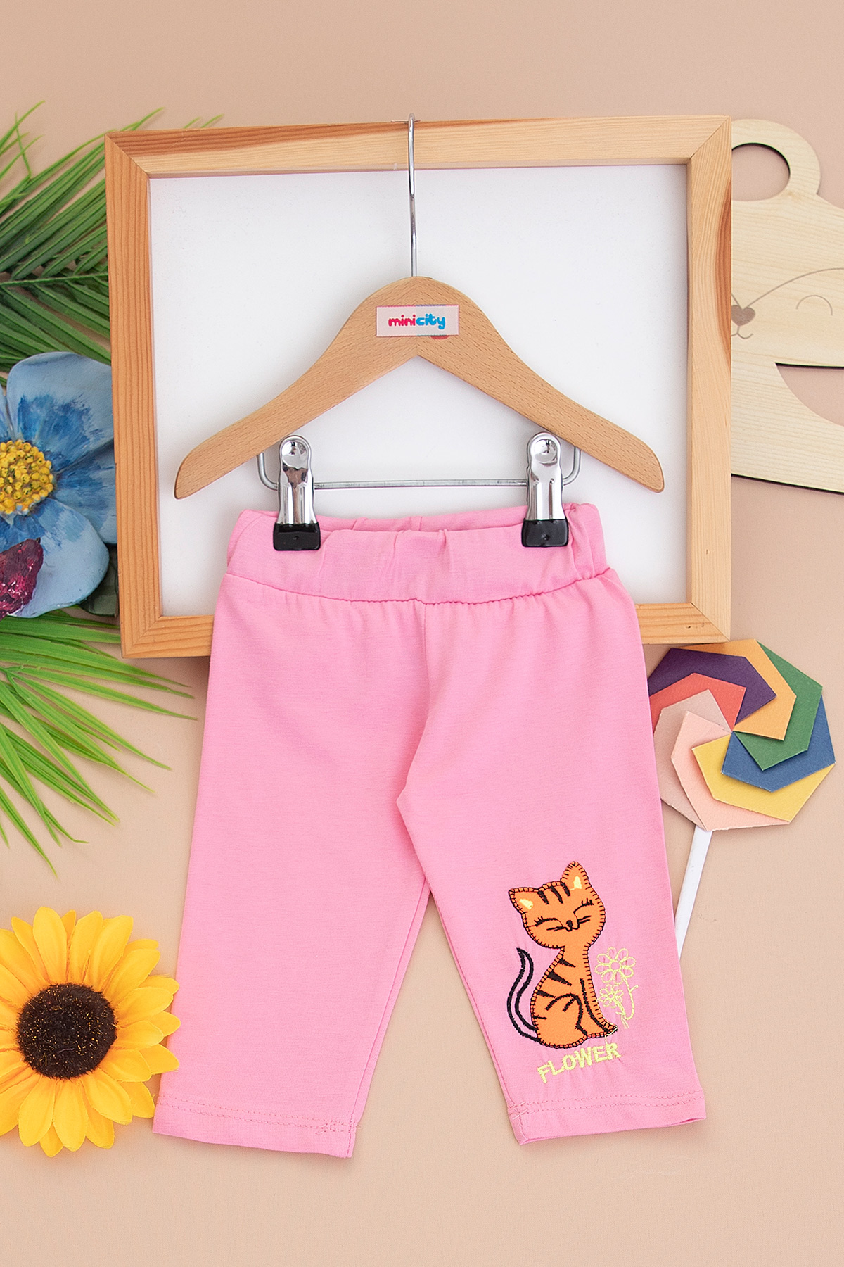 Kız Çocuk Konpak Penye Nakışlı Kapri (3-10 Yaş)
