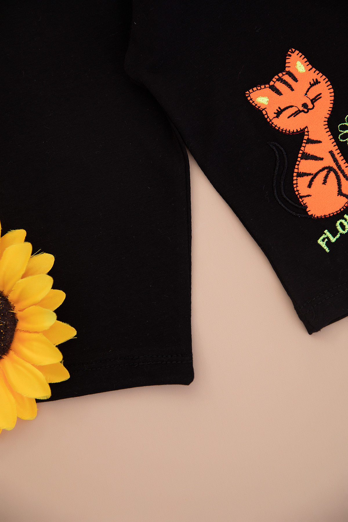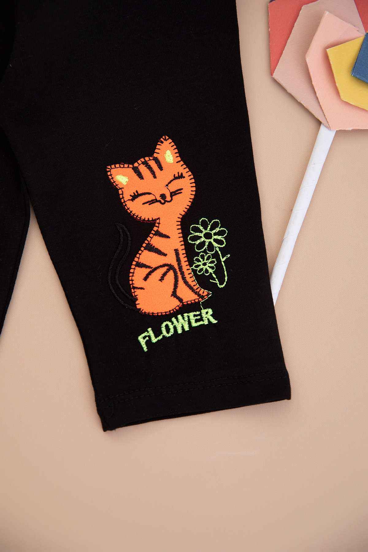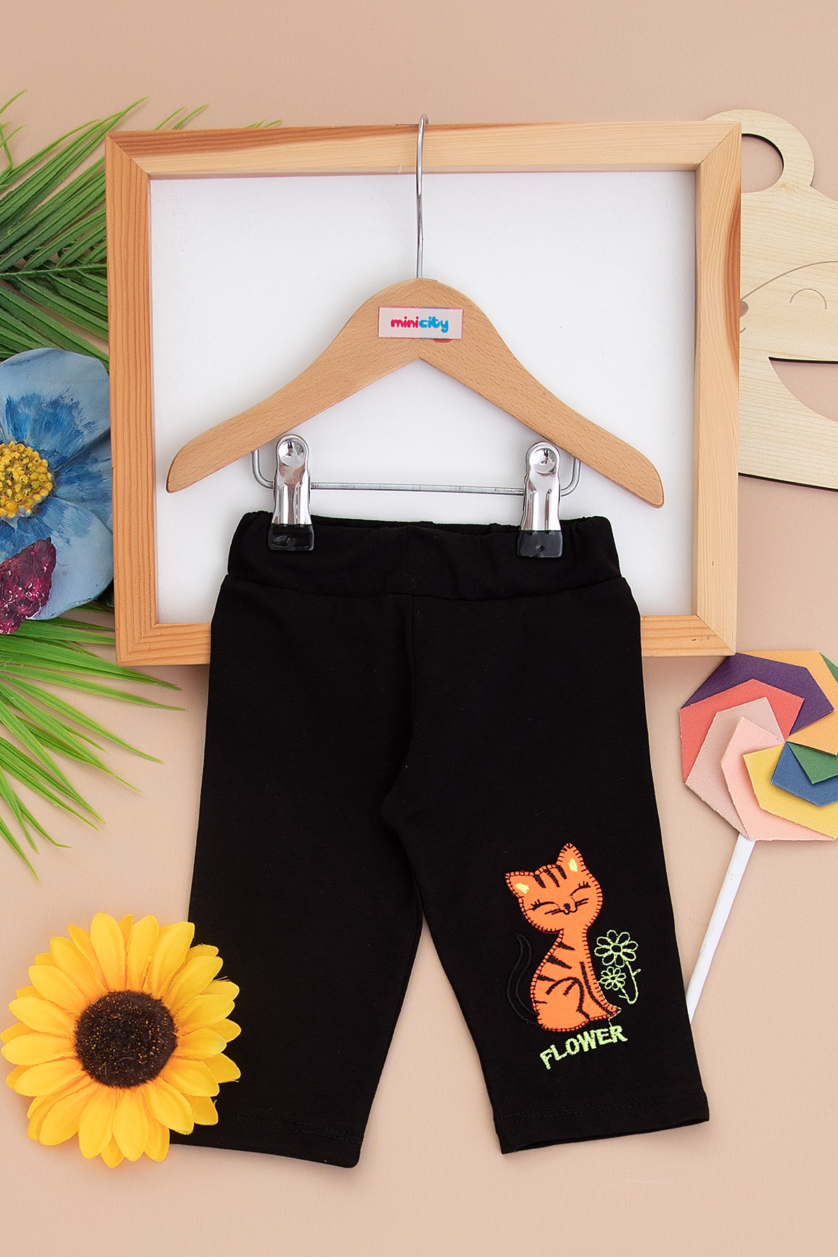 Kız Çocuk Konpak Penye Nakışlı Kapri (3-10 Yaş)