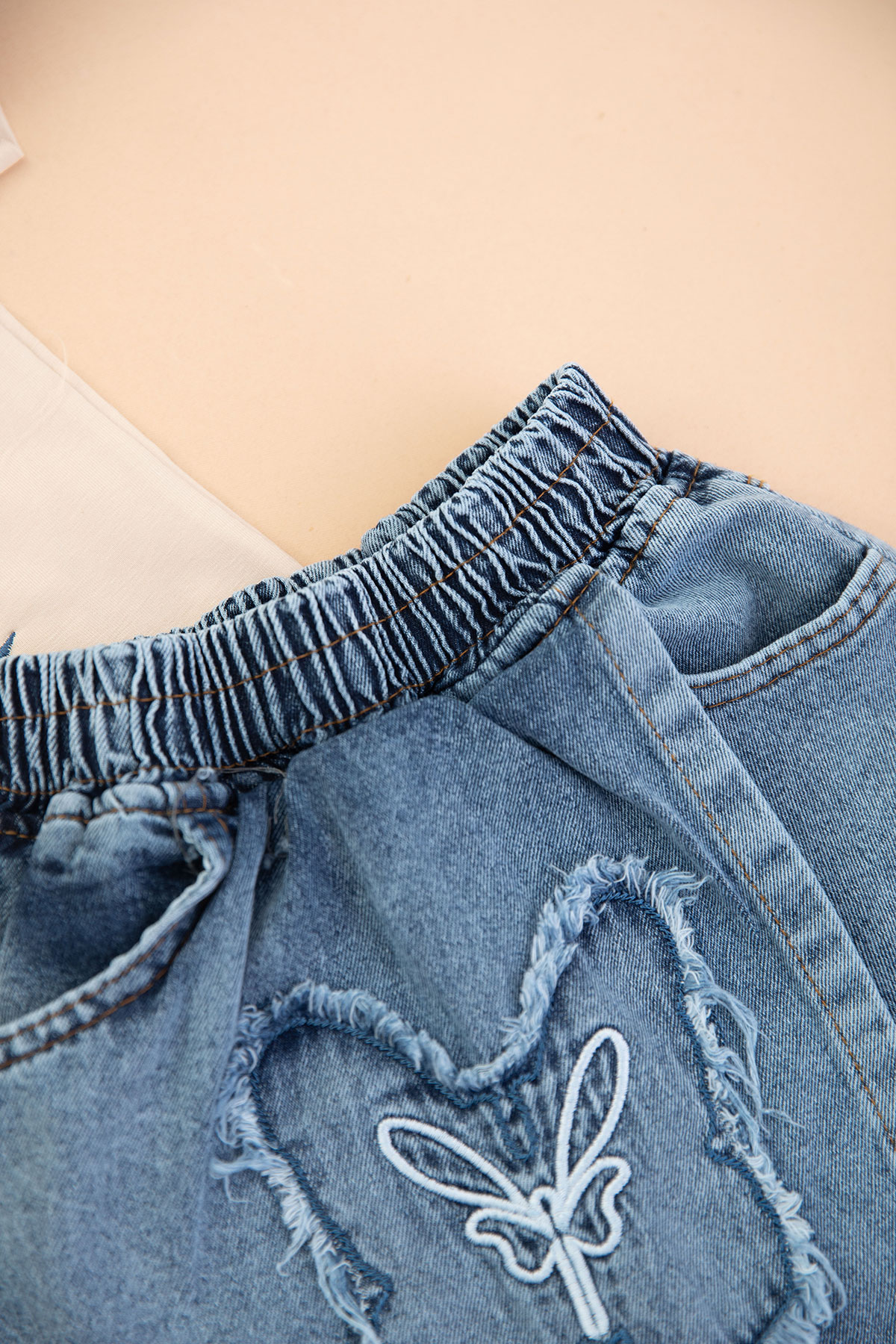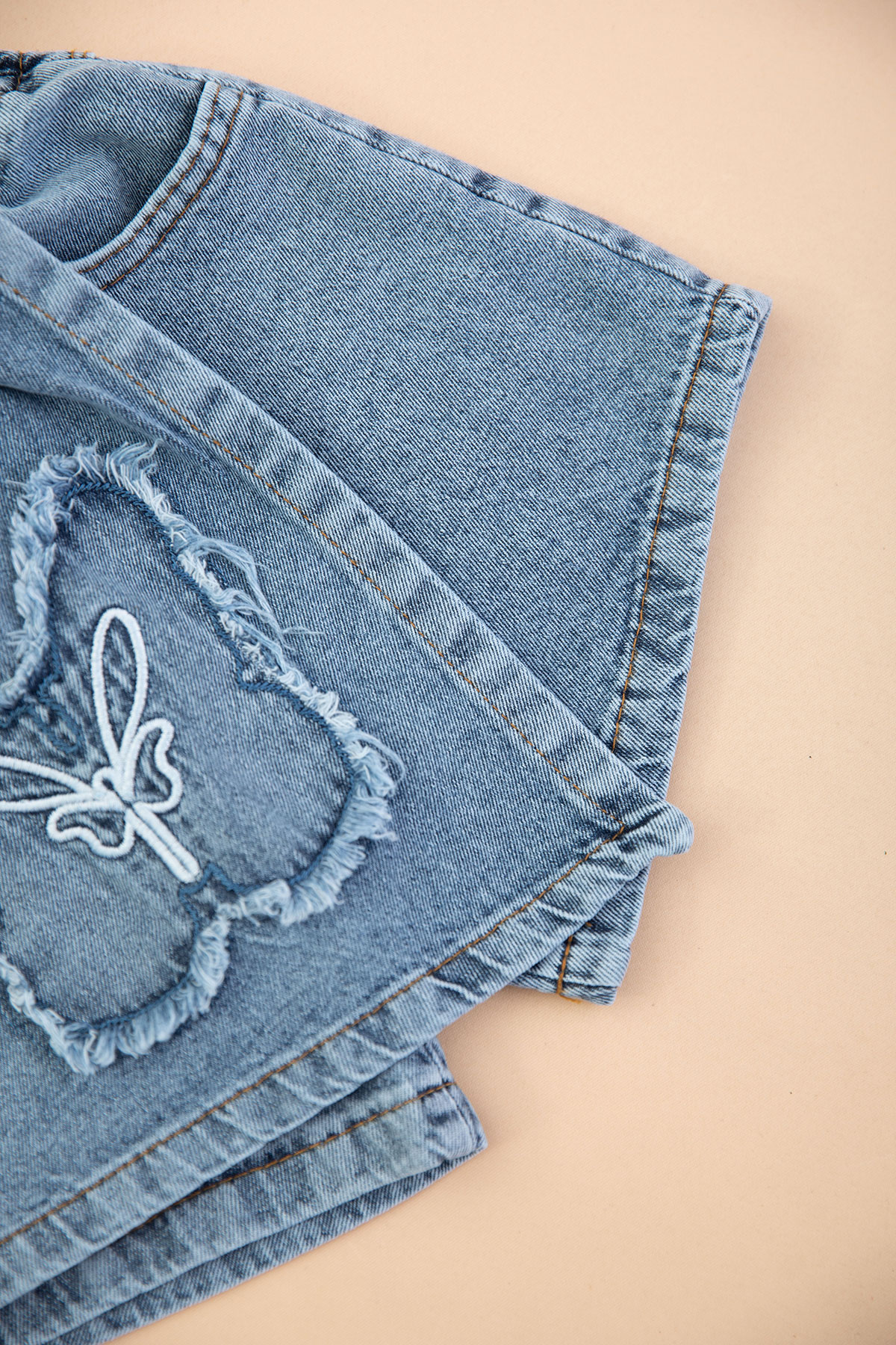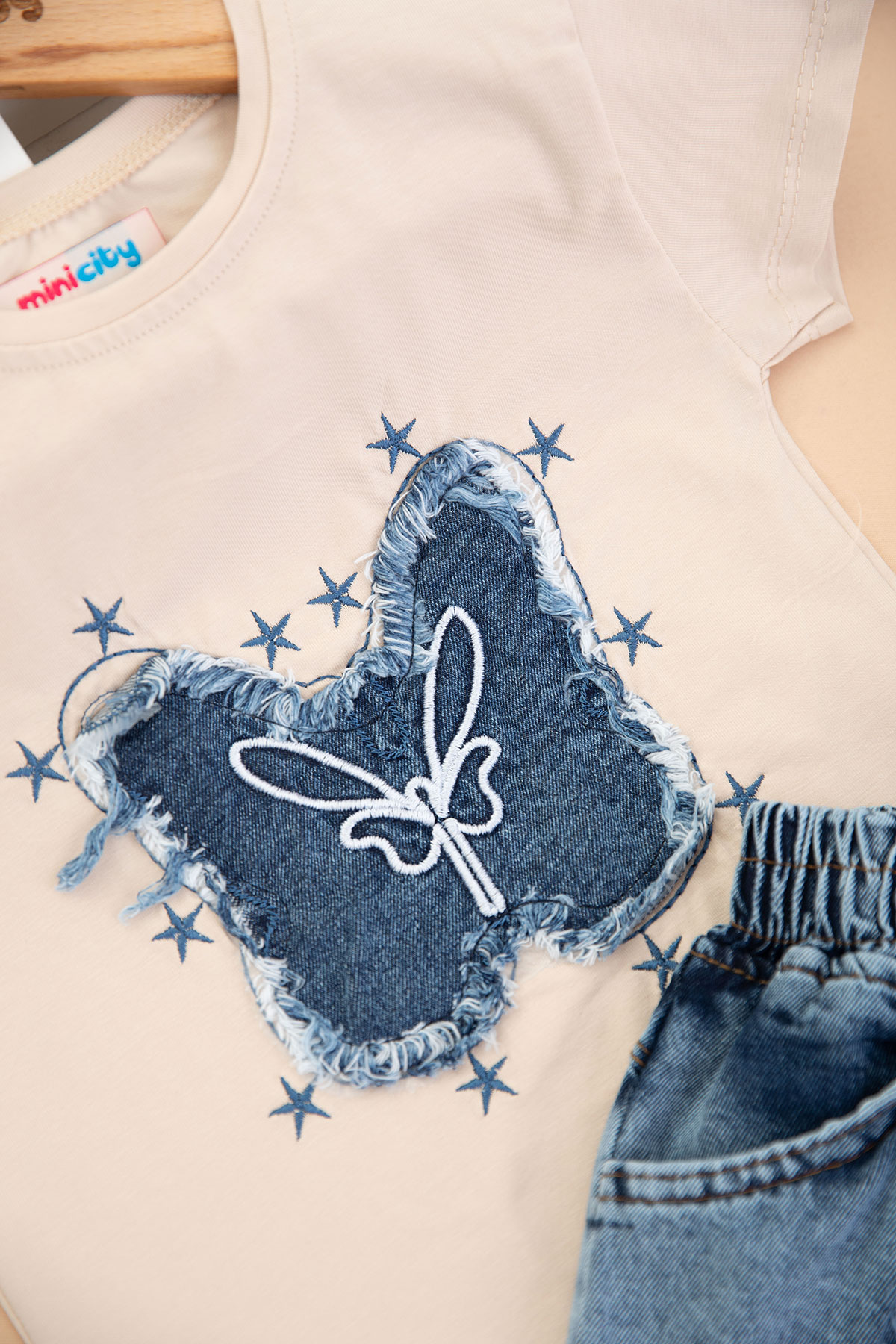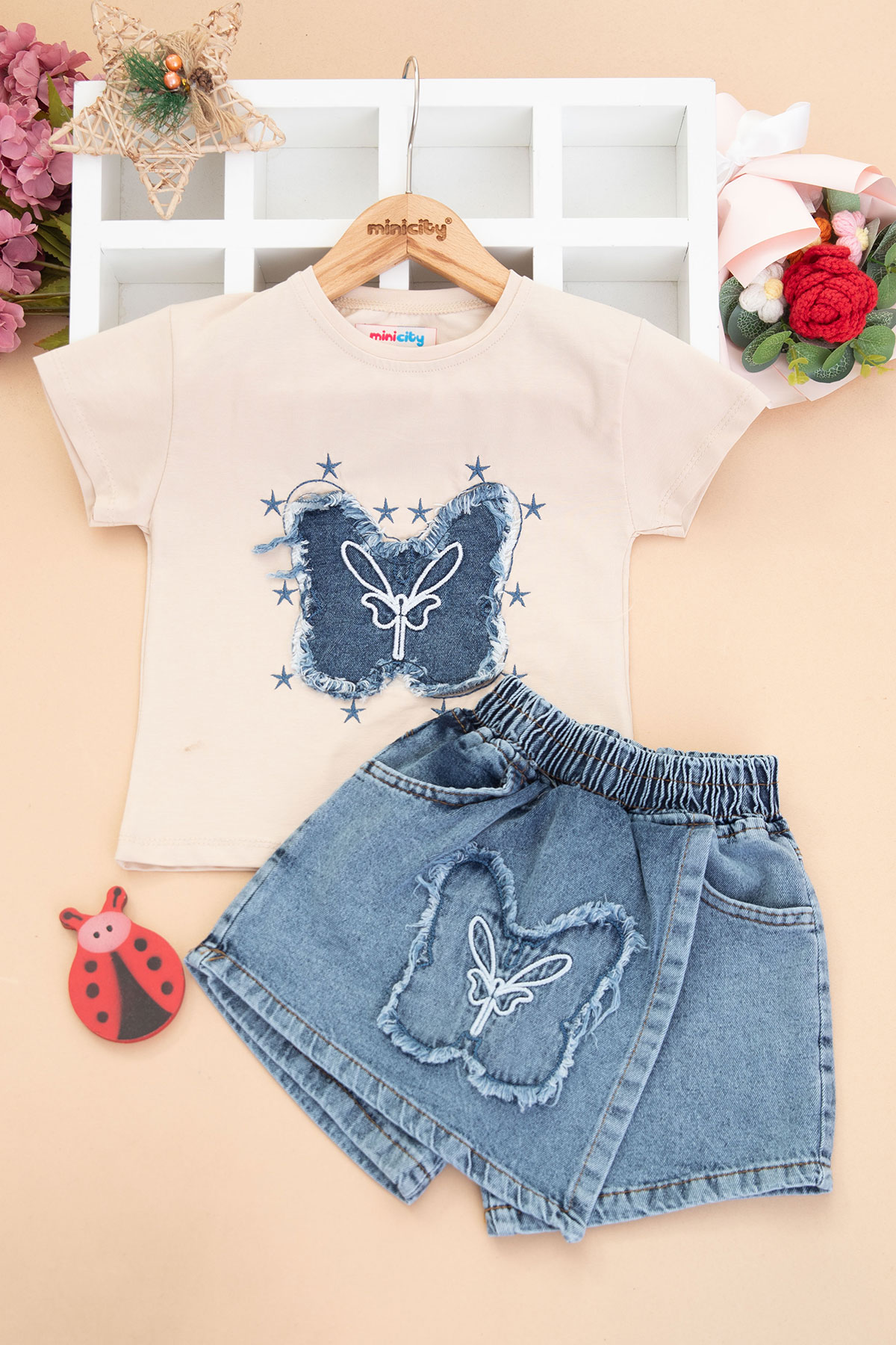 Kız Çocuk Kot Kelebek Nakışlı Etekli Takım - 1711 (3-7 Yaş)