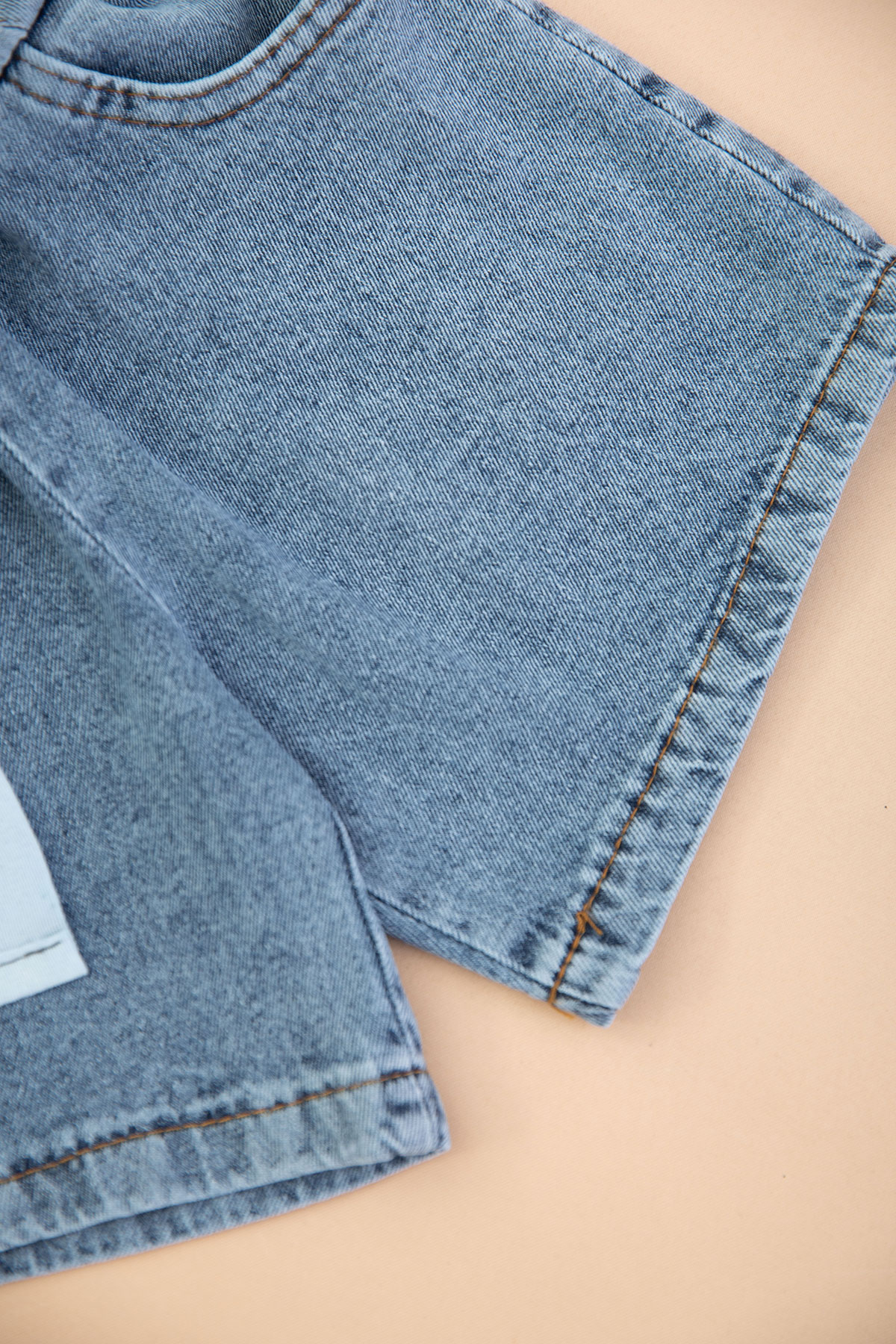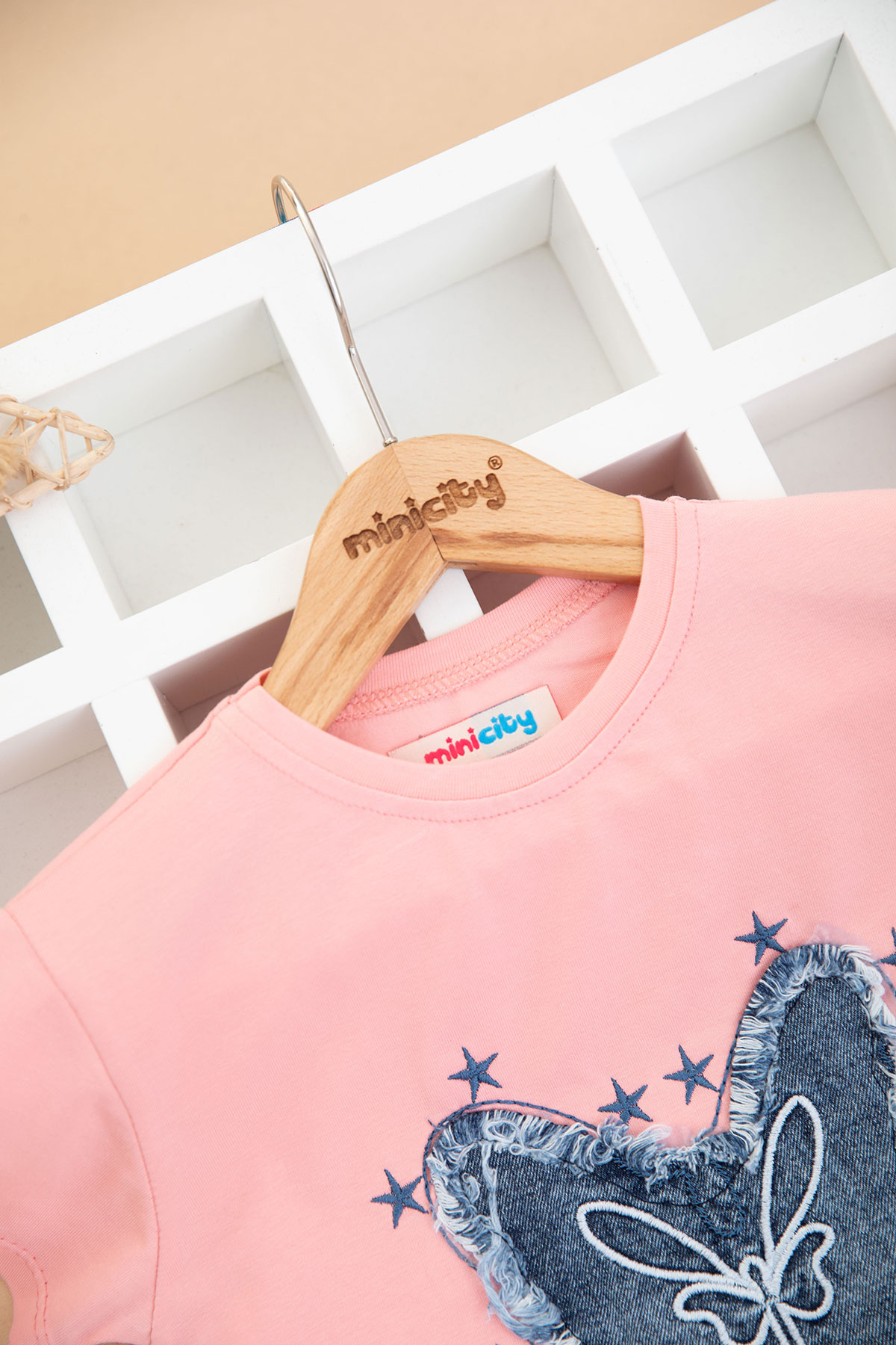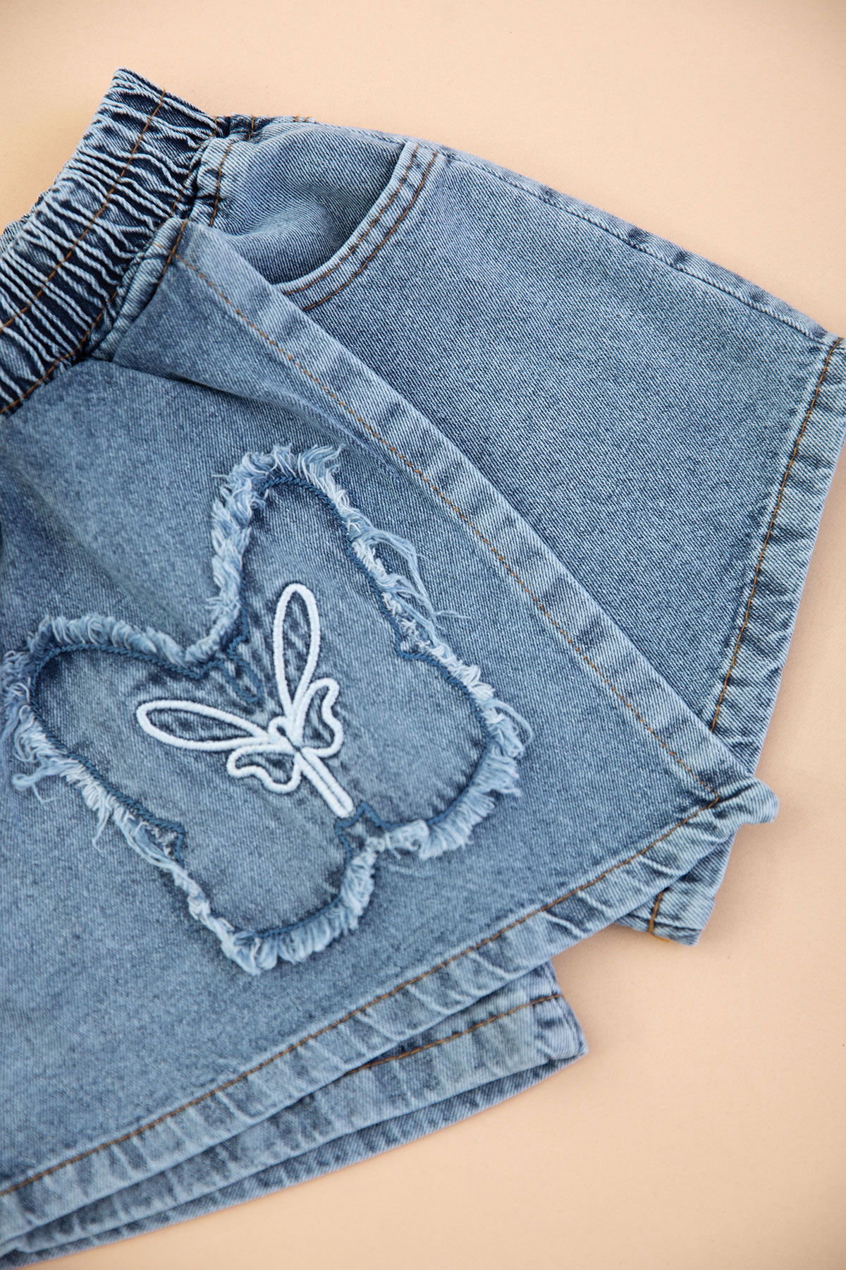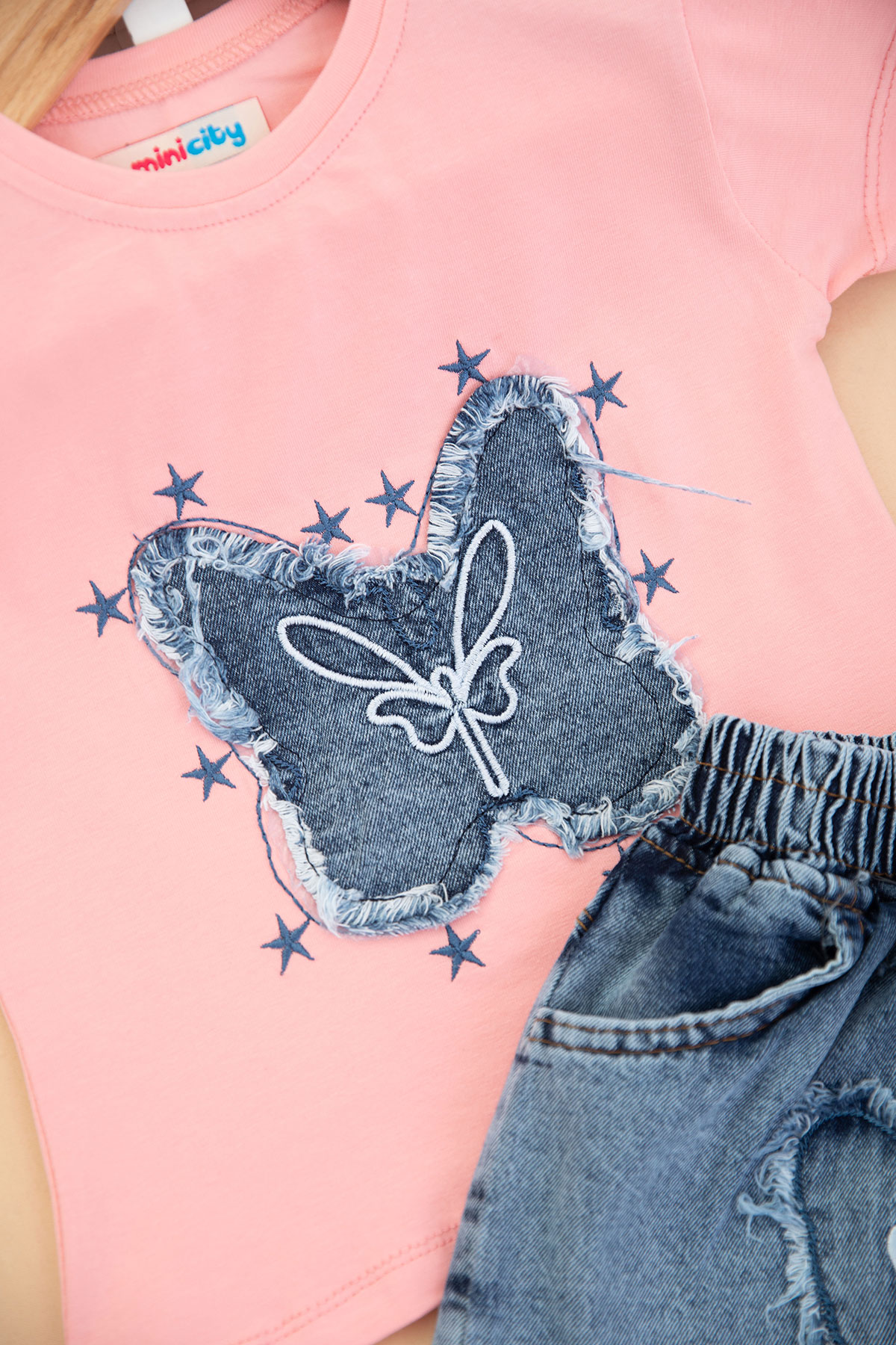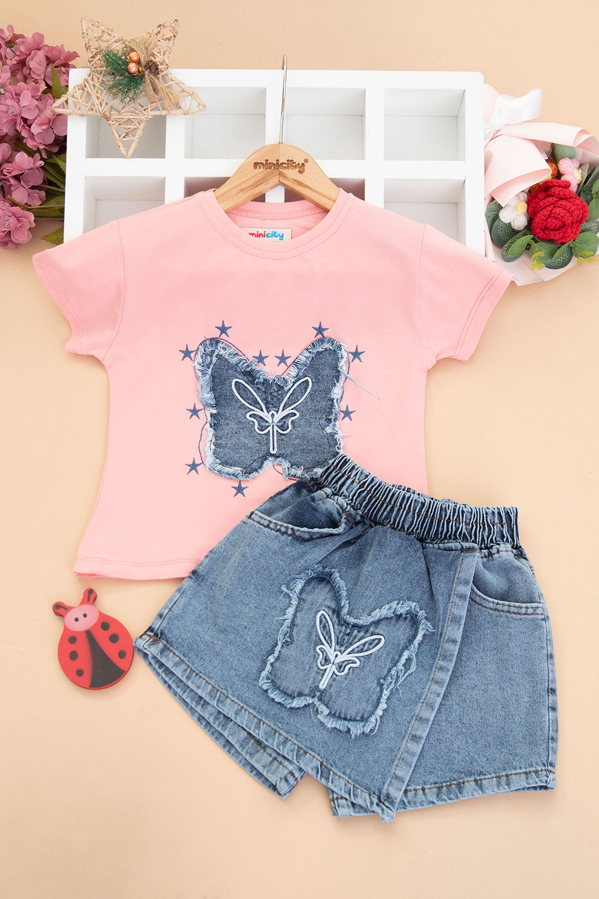 Kız Çocuk Kot Kelebek Nakışlı Etekli Takım - 1711 (3-7 Yaş)