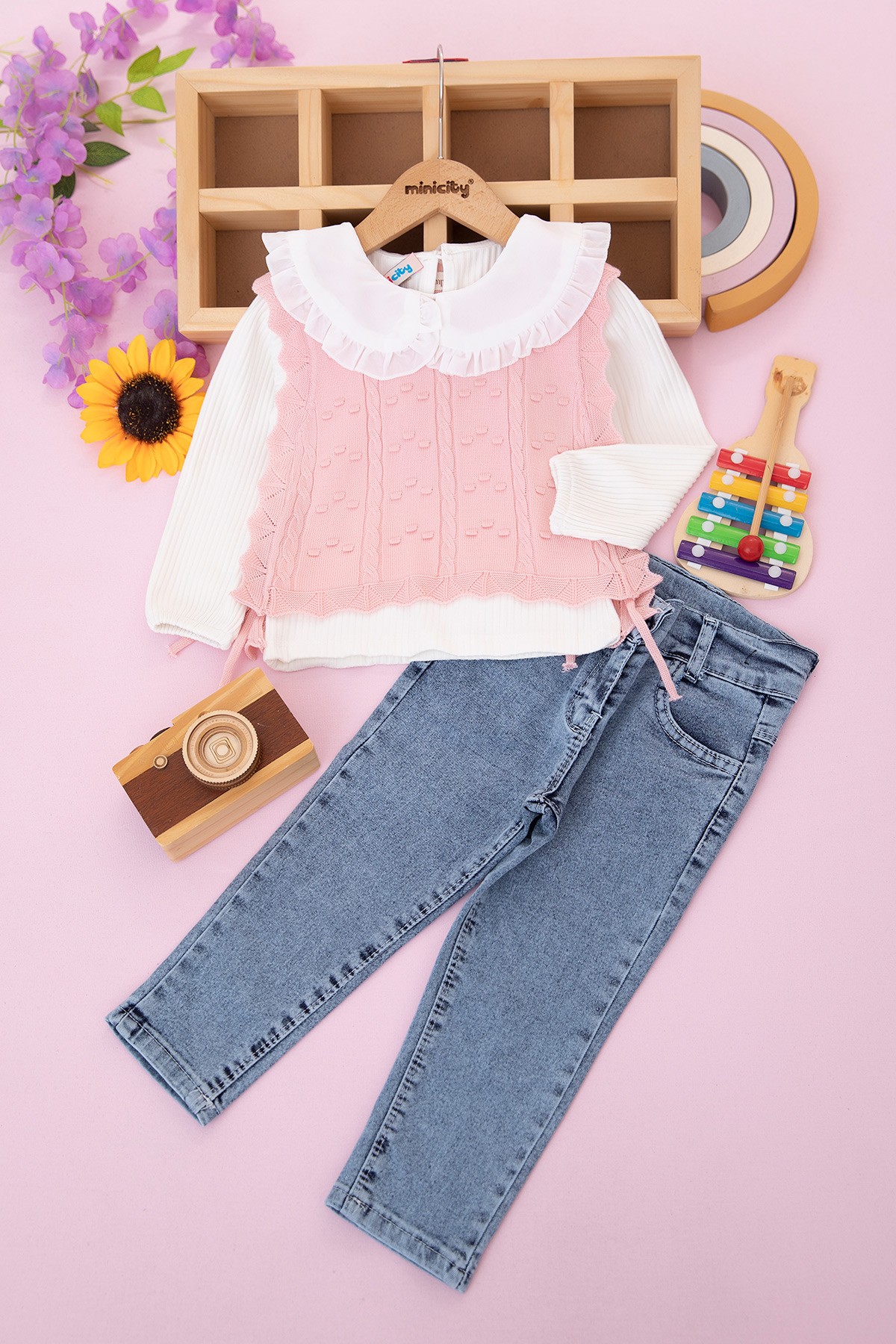 Kız Çocuk Kot Pantolonlu Üçlü Takım - 6255 (2-5 Yaş)