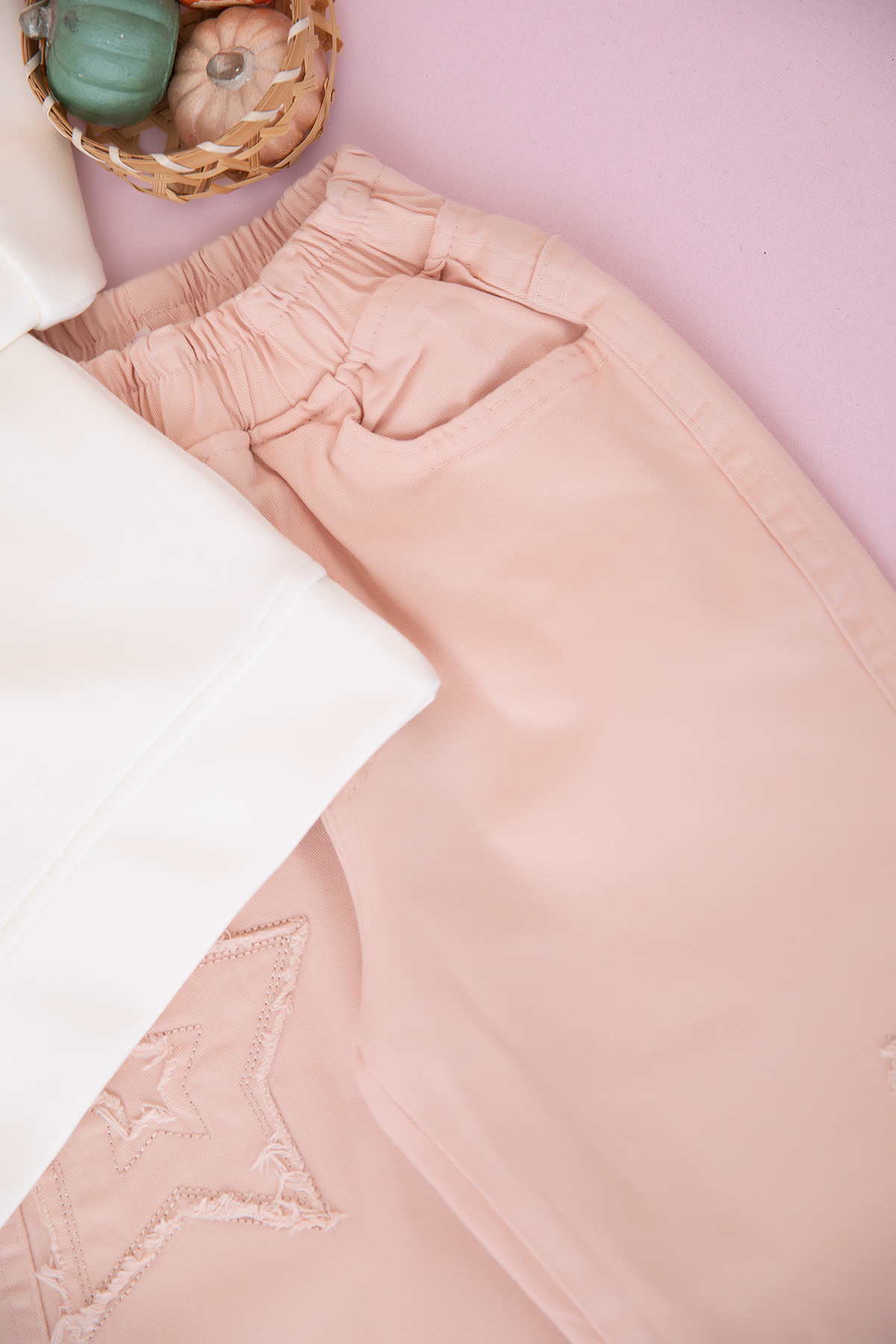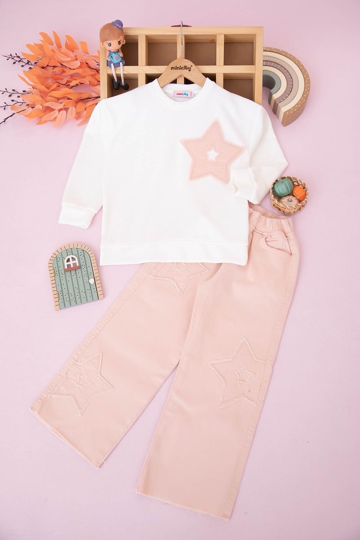 Kız Çocuk Kot Yıldız Nakışlı Takım - 70370 (5-12 Yaş)