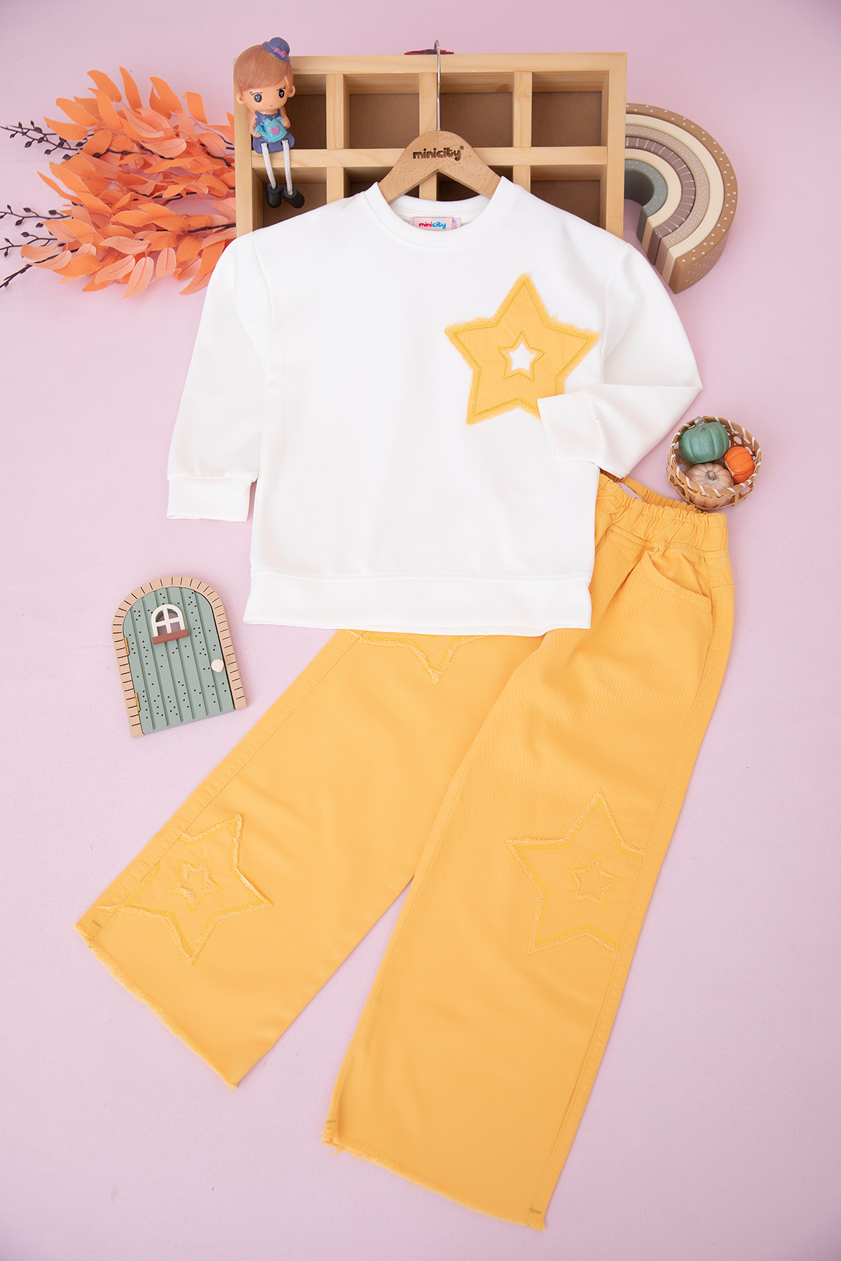 Kız Çocuk Kot Yıldız Nakışlı Takım - 70370 (5-12 Yaş)