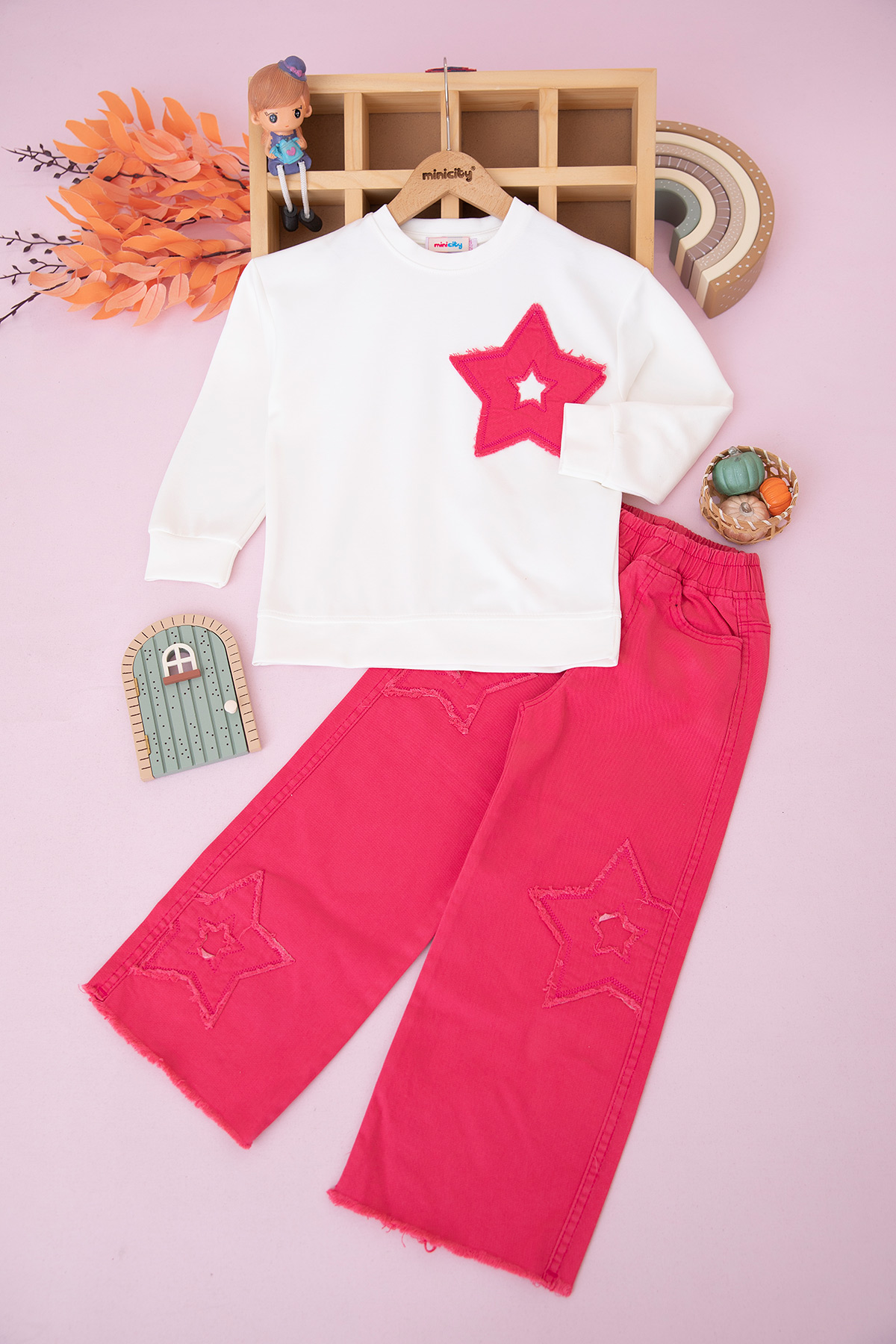 Kız Çocuk Kot Yıldız Nakışlı Takım - 70370 (5-12 Yaş)