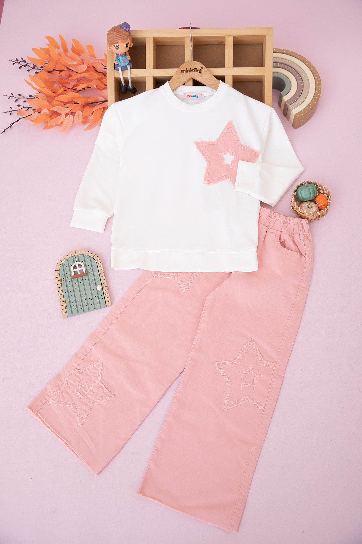 Kız Çocuk Kot Yıldız Nakışlı Takım - 70370 (5-12 Yaş)