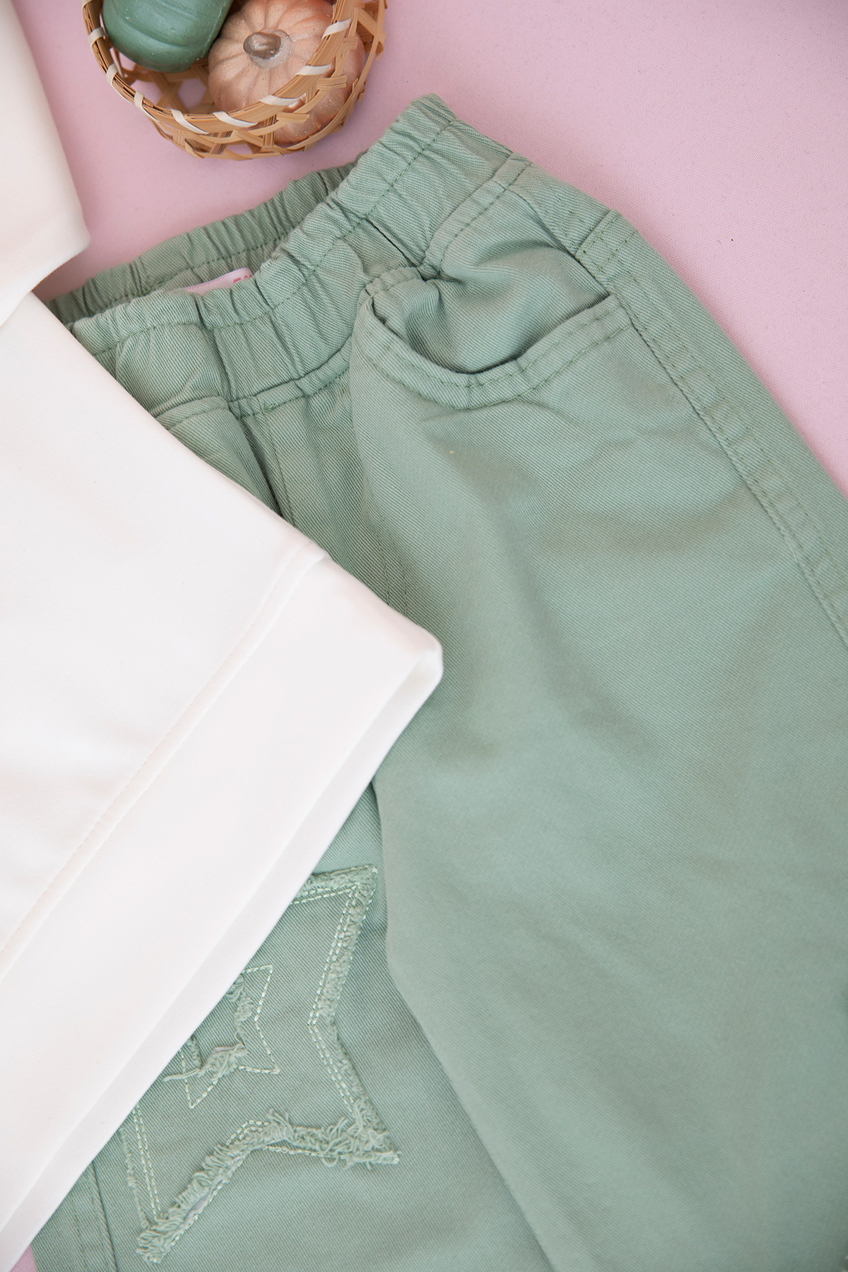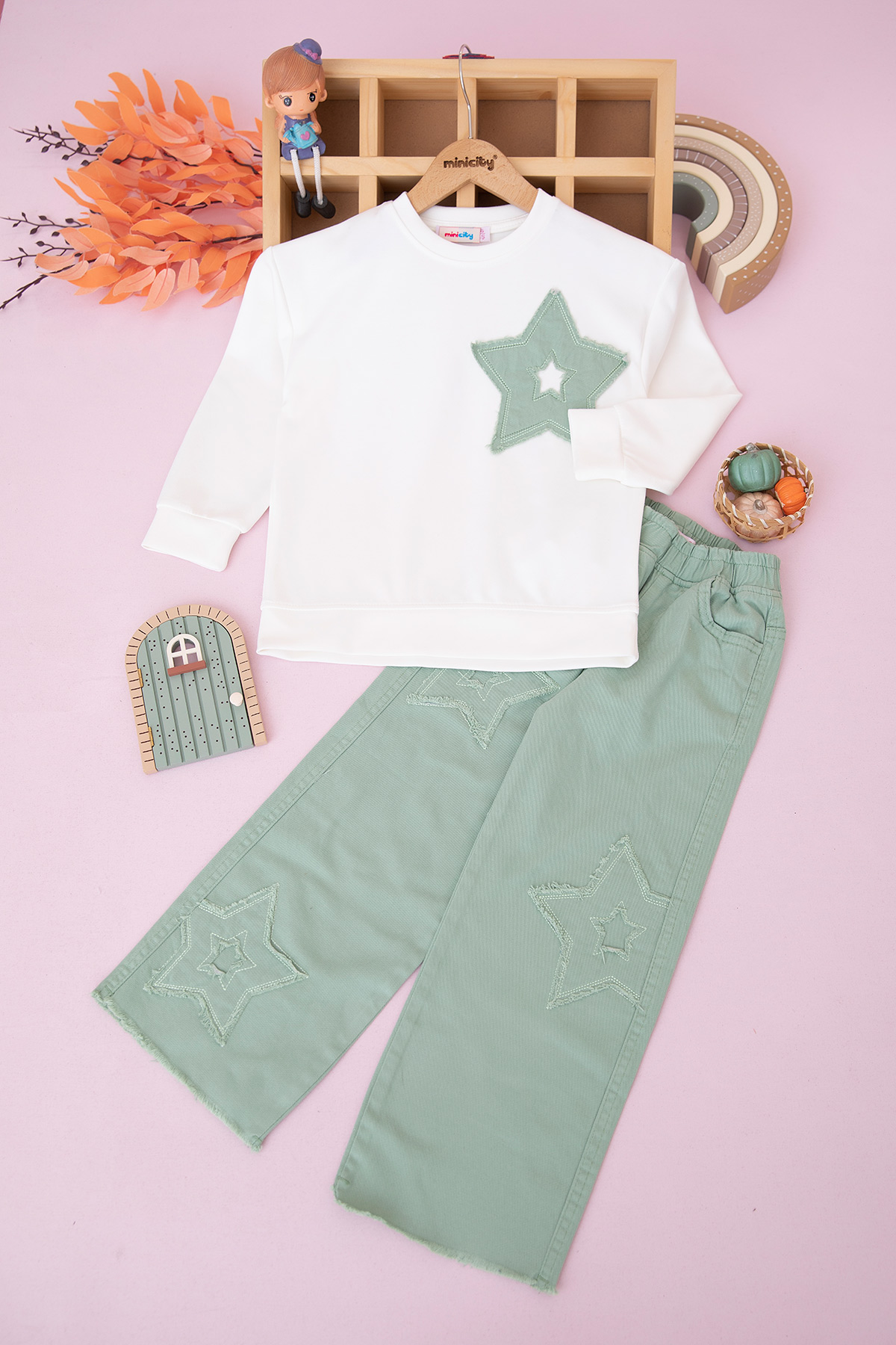 Kız Çocuk Kot Yıldız Nakışlı Takım - 70370 (5-12 Yaş)