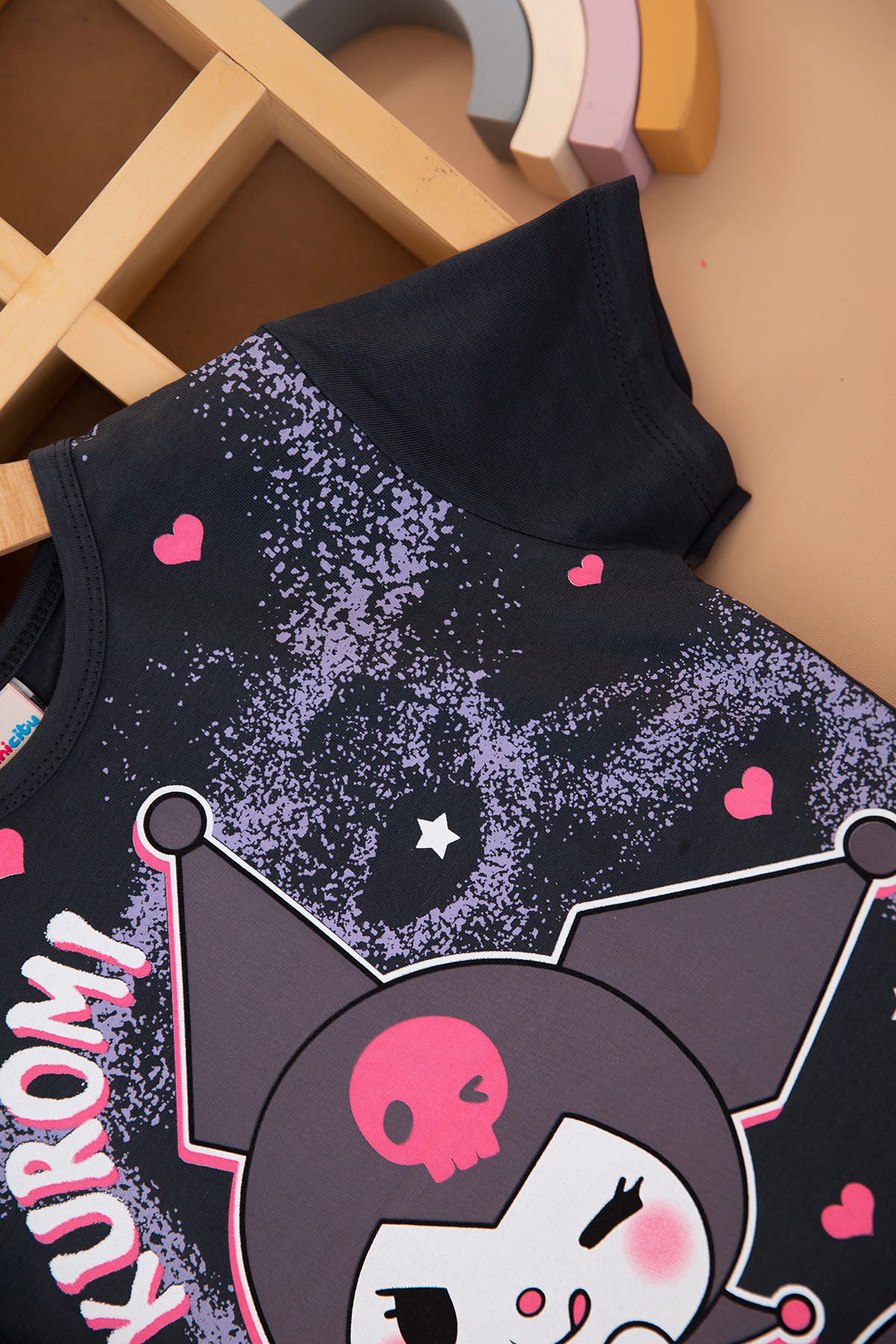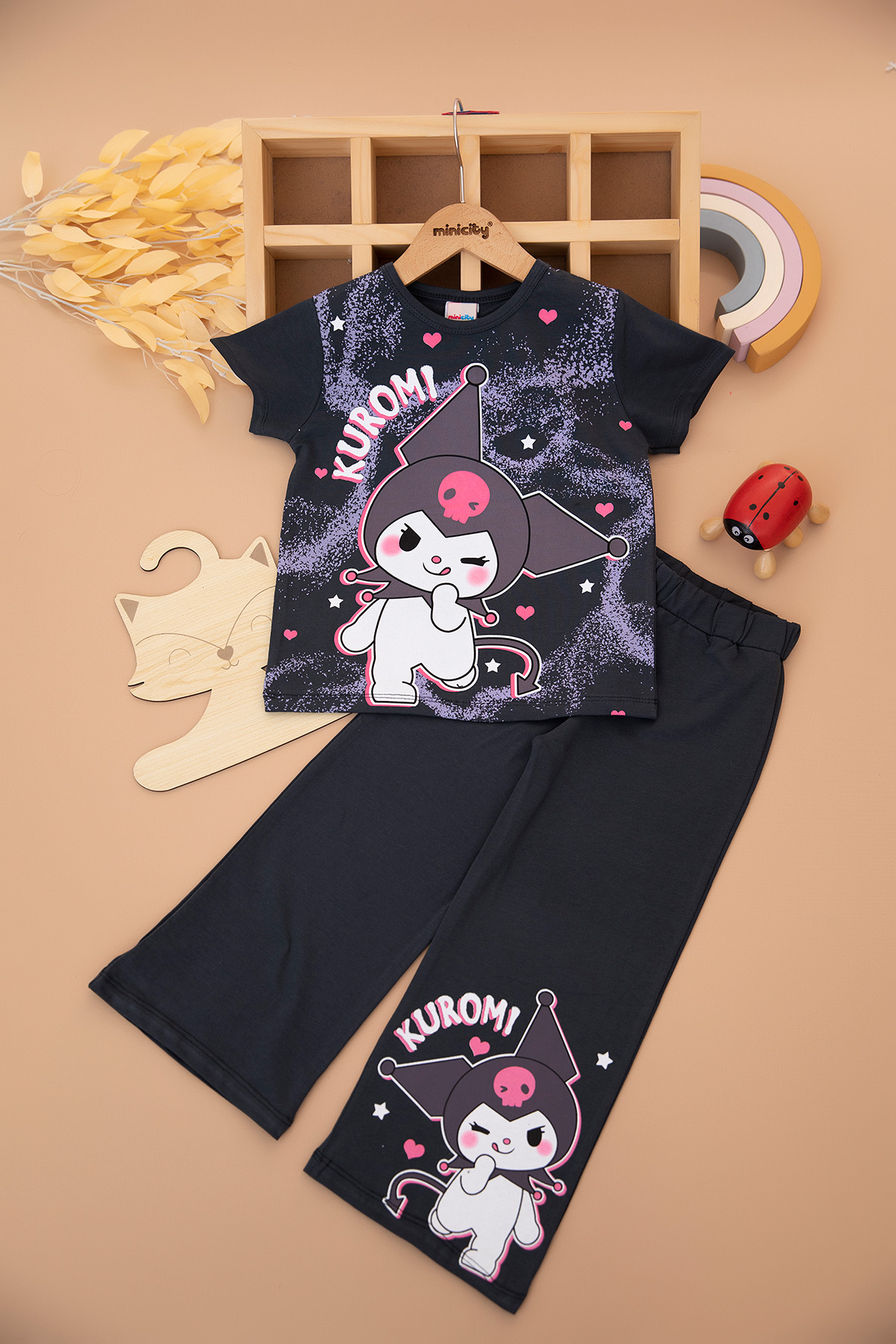 Kız Çocuk Kromi Baskılı Bol Paça Takım - 7618 (3-10 Yaş)