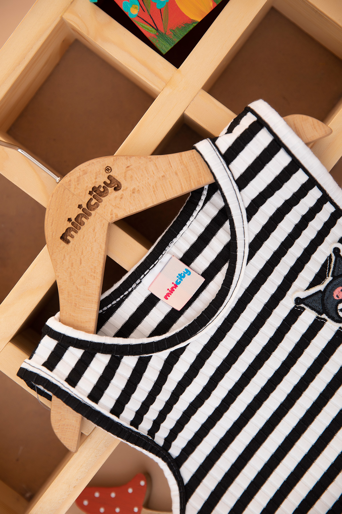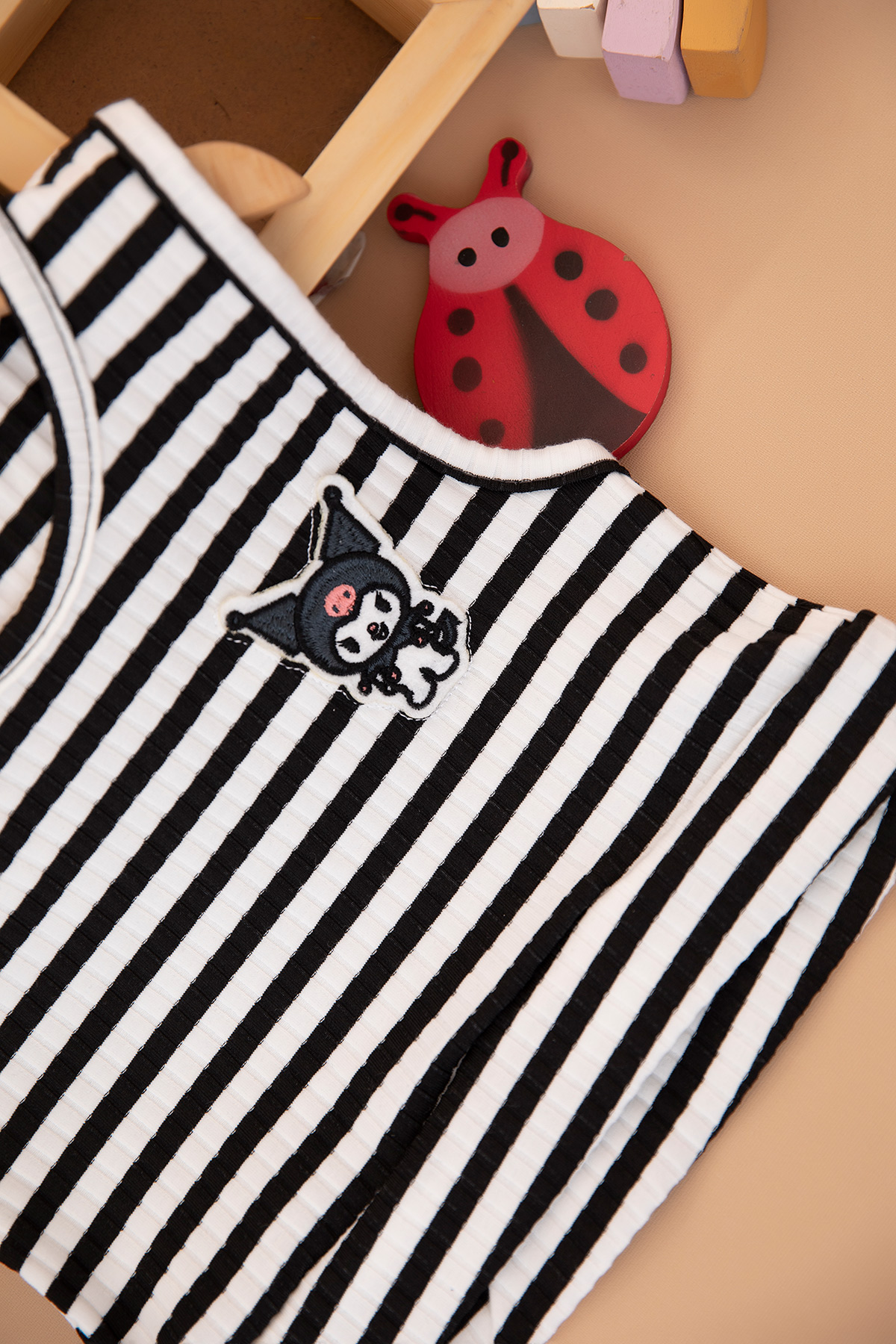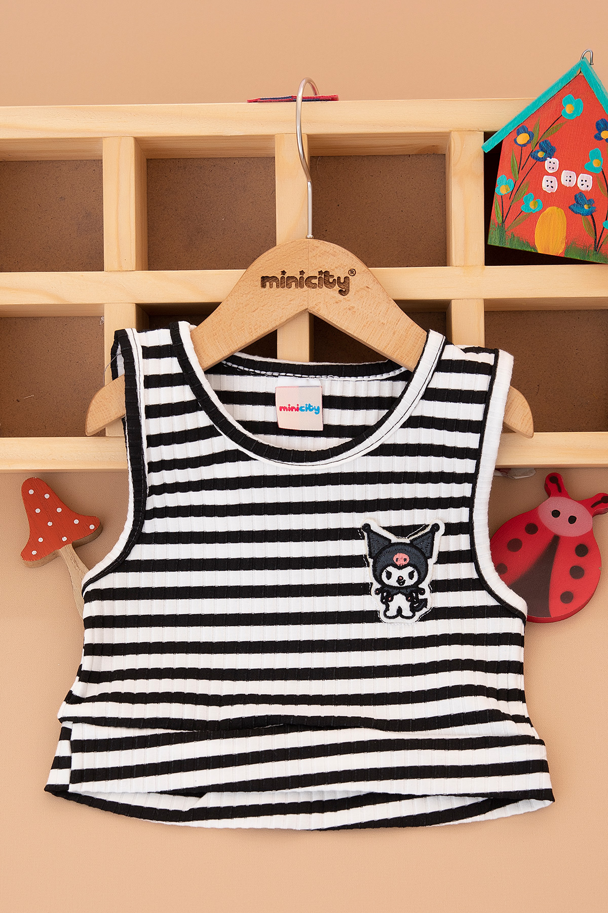 Kız Çocuk Kromi Nakışlı Çizgili Crop Body - 2434 (5-12 Yaş)