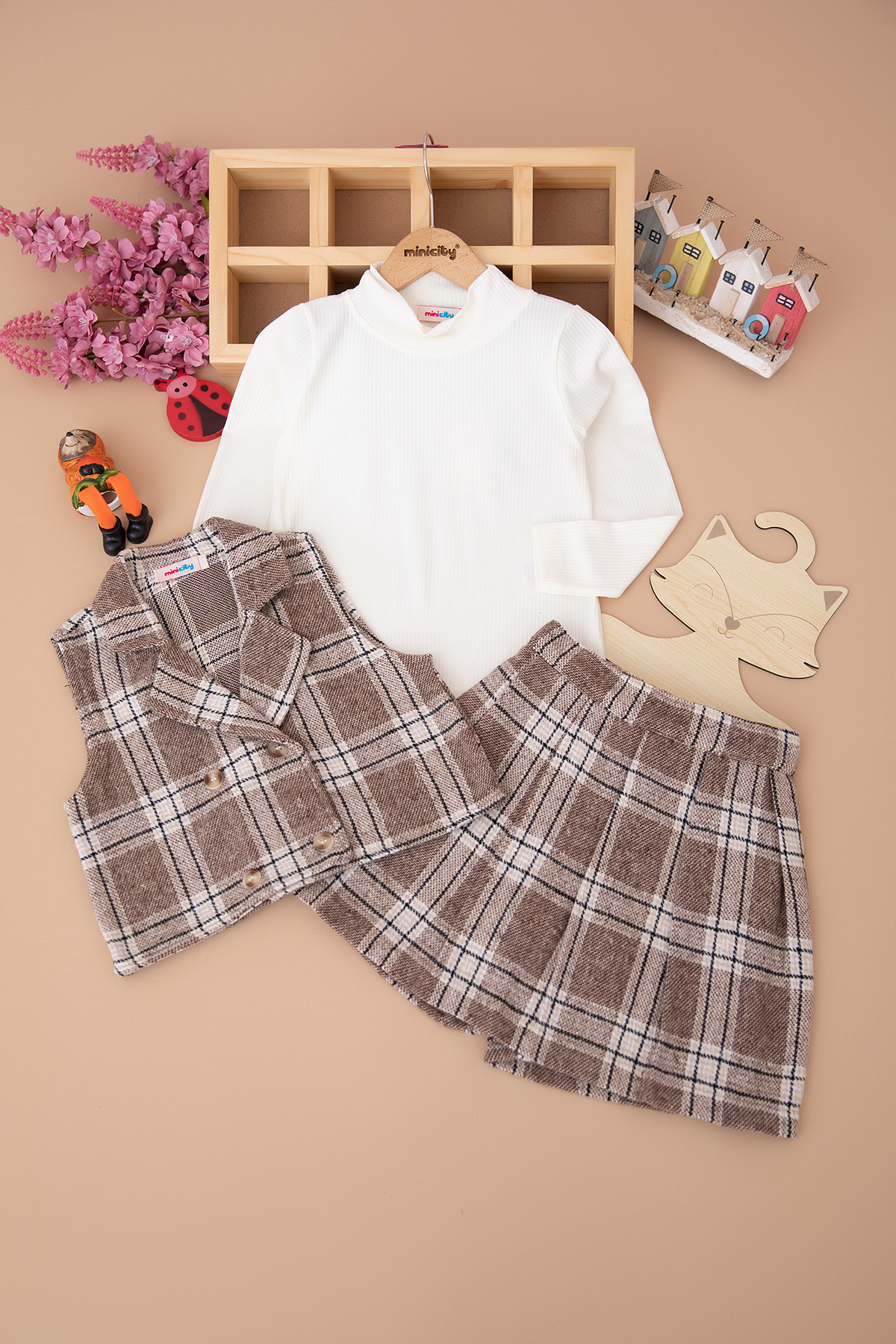 Kız Çocuk Kruvaze Plaid Takım - 1696 (6-9 Yaş)