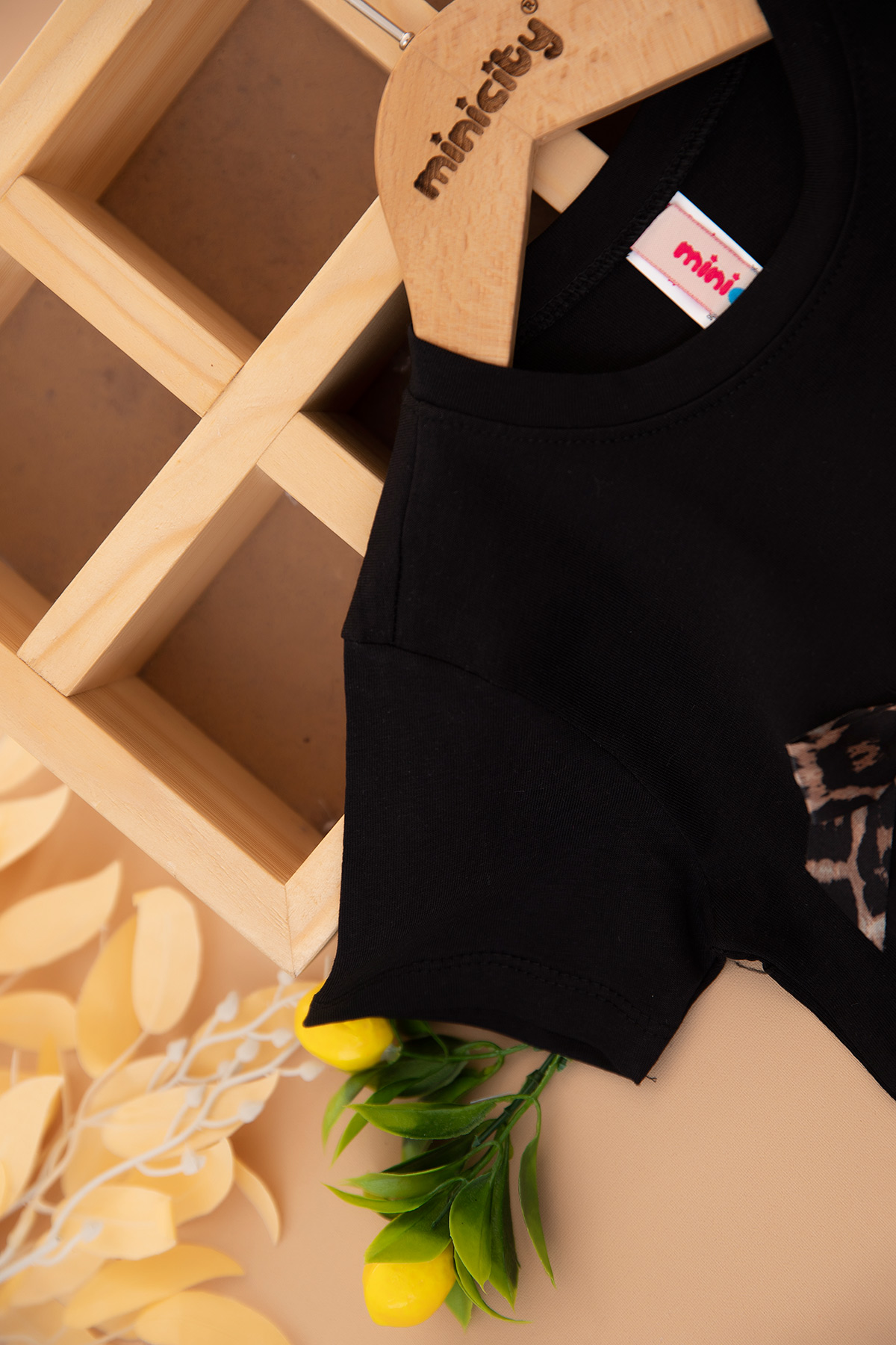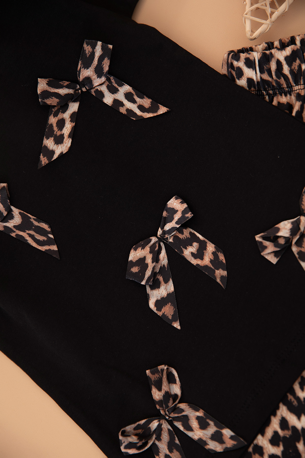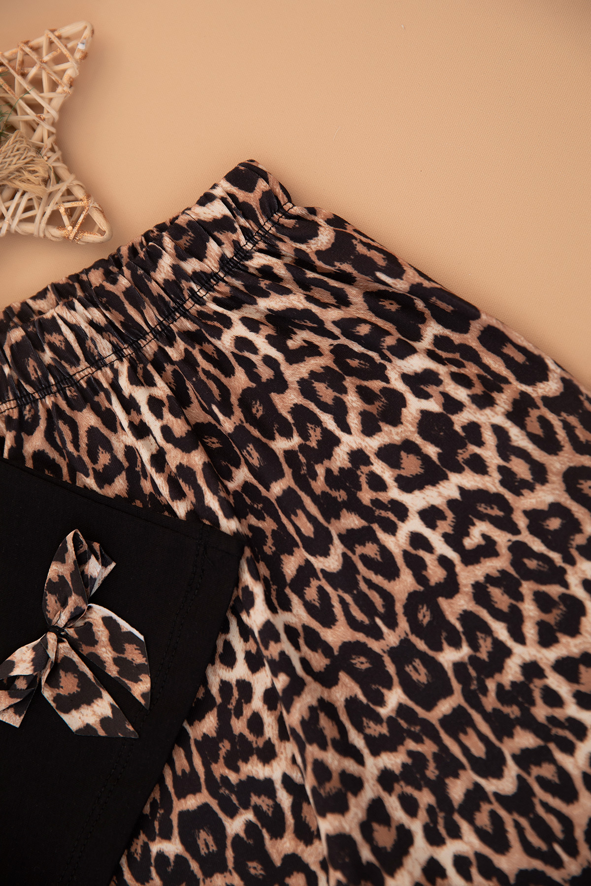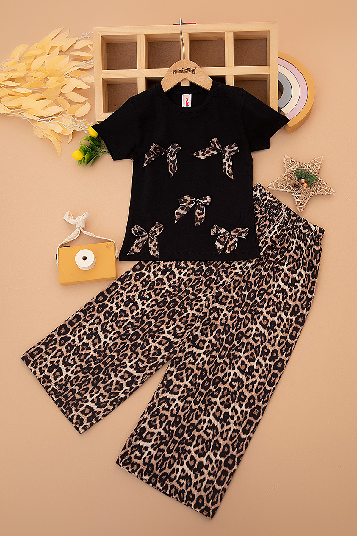 Kız Çocuk Küçük Fiyonklu Leopar Takım- (3-10 Yaş)