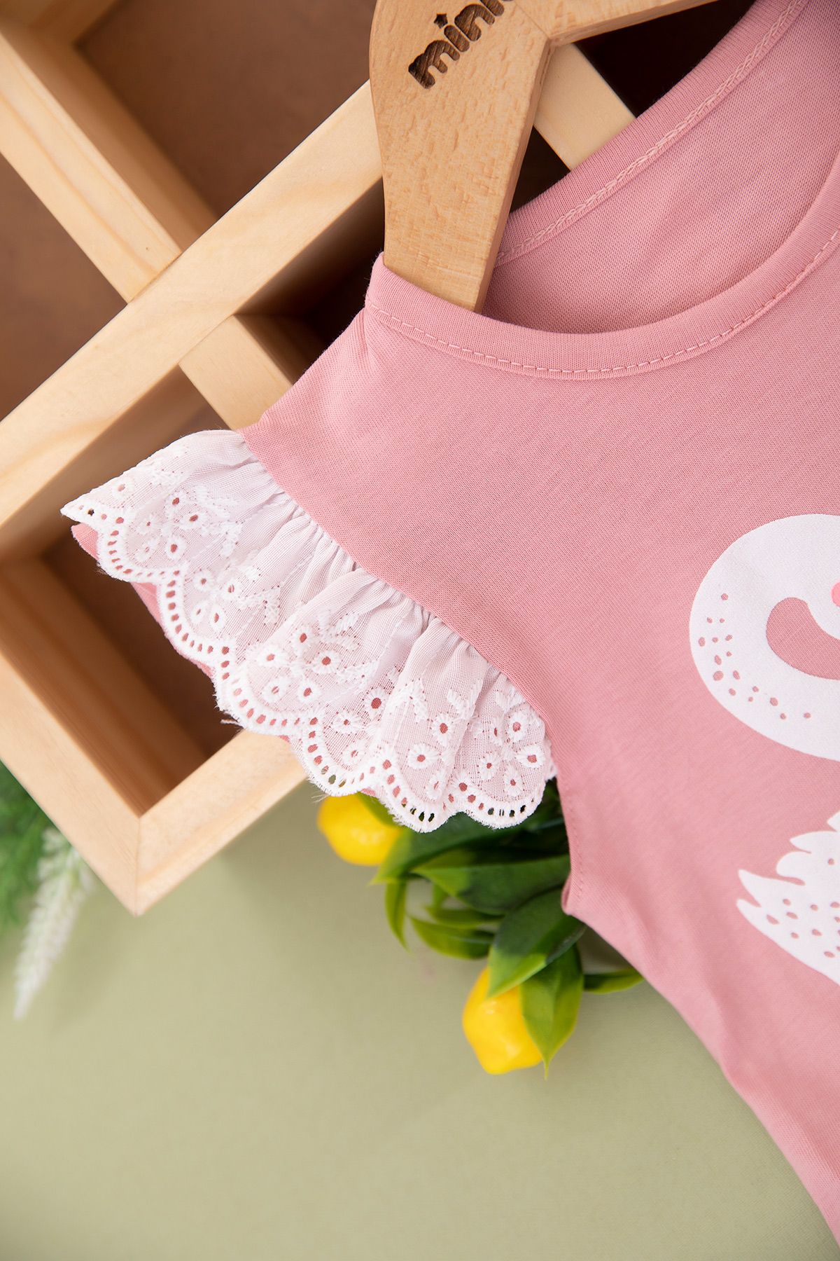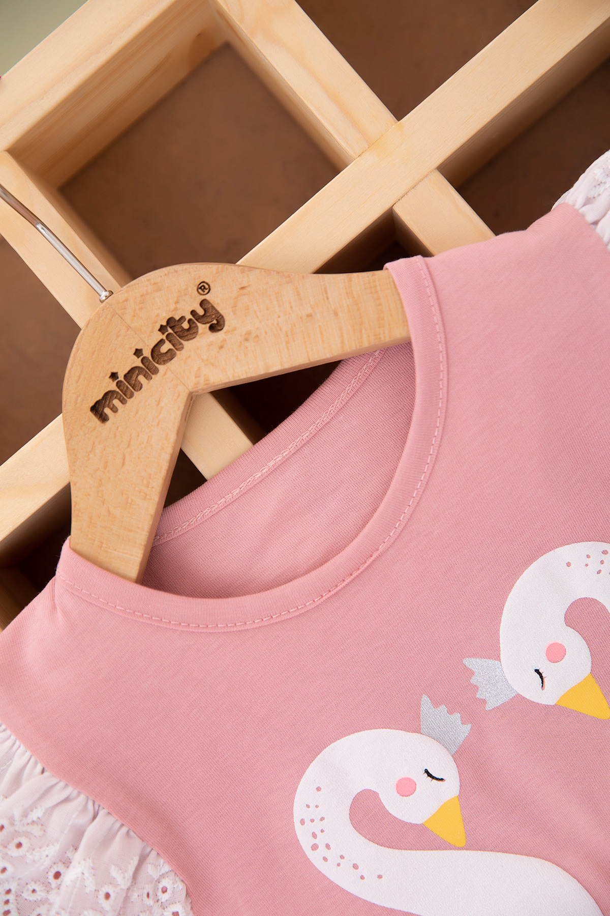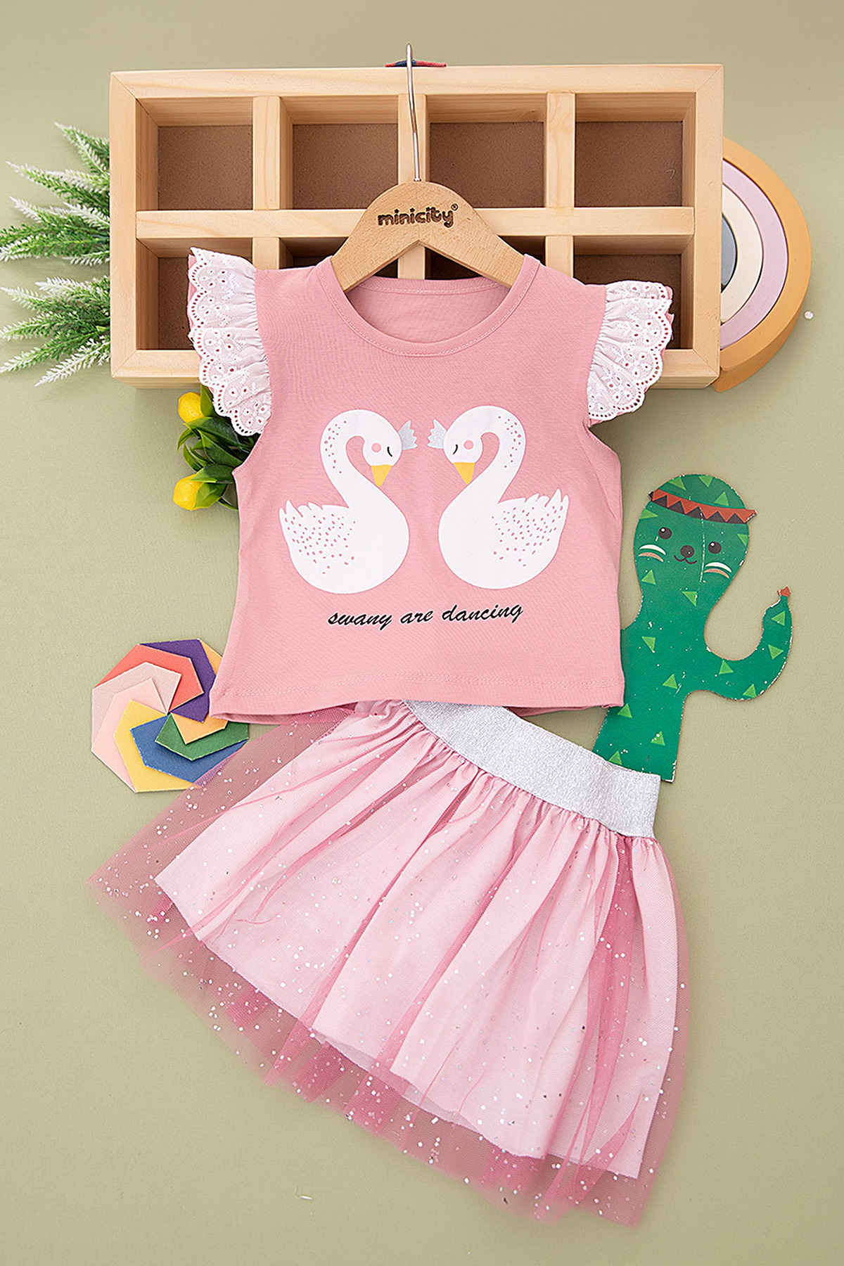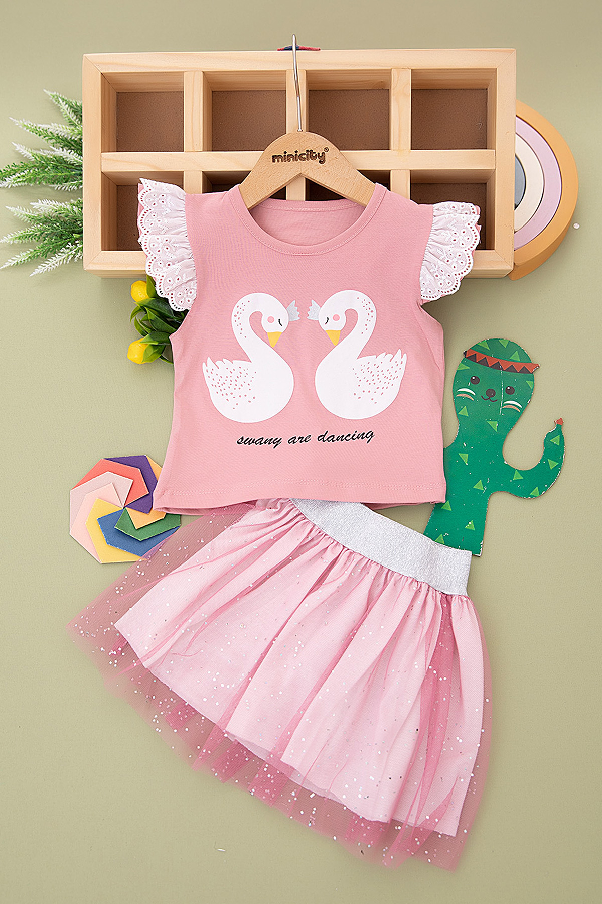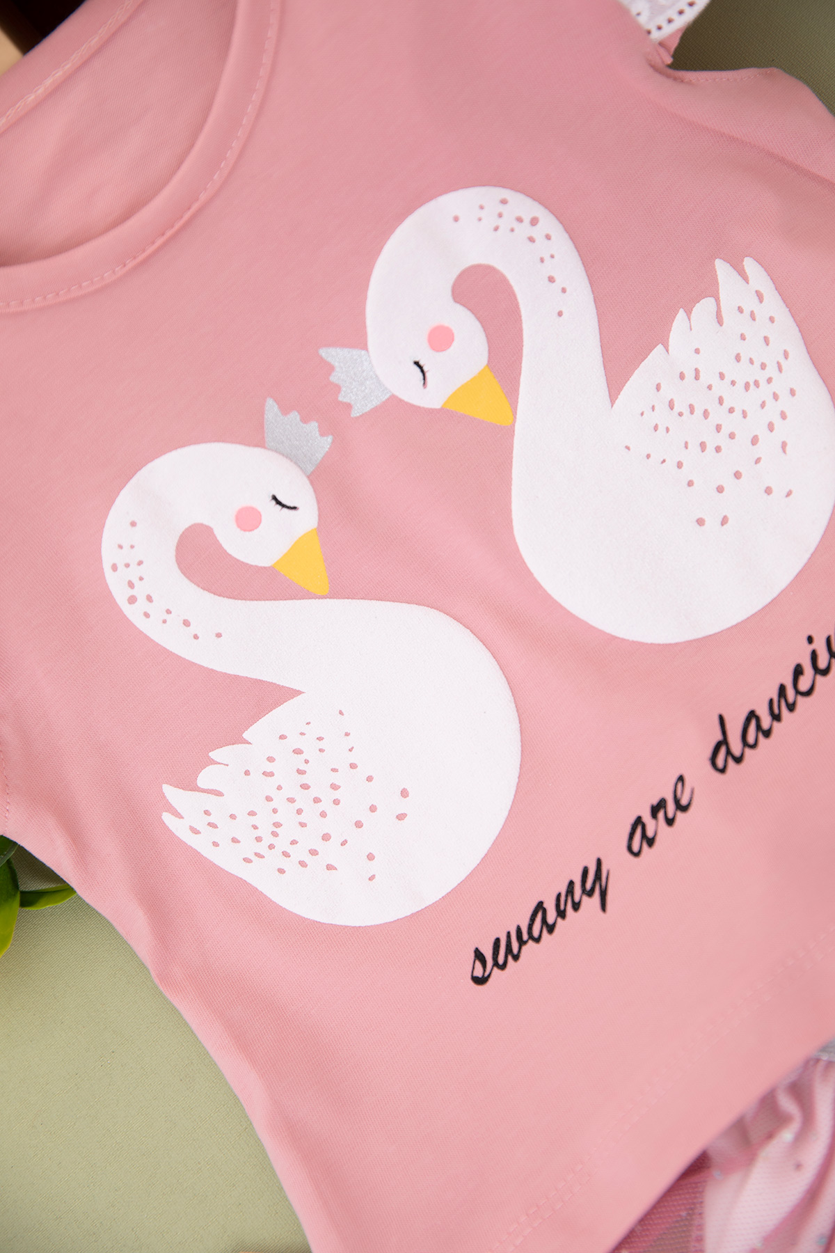Kız Çocuk Kuğu Baskılı Etekli Takım - 8480 (1-3 Yaş)