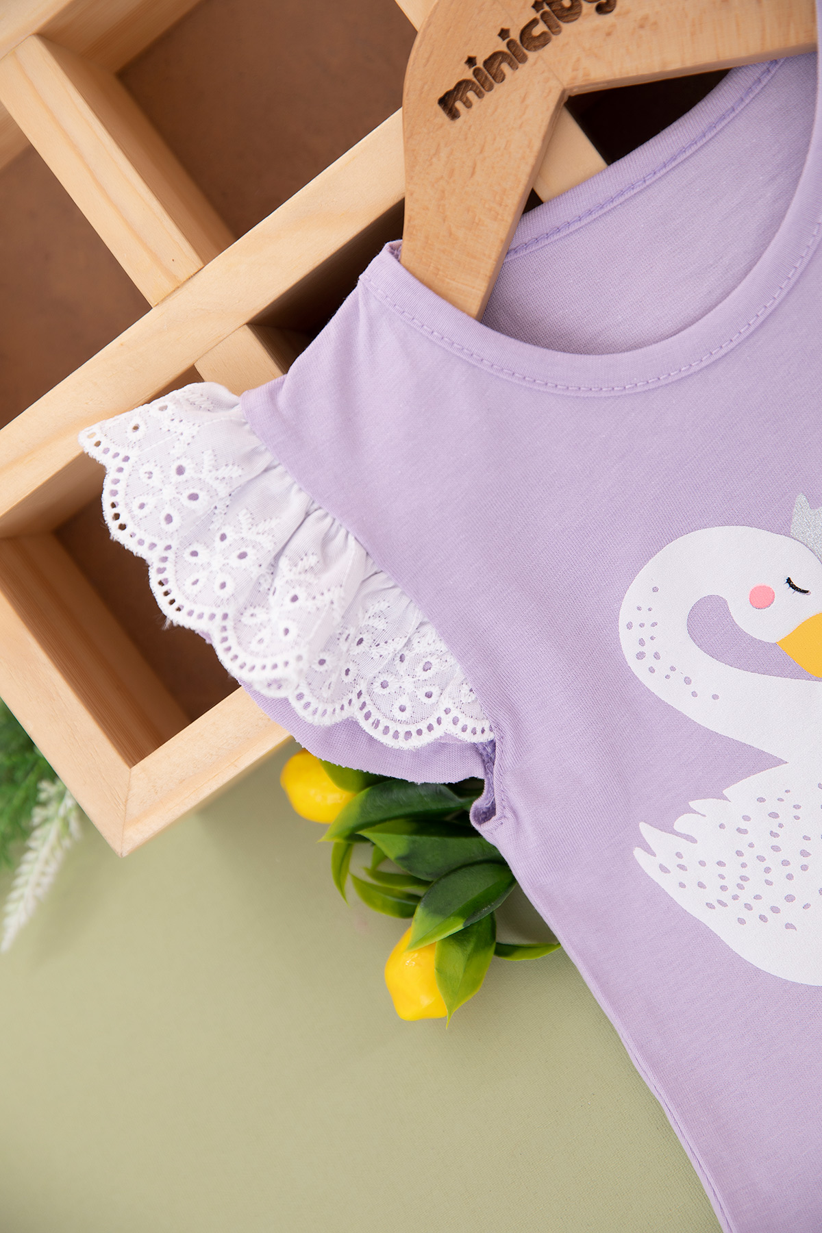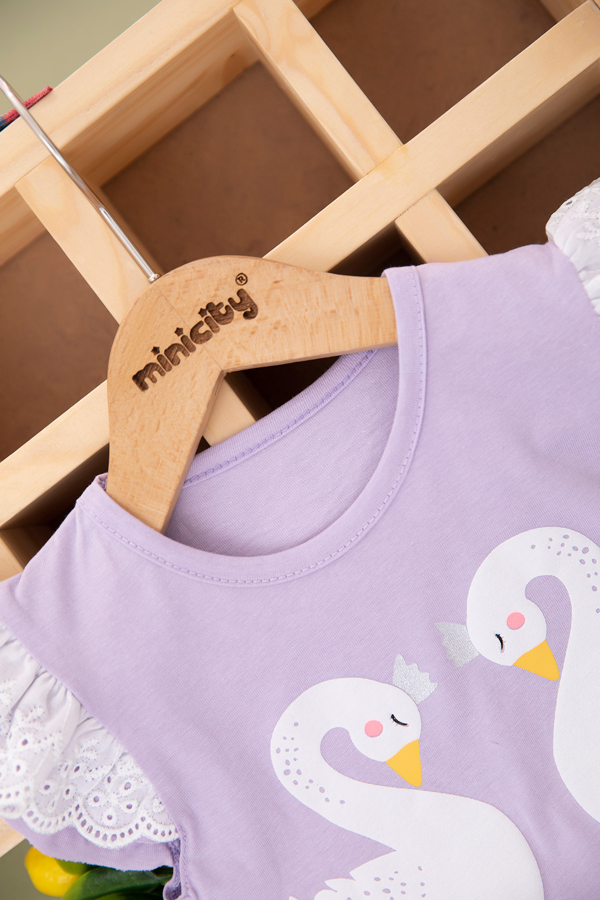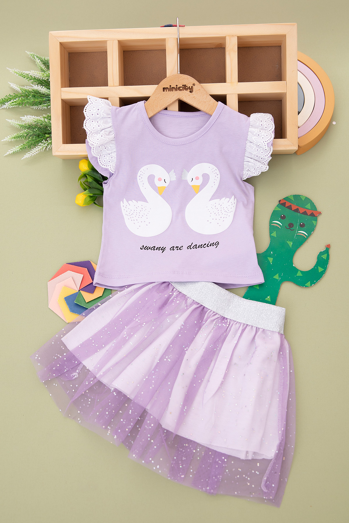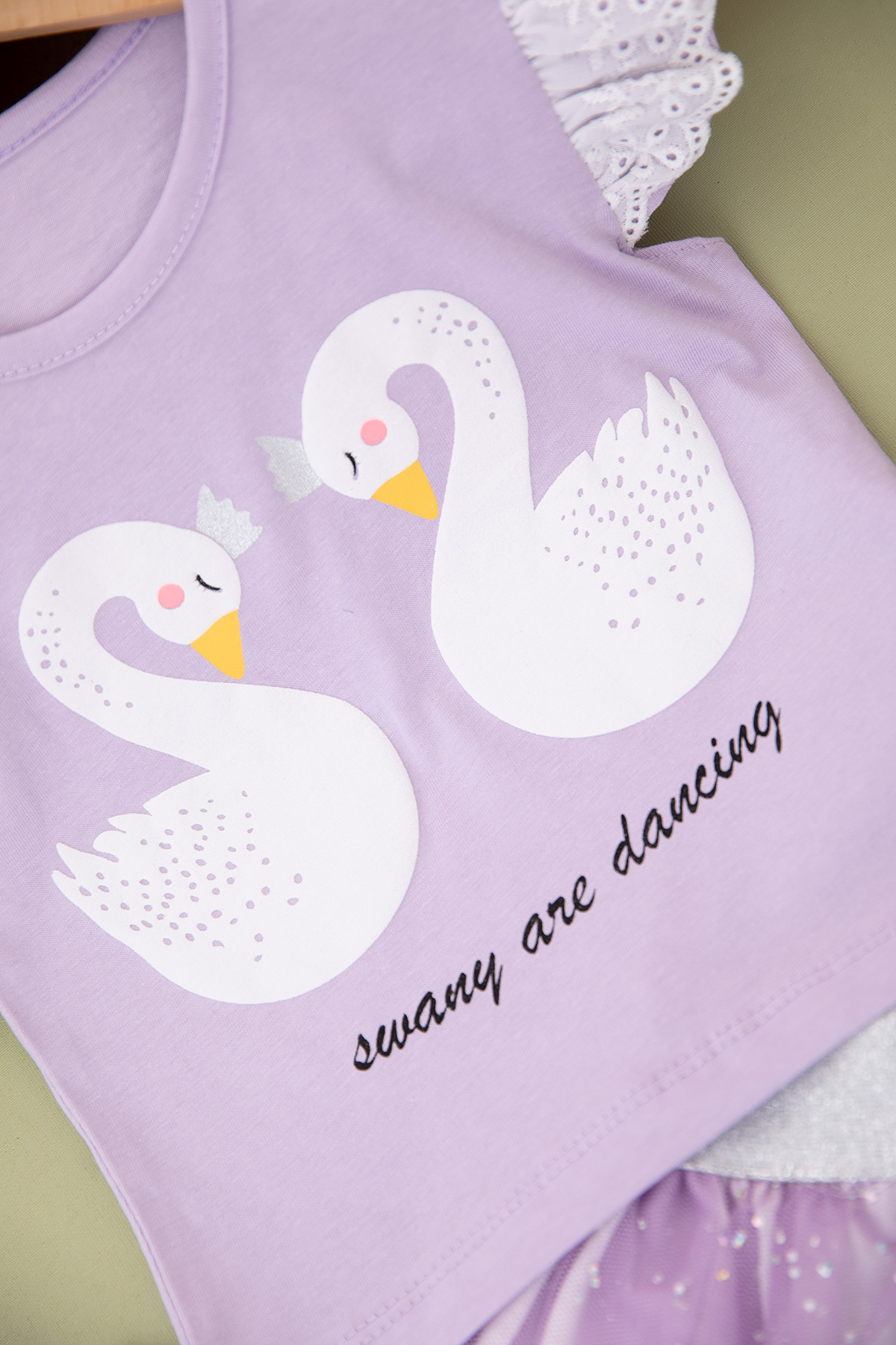 Kız Çocuk Kuğu Baskılı Etekli Takım - 8480 (1-3 Yaş)