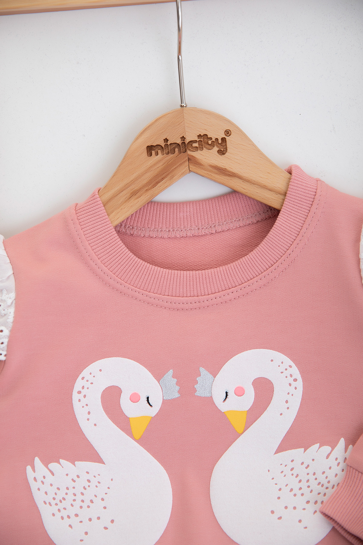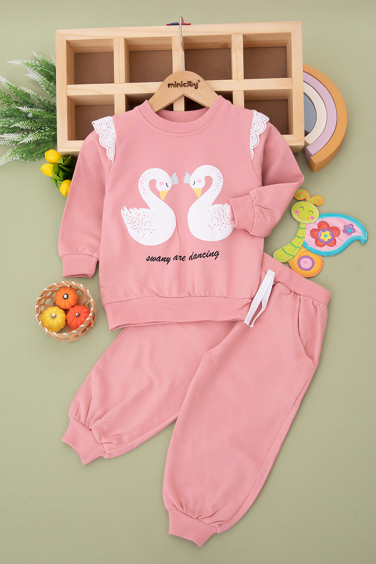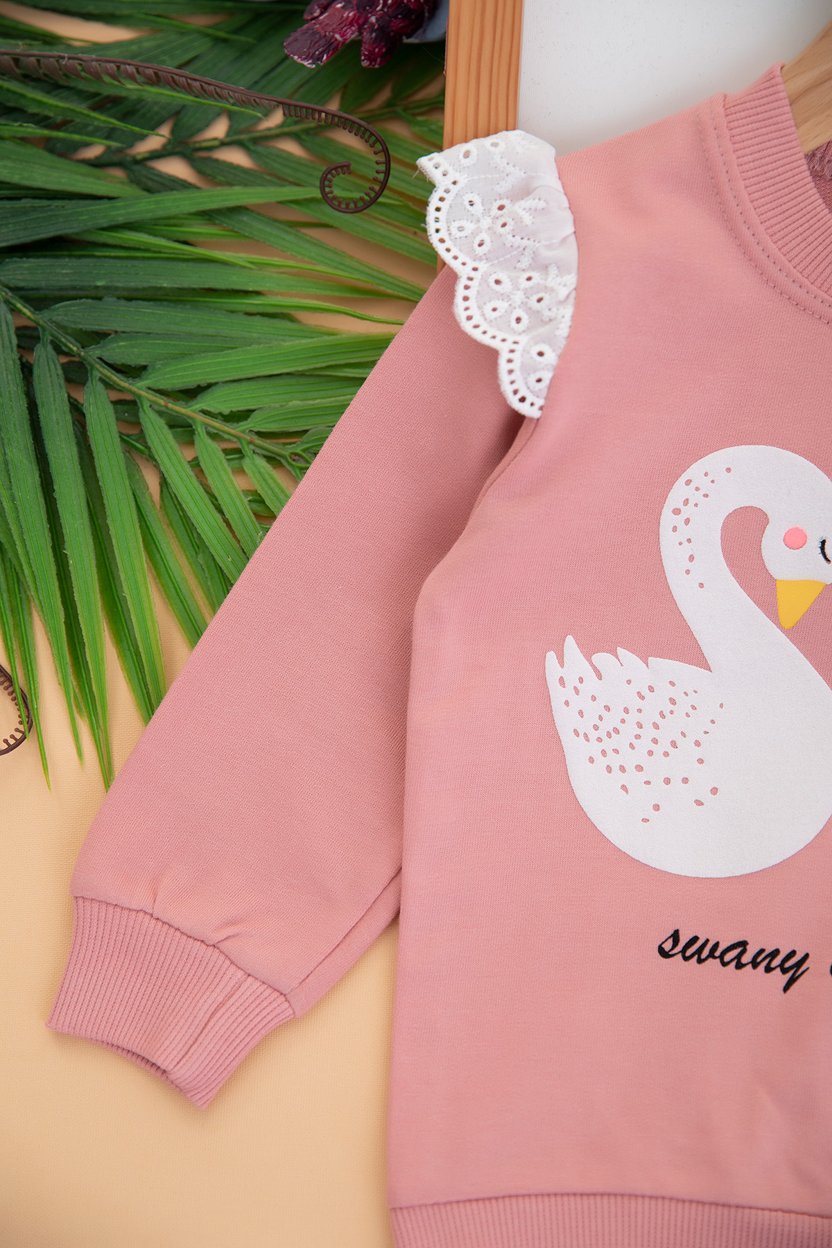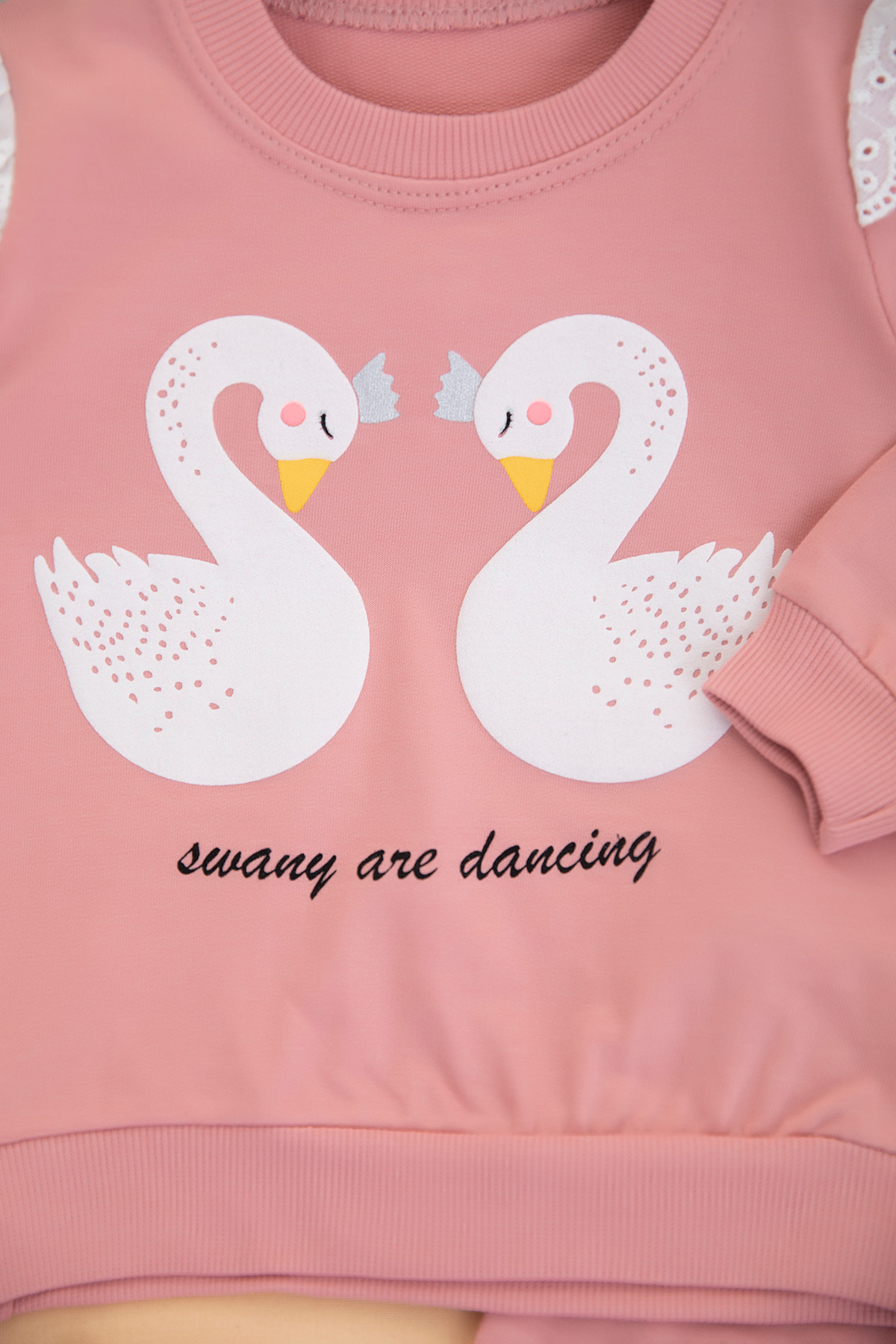 Kız Çocuk Kuğu Baskılı Takım - 8474 (1-3 Yaş)