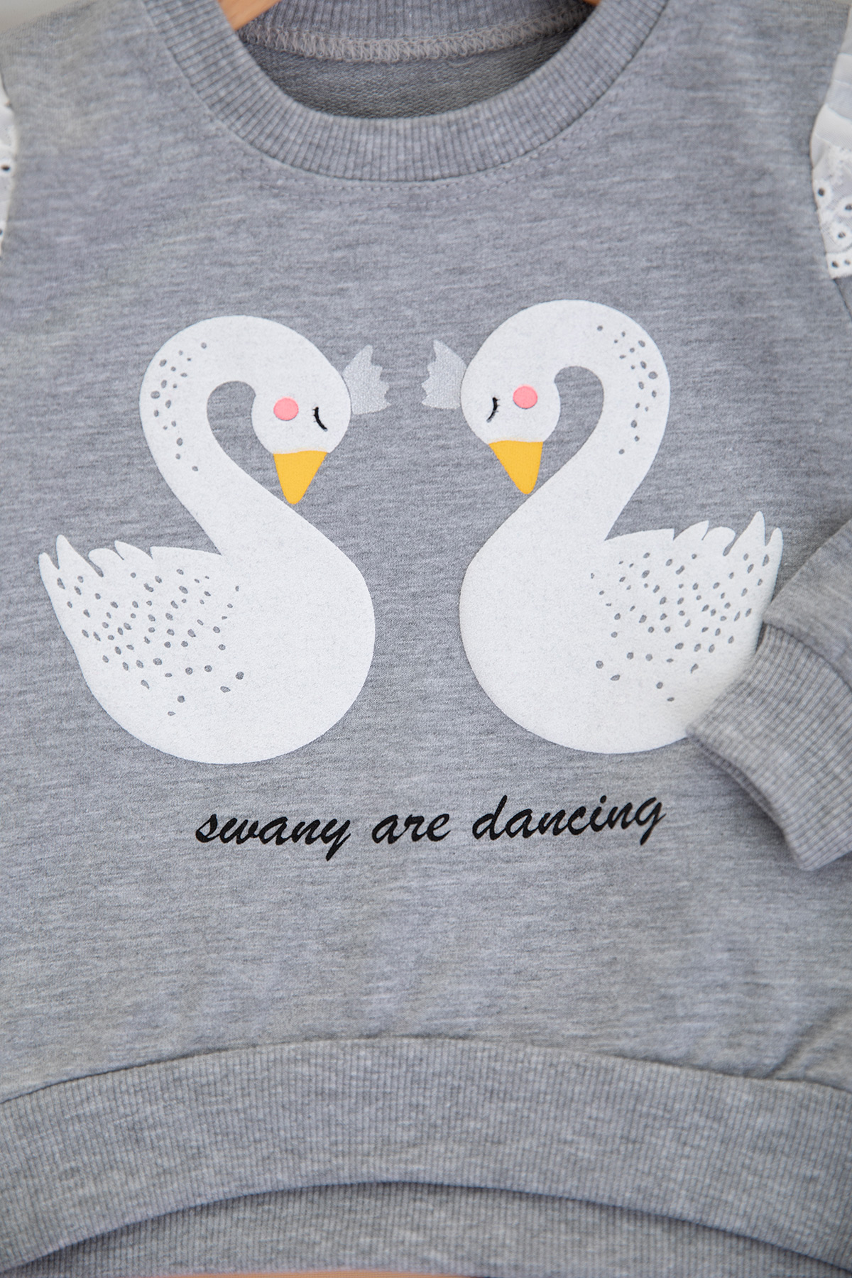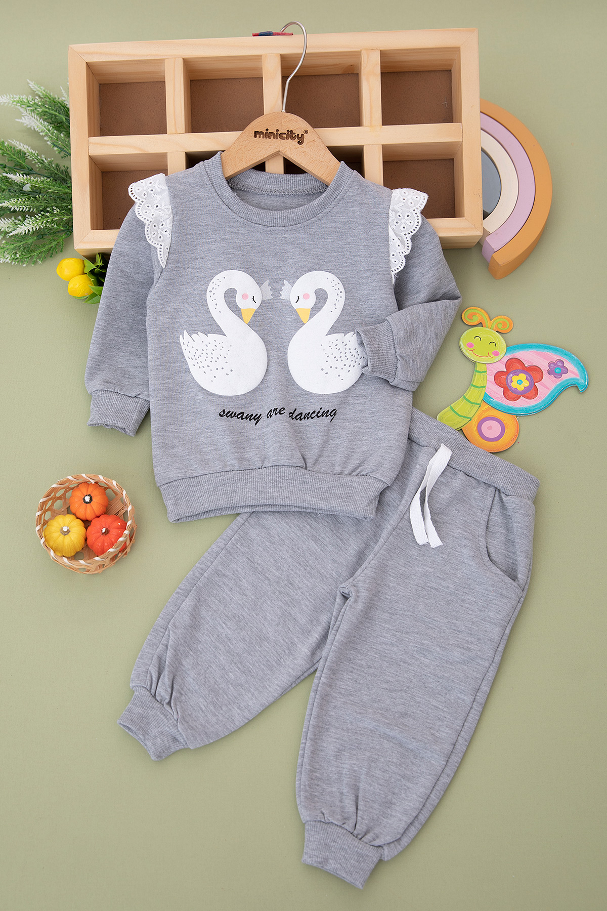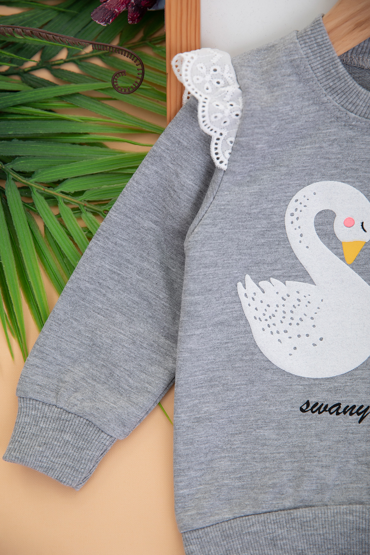 Kız Çocuk Kuğu Baskılı Takım - 8474 (1-3 Yaş)
