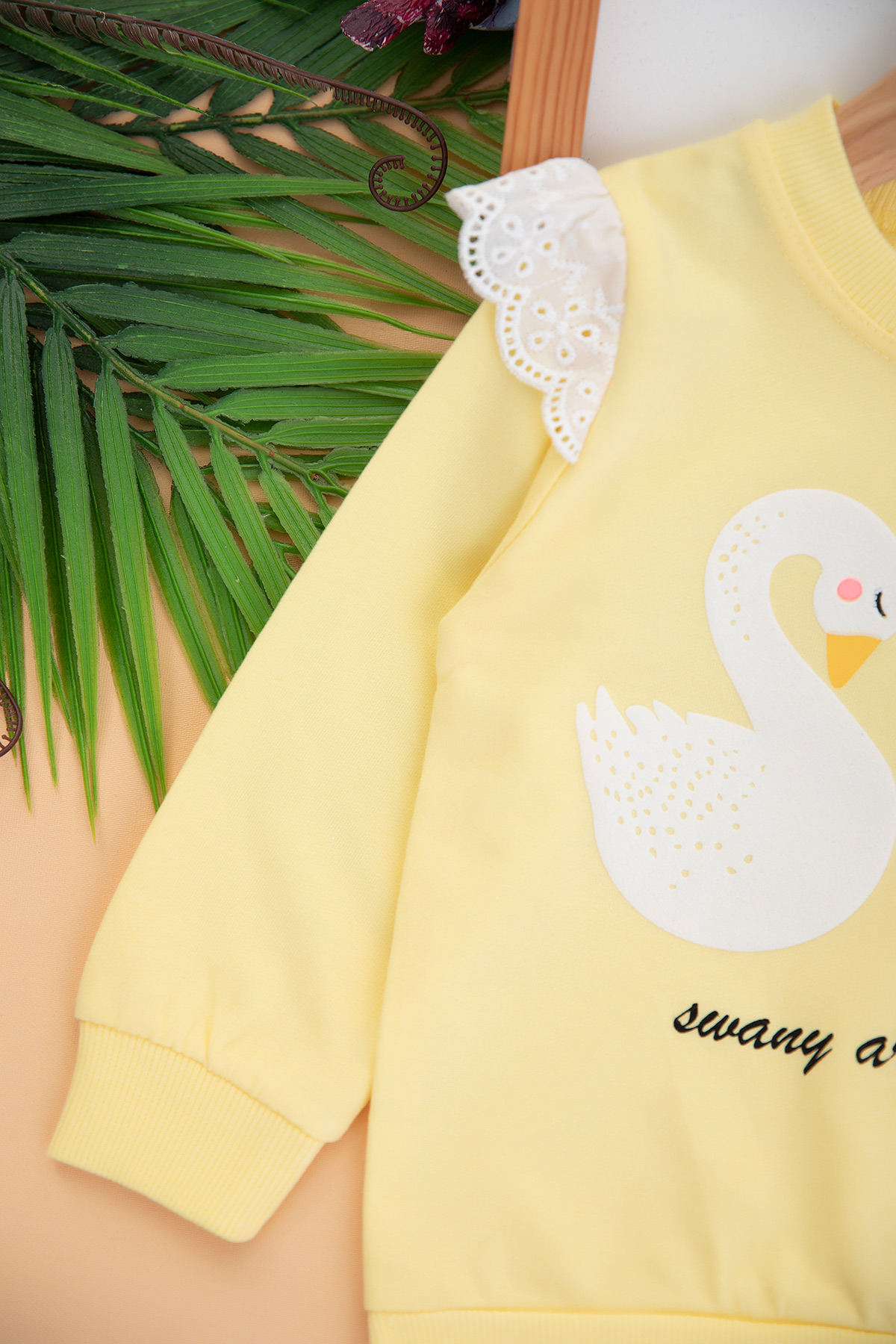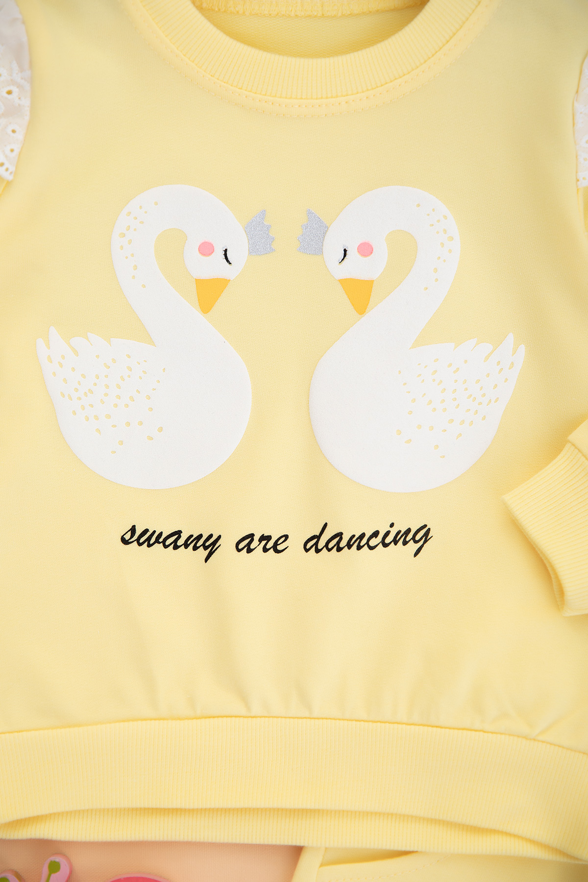 Kız Çocuk Kuğu Baskılı Takım - 8474 (1-3 Yaş)