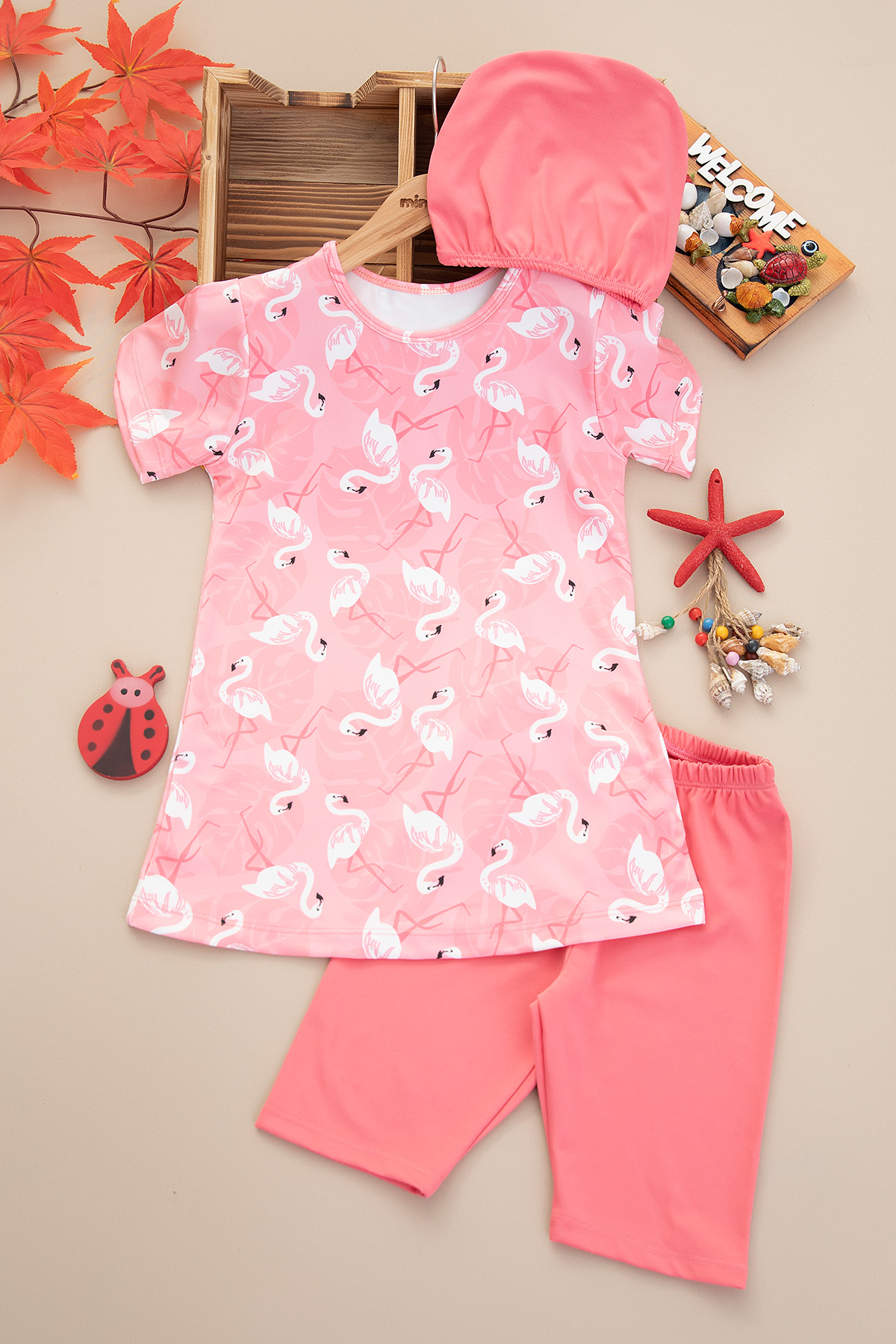 Kız Çocuk Kuğu Baskılı Tesettür Mayo - 3581 (13-16 Yaş)