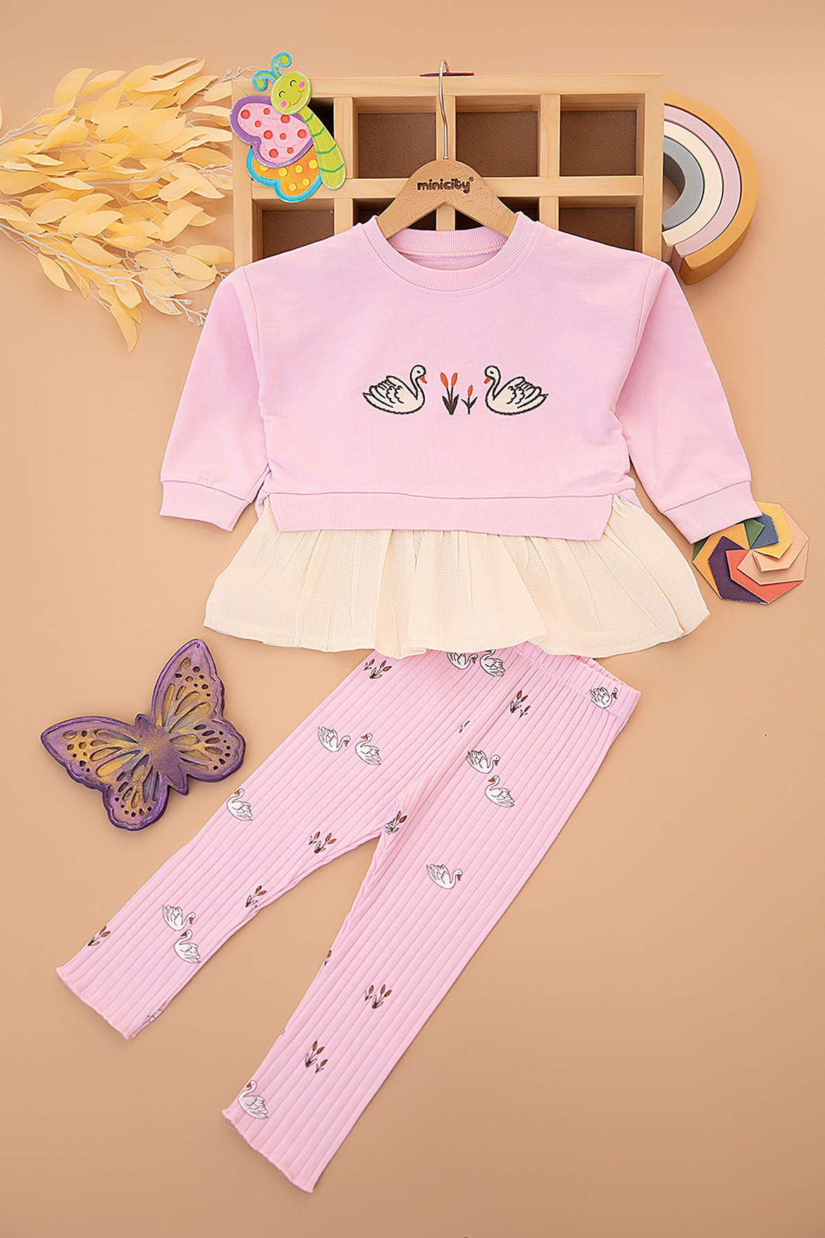 Kız Çocuk Kuğu Nakışlı Takım - 2616 (2-6 Yaş)