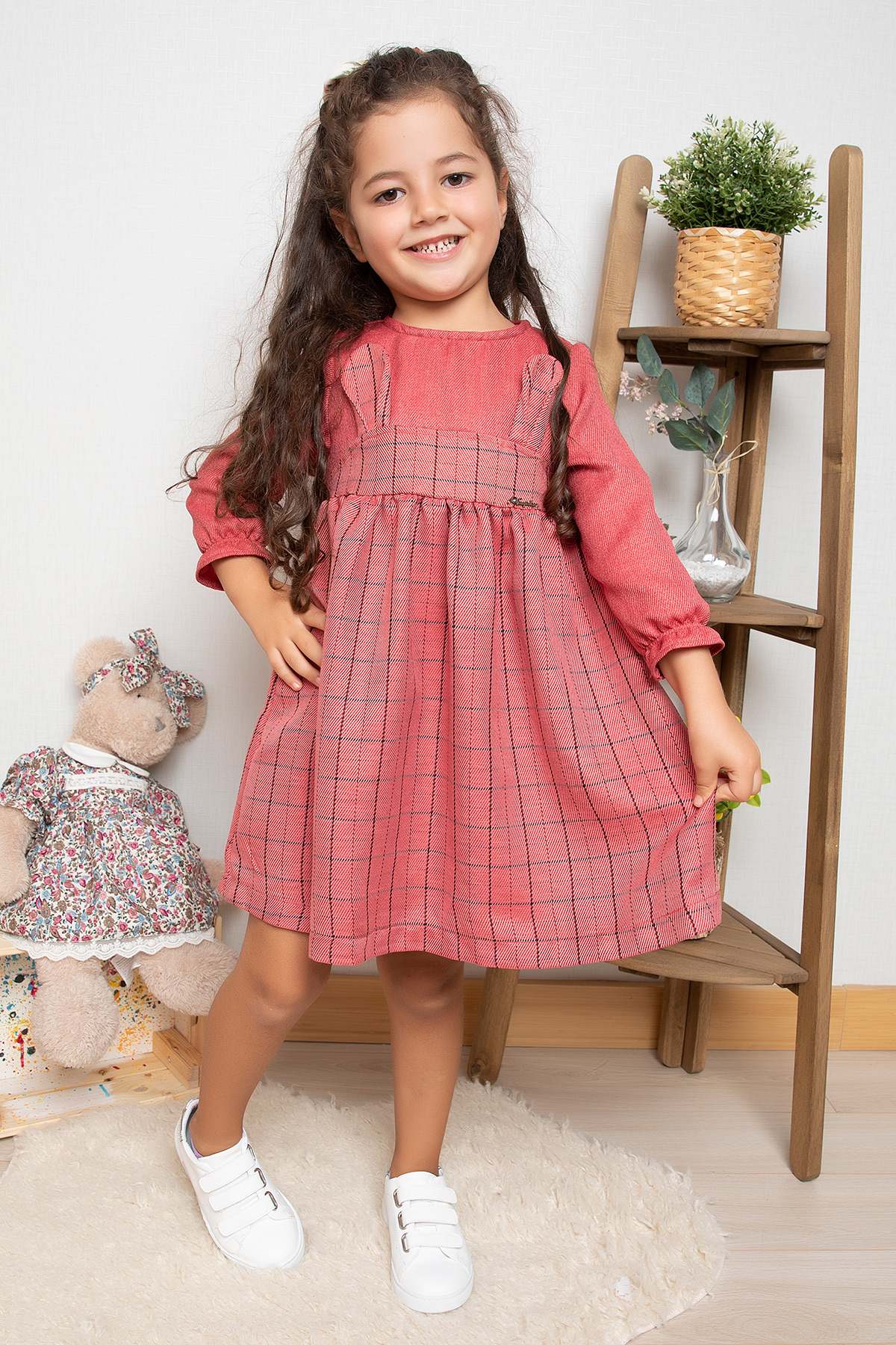 Kız Çocuk Kulaklı Çizgili Elbise - 5748 (1-4 Yaş)