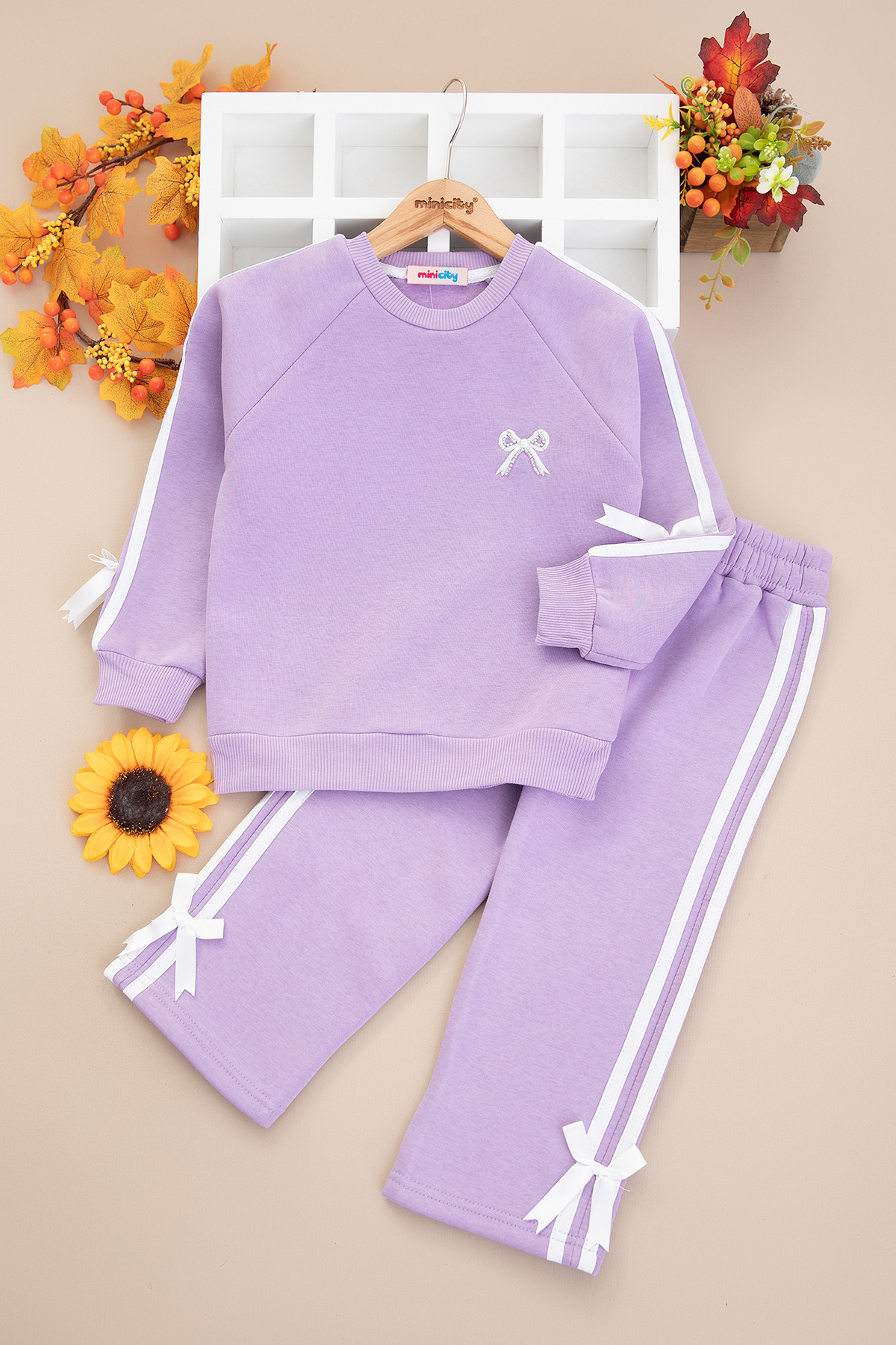 Kız Çocuk Kurdela Nakışlı Üçip Takım (3-10 Yaş)