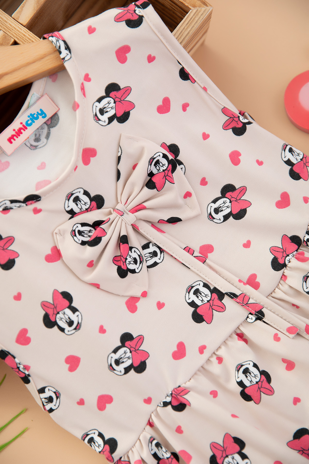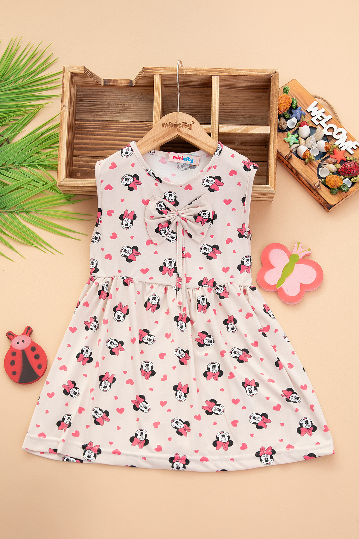 Kız Çocuk Kurdelalı Baskılı Milan Elbise - 4010 (3-10 Yaş)
