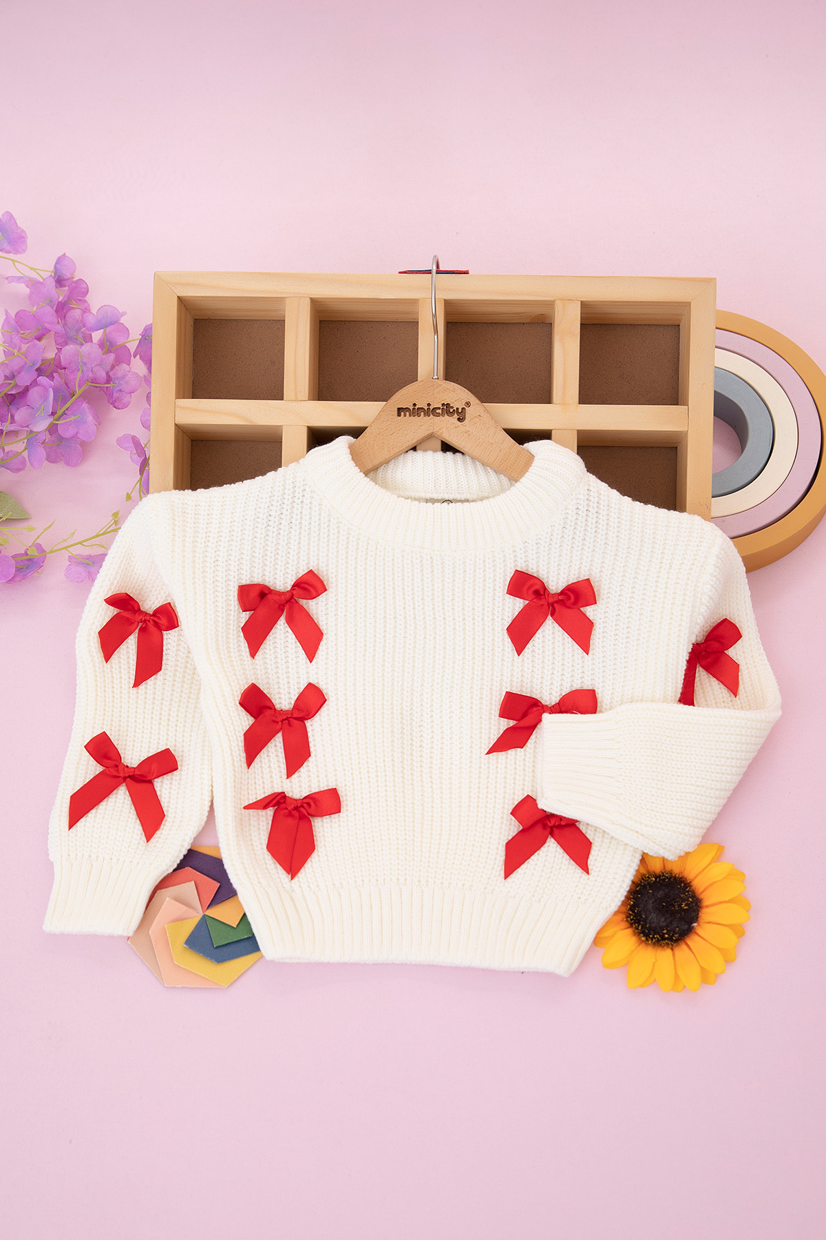 Kız Çocuk Kurdelalı Selanik O Yaka Kazak (2-8 Yaş)