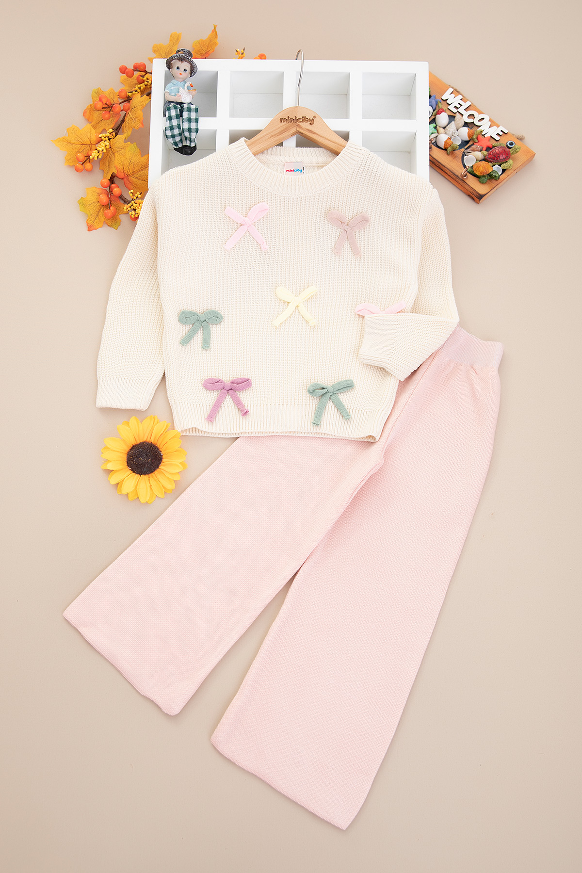 Kız Çocuk Kurdelalı Triko Takım (3-10 Yaş)