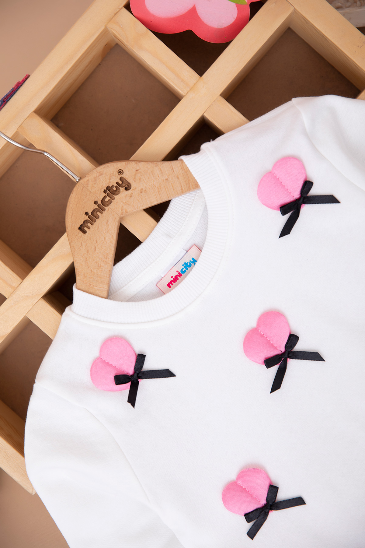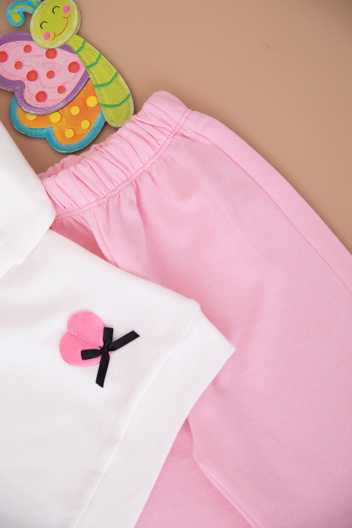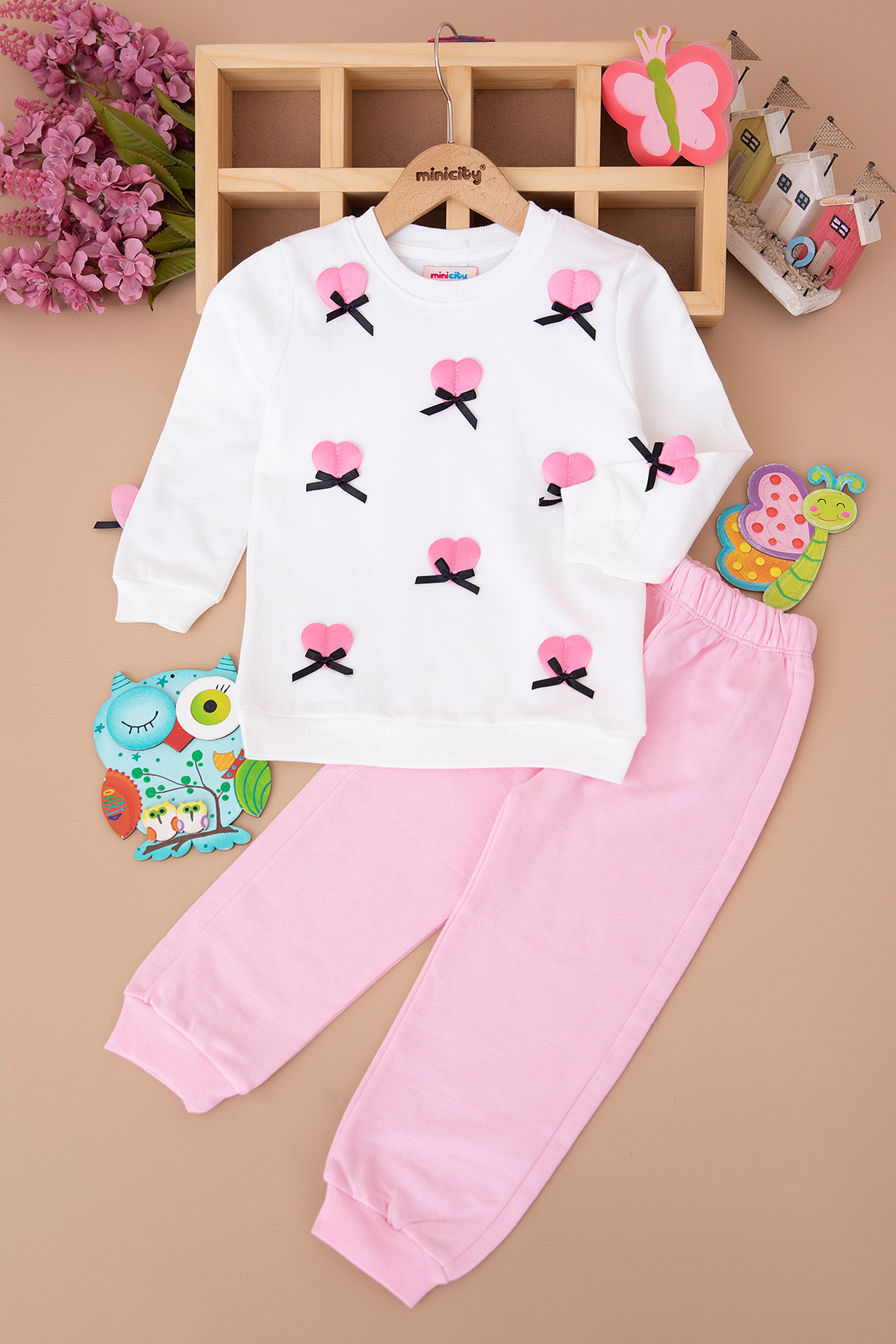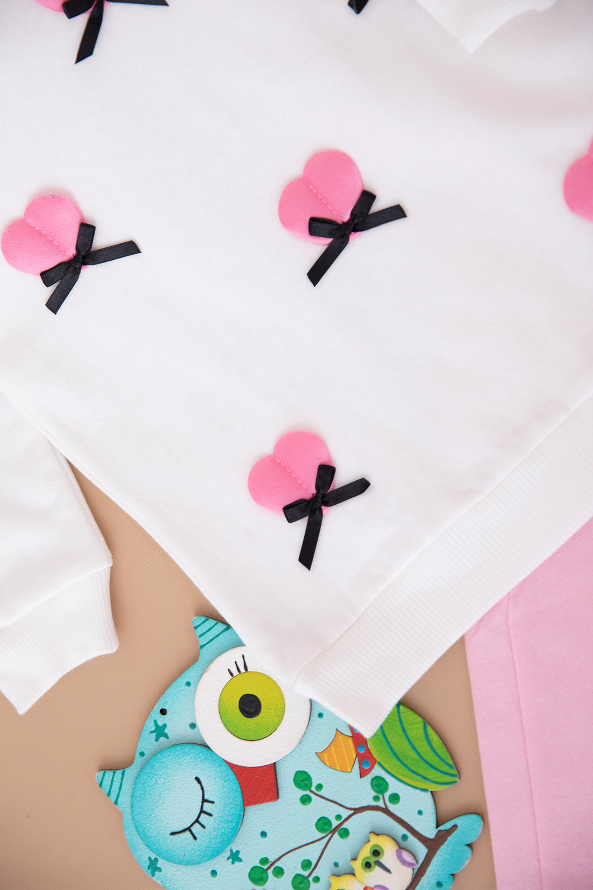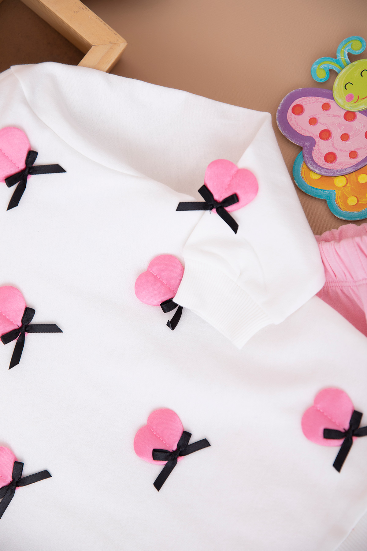 Kız Çocuk Kurdeleli Kalp Nakışlı Takım (3-10 Yaş)