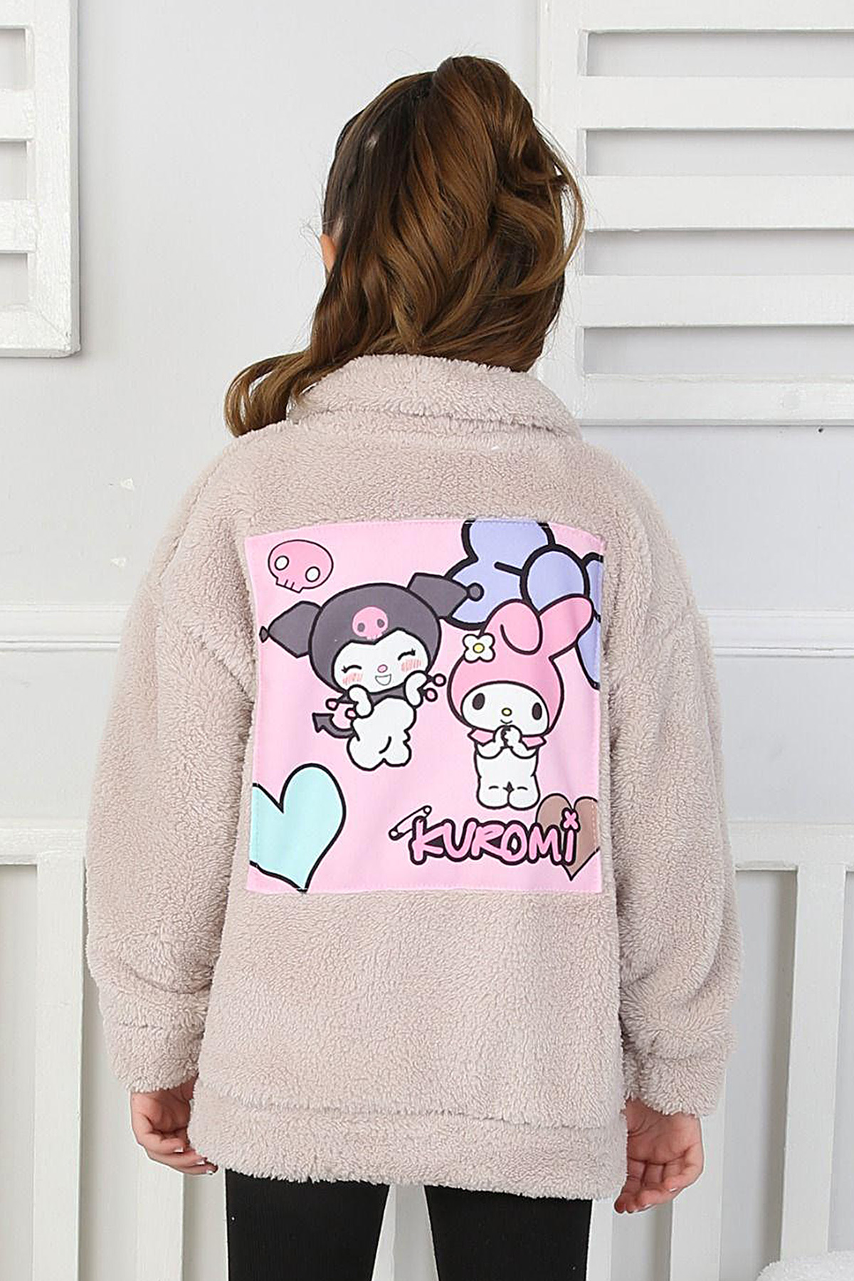 Kız Çocuk Kuromi Baskılı Peluş Mont - 8030 (3-10 Yaş)