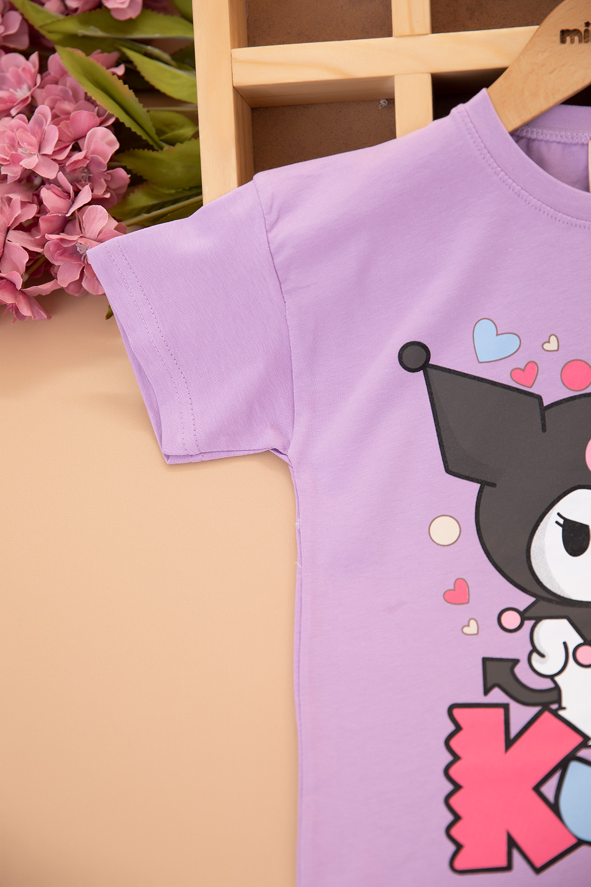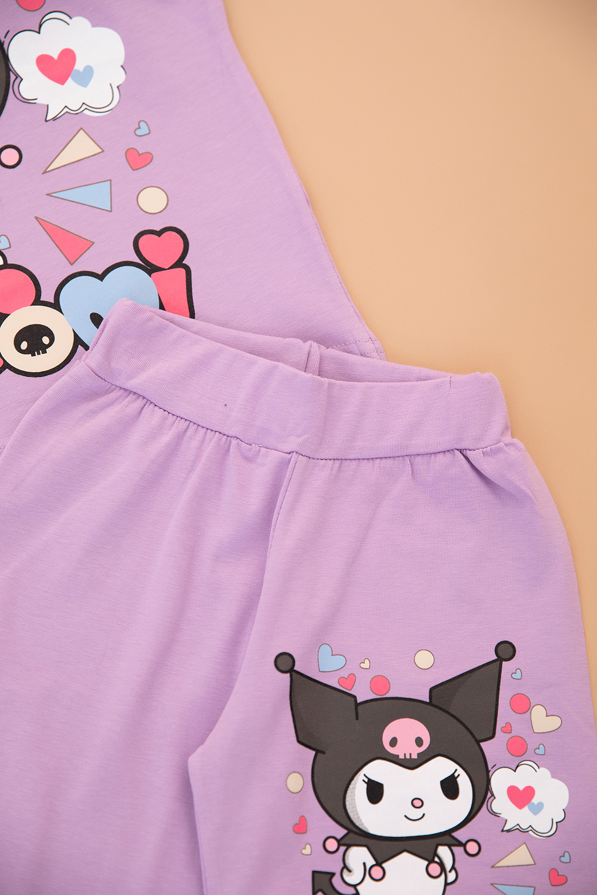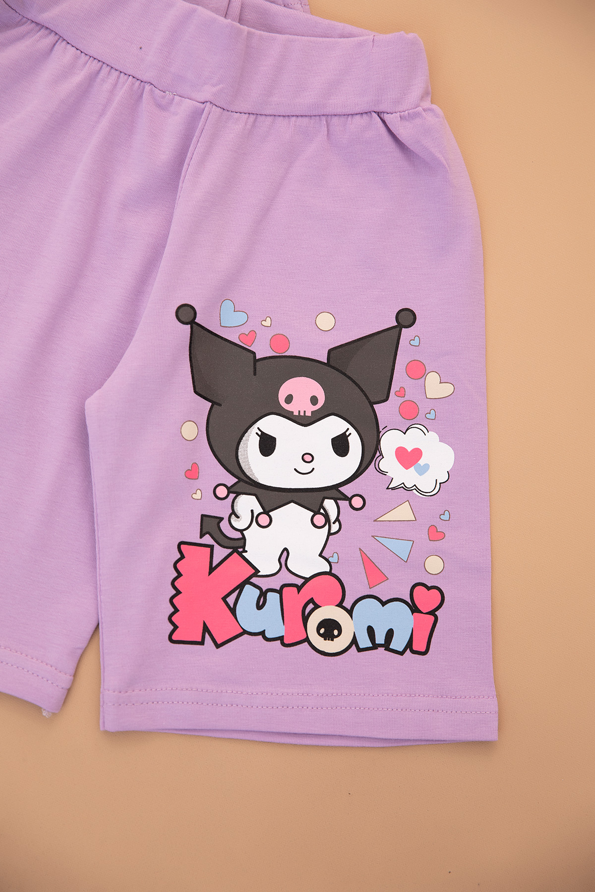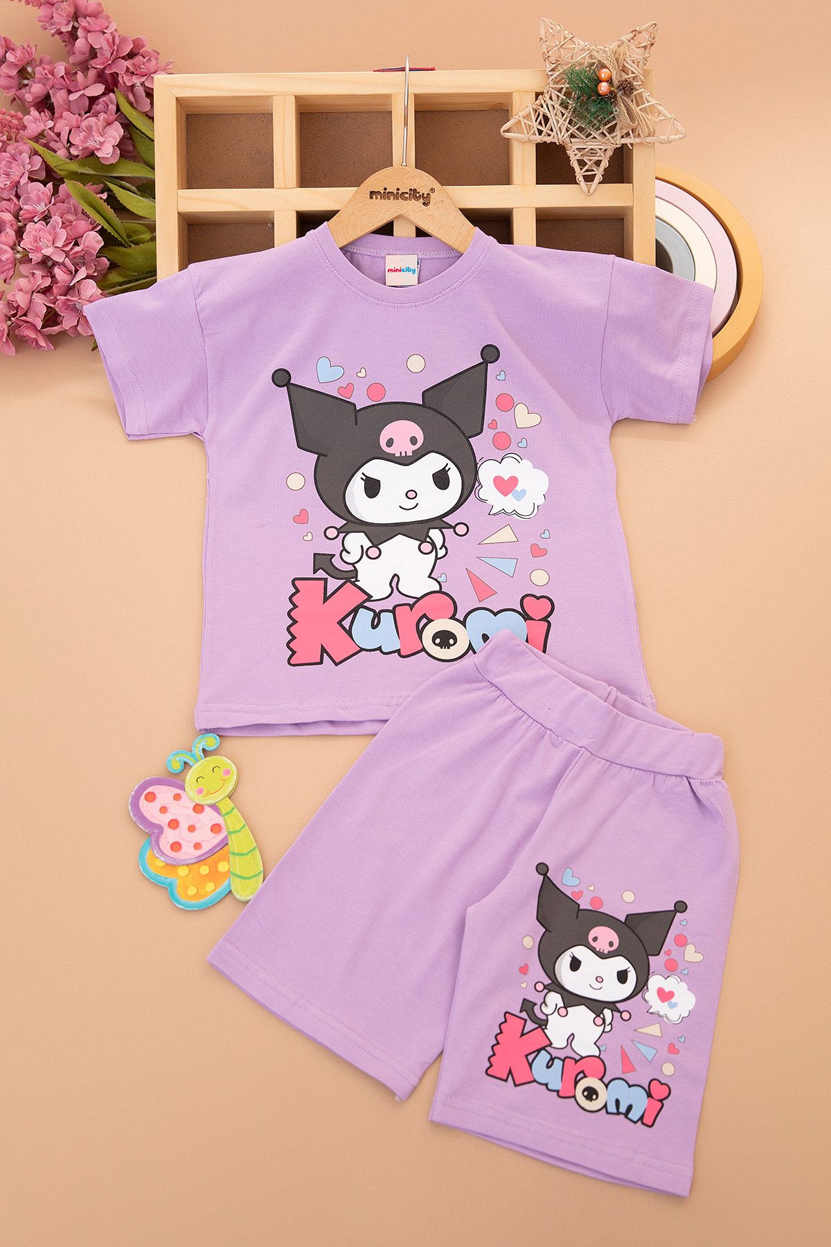 Kız Çocuk Kuromi Baskılı Şortlu Takım (4-10 Yaş)