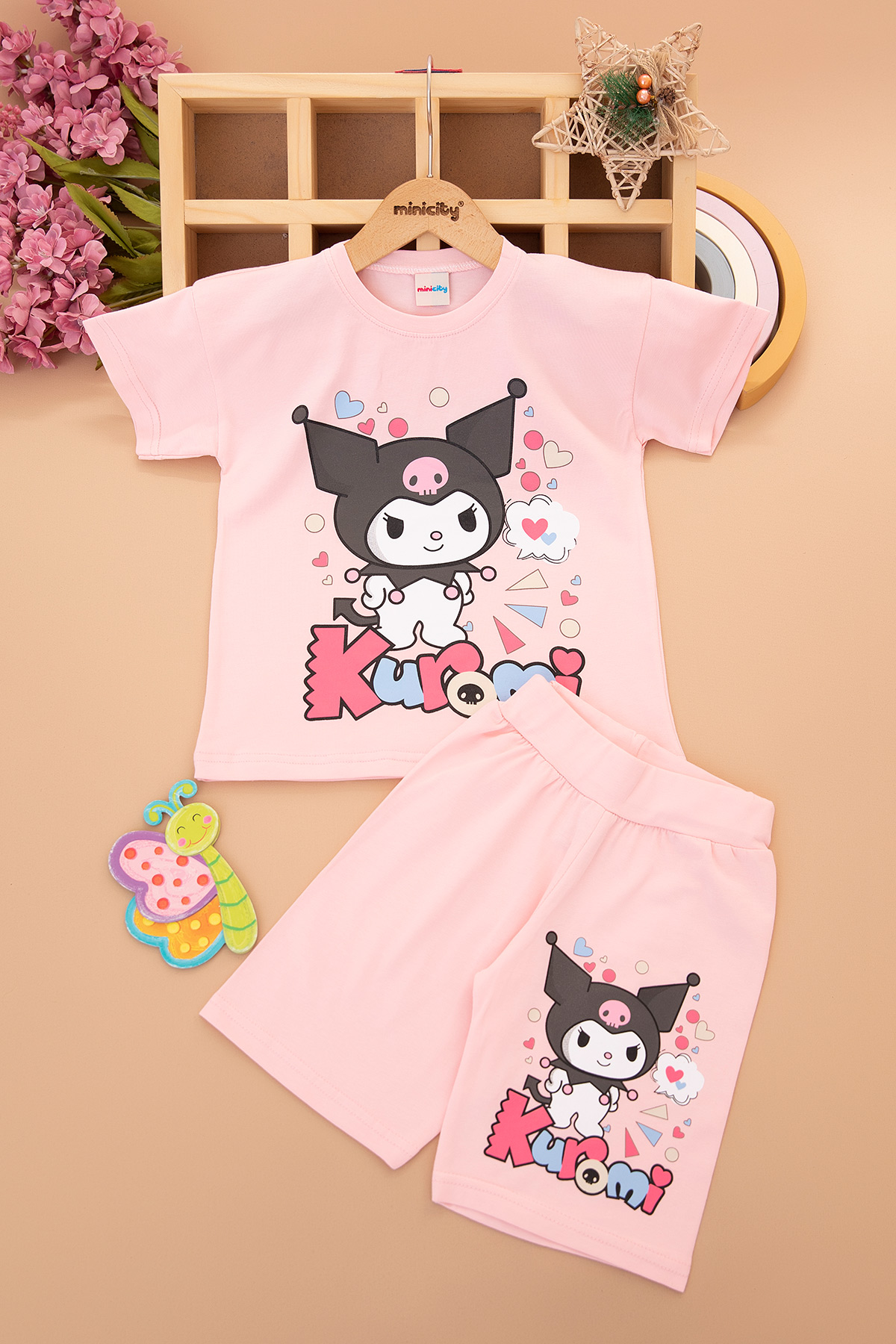 Kız Çocuk Kuromi Baskılı Şortlu Takım (4-10 Yaş)