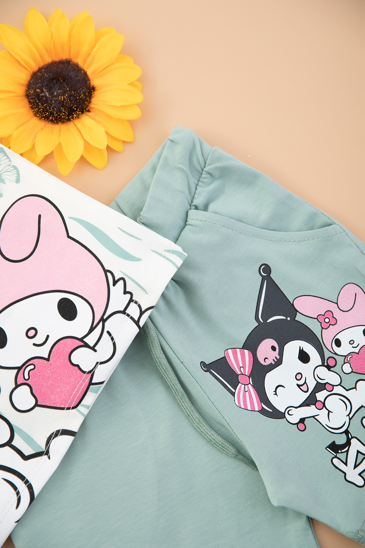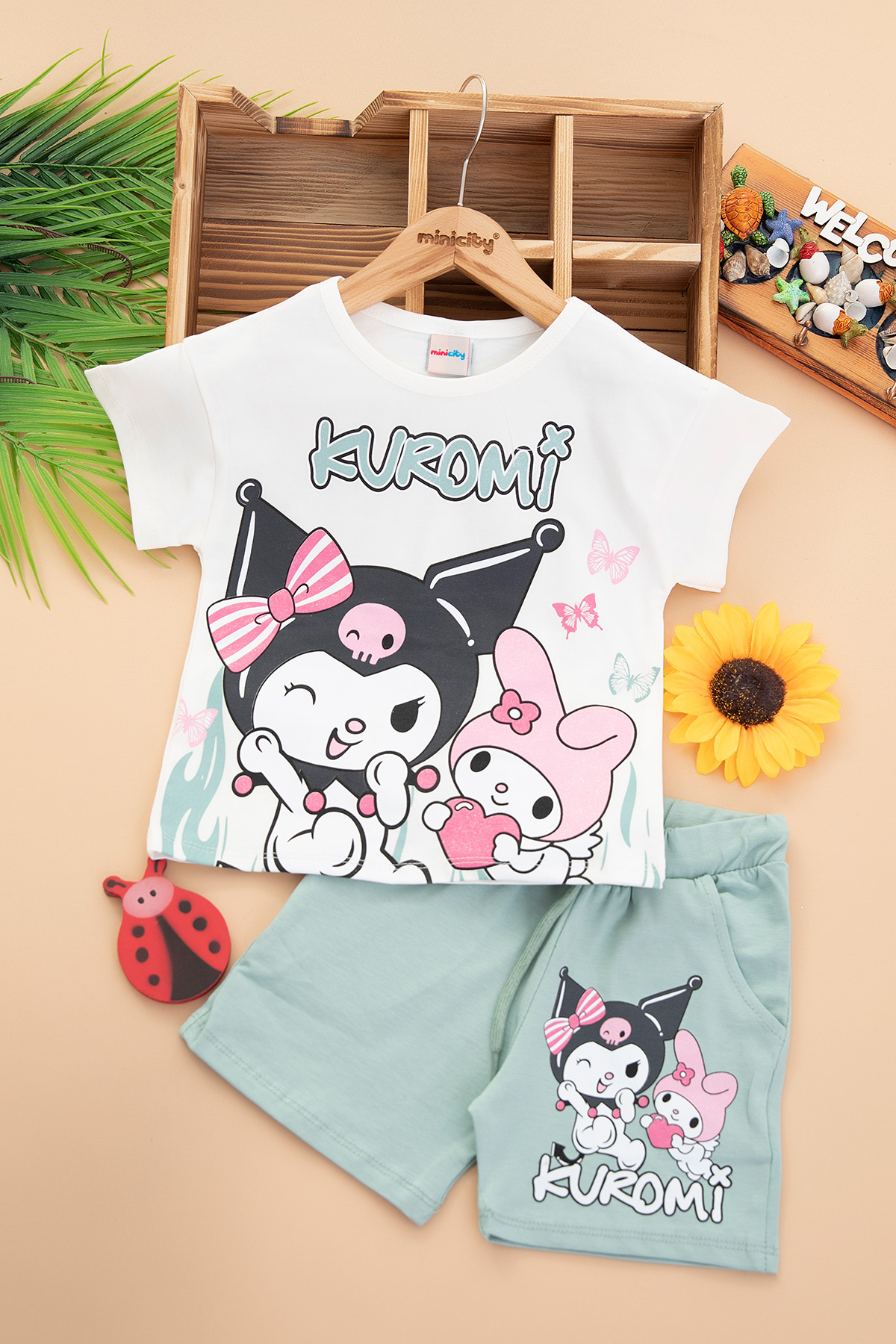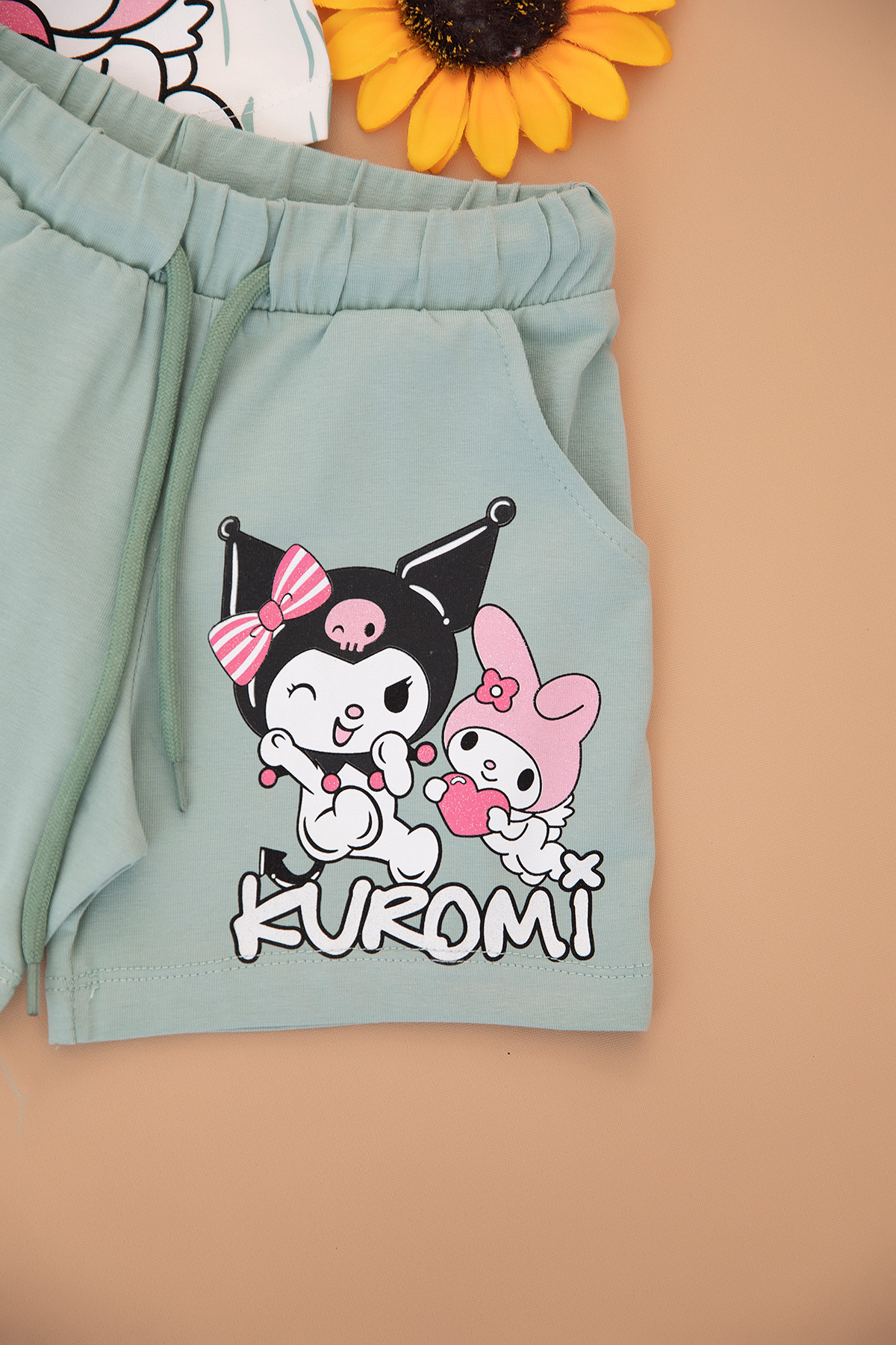 Kız Çocuk Kuromi Baskılı Şortlu Takım - 7532 (3-10 Yaş)